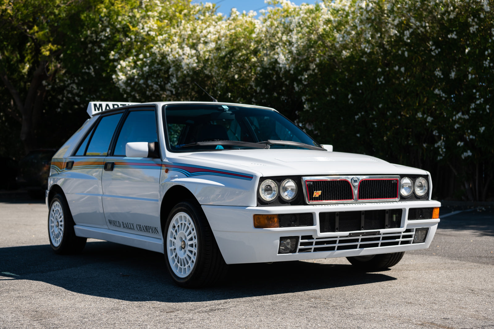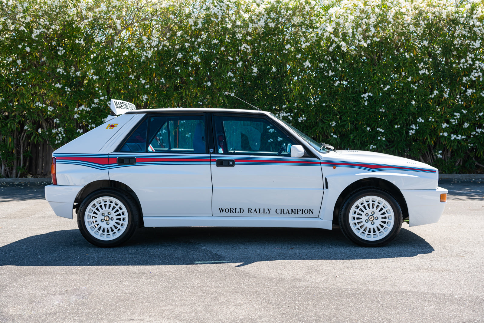 After dominating the Constructors World Rally Championship for the sixth consecutive year in 1992, Lancia chose to build a special limited-edition Delta HF Integrale EVO I to commemorate the occasion - the “Martini 6”. This would be the last Martini edition with 310 units produced in total. This special edition model is defined by posh white paintwork with signature Martini Rally stripes in a unique pattern that flares over the front and rear wheel wells. The dramatic theme is reinforced by white finished mag wheels. Unique to the Martini 6 are three “World Rally Champion” decals on both front doors and the front bumper, along with HF decals on each rear side panel and the famous Martini Racing script on the rear spoiler. A large Lancia crest decal is located discretely on the roof.