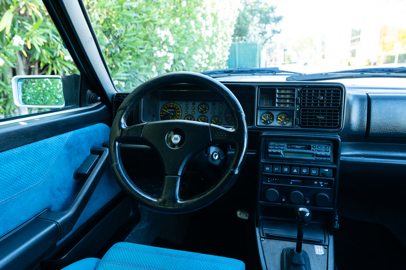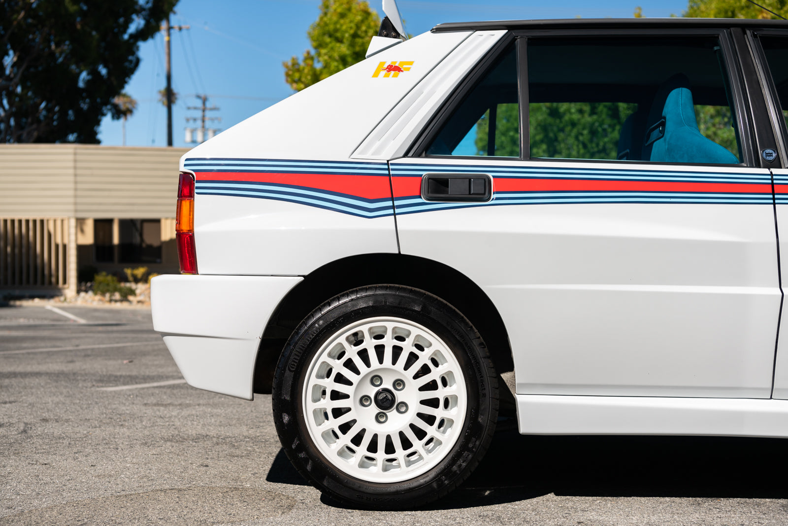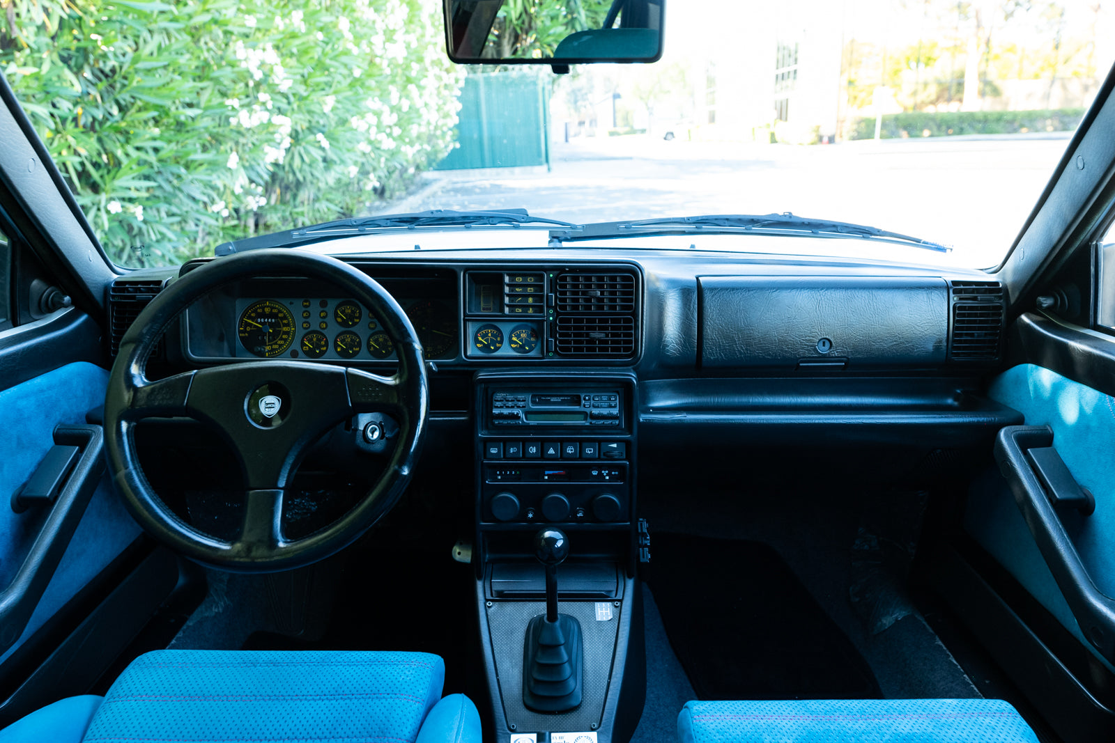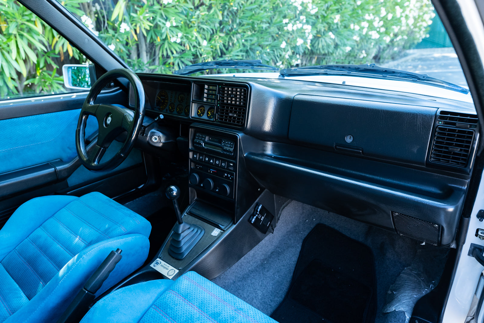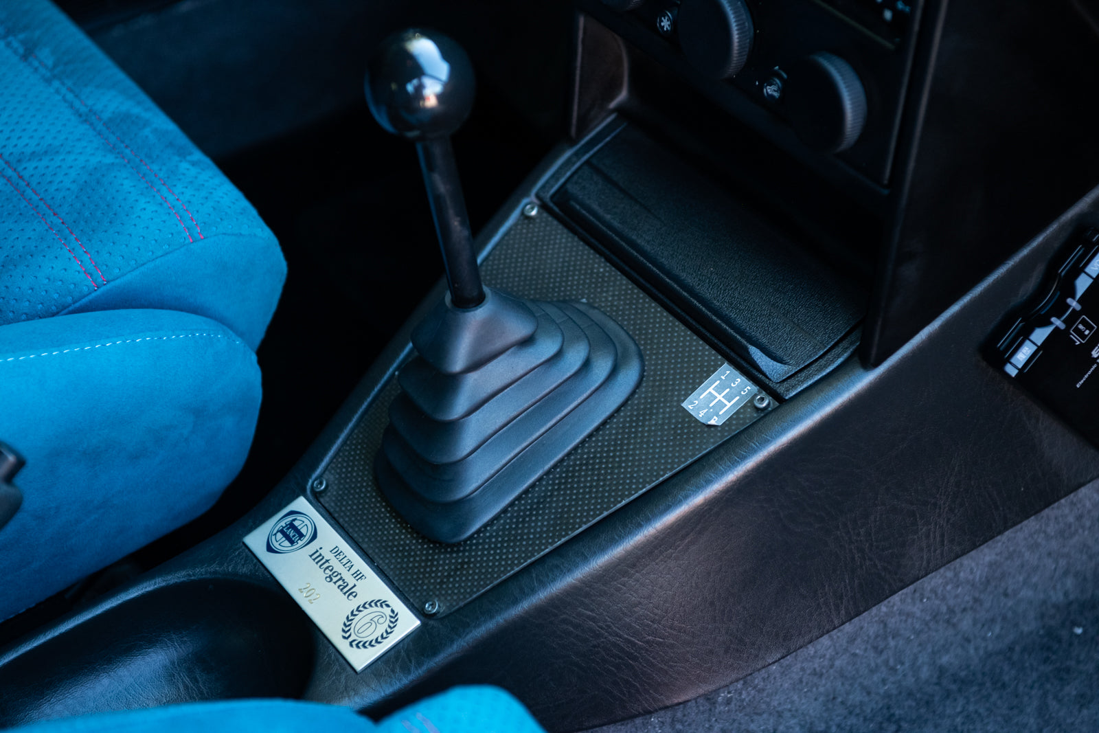 While the exterior treatment is subtle and conservative, the interior makes an obvious statement. The racy high-back Recaro bucket seats and interior trim were finished in a unique turquoise Alcantara, with HF logos embossed on the headrests. A bespoke 3-spoke steering wheel is fitted, along with a carbon-fibre-trimmed Quickshift gear lever in a console which features an individual plaque inscribed with the cars unique serial number. For an improved feel, Lancia fitted Teflon bushes to the gear linkage. The overall effect is stunning and distinctive.