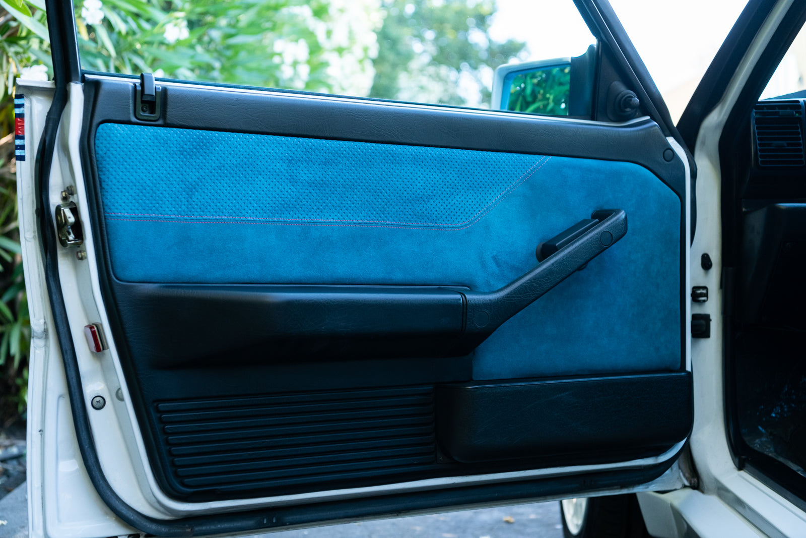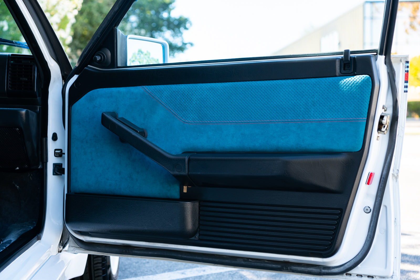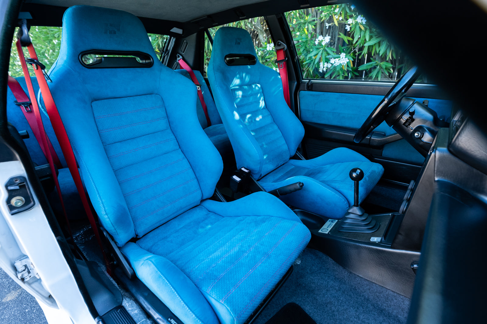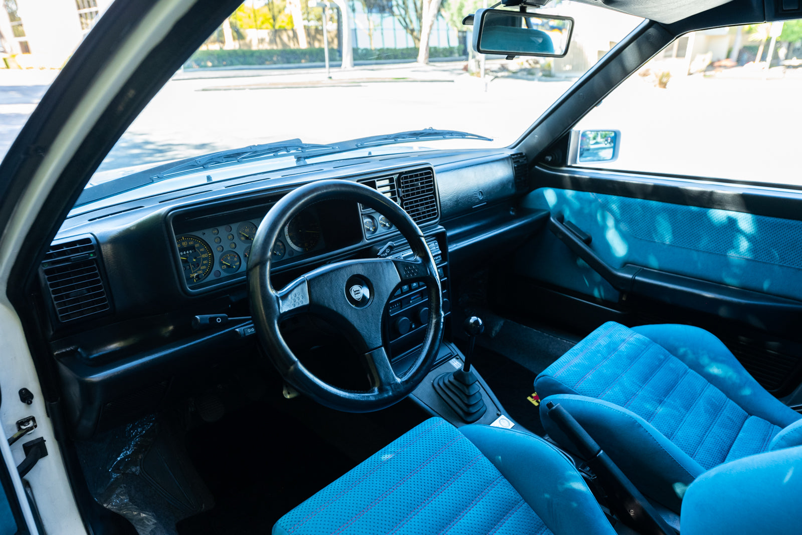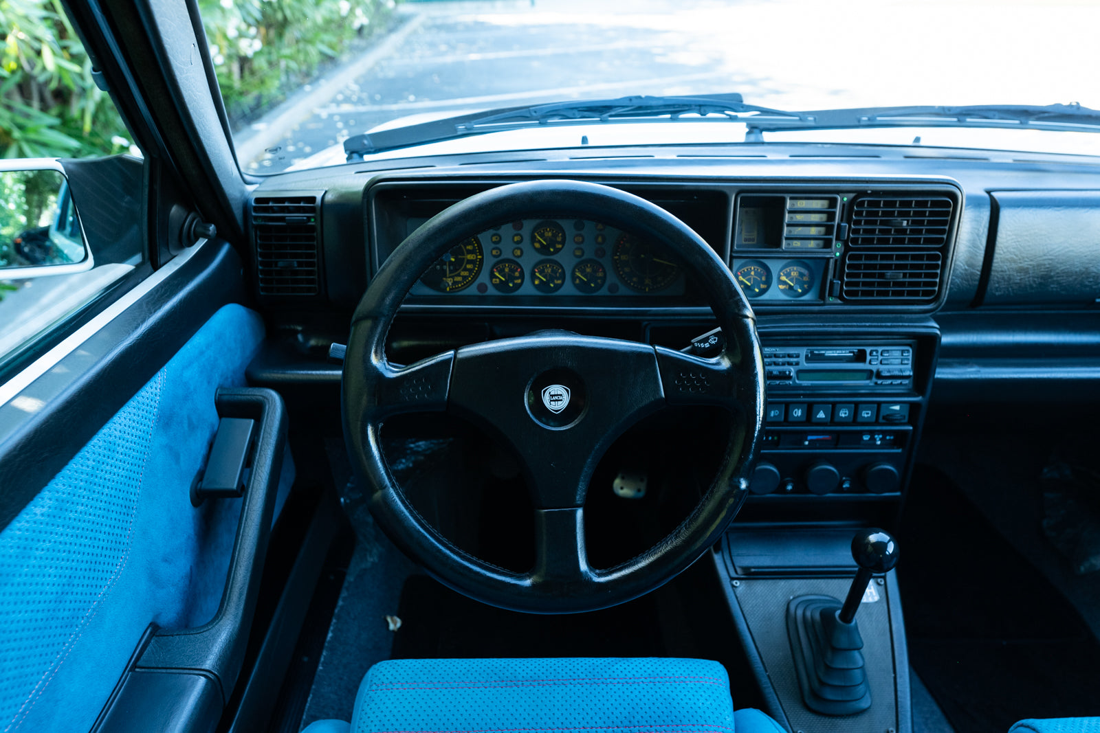 While the exterior treatment is subtle and conservative, the interior makes an obvious statement. The racy high-back Recaro bucket seats and interior trim were finished in a unique turquoise Alcantara, with HF logos embossed on the headrests. A bespoke 3-spoke steering wheel is fitted, along with a carbon-fibre-trimmed Quickshift gear lever in a console which features an individual plaque inscribed with the cars unique serial number. For an improved feel, Lancia fitted Teflon bushes to the gear linkage. The overall effect is stunning and distinctive.