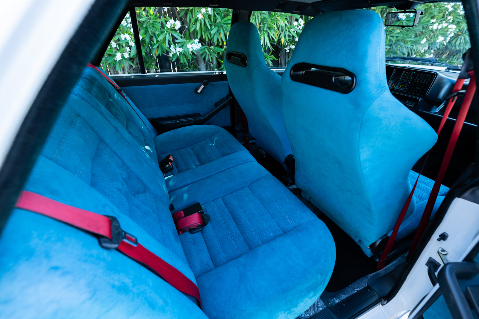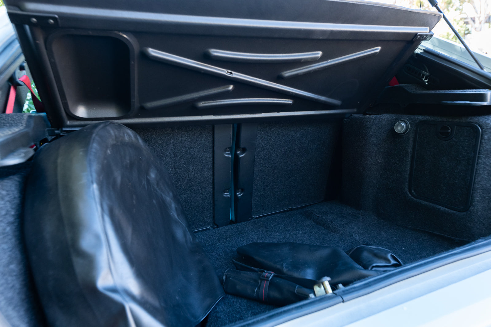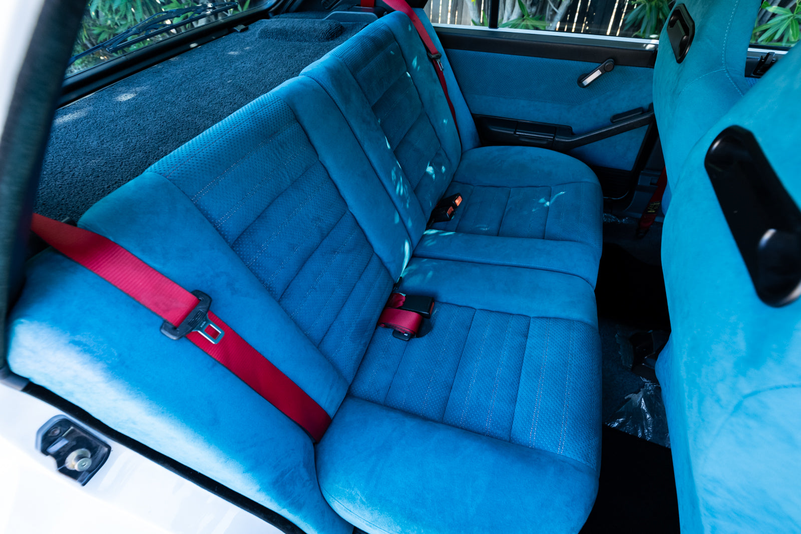 The interior is in excellent condition that showcases the bold turquoise Alcantara with contrasting red stitching and red seat belts. The dash is fully instrumented and a serious spectacle. A premium Japanese SONY cassette head unit controls the period correct audio system. A commemorative plaque on the console and carbon fiber shift surround are specific details. Rear cabin and door panels in virtually new condition. Overall interior is special and dramatic in a fashion that only the Italians can create.