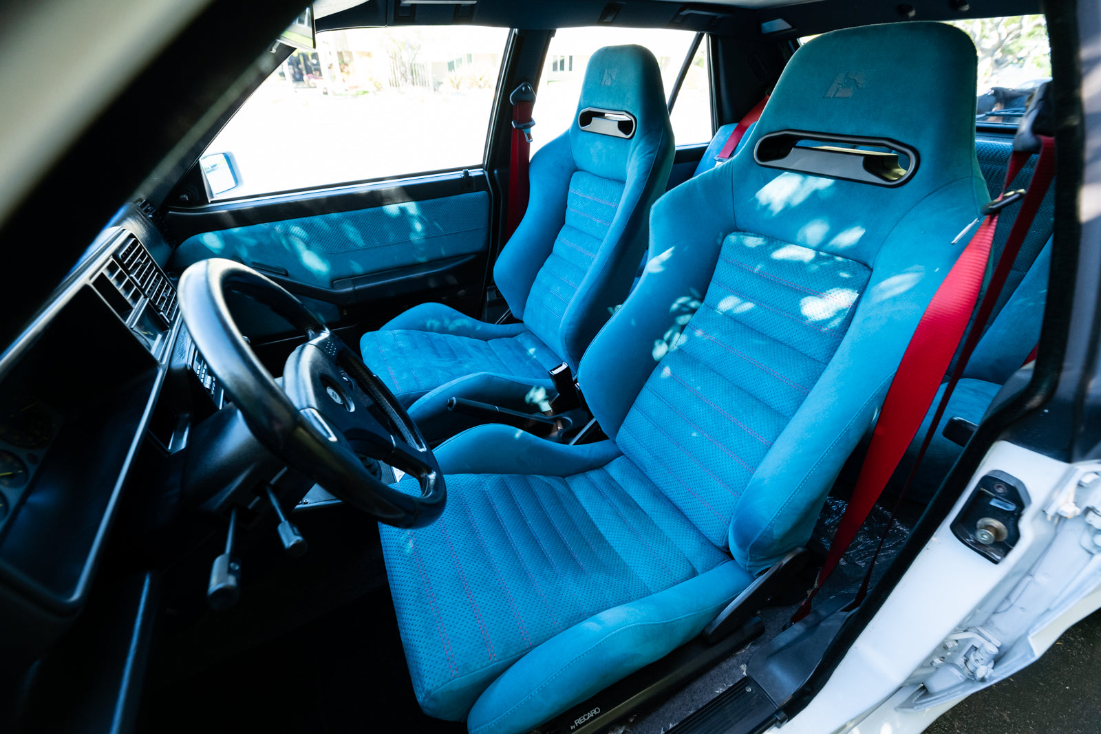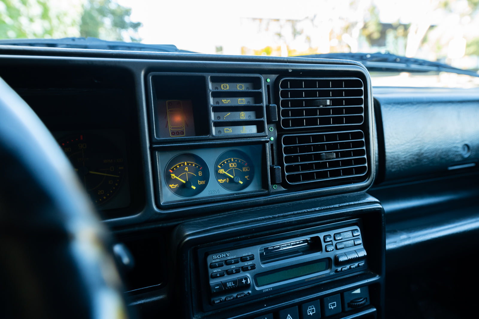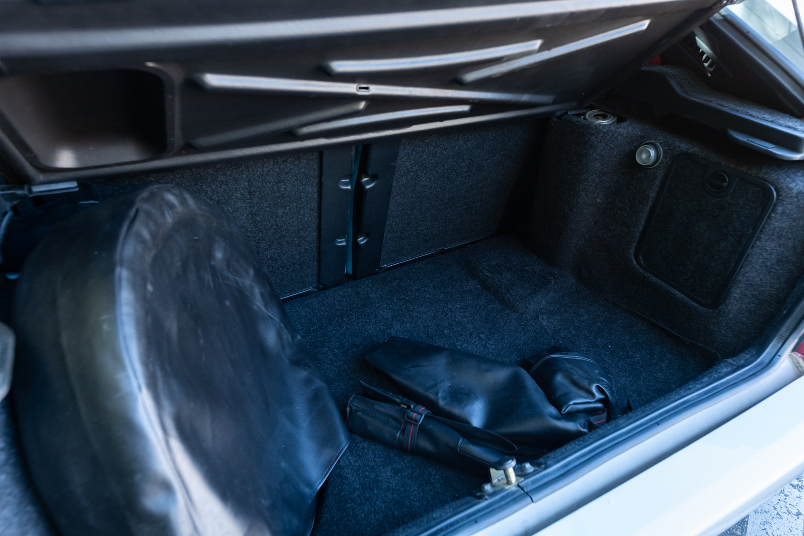 The interior is in excellent condition that showcases the bold turquoise Alcantara with contrasting red stitching and red seat belts. The dash is fully instrumented and a serious spectacle. A premium Japanese SONY cassette head unit controls the period correct audio system. A commemorative plaque on the console and carbon fiber shift surround are specific details. Rear cabin and door panels in virtually new condition. Overall interior is special and dramatic in a fashion that only the Italians can create.
