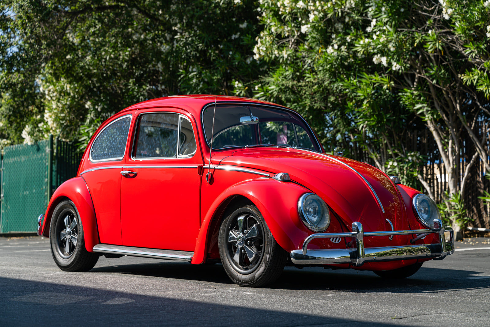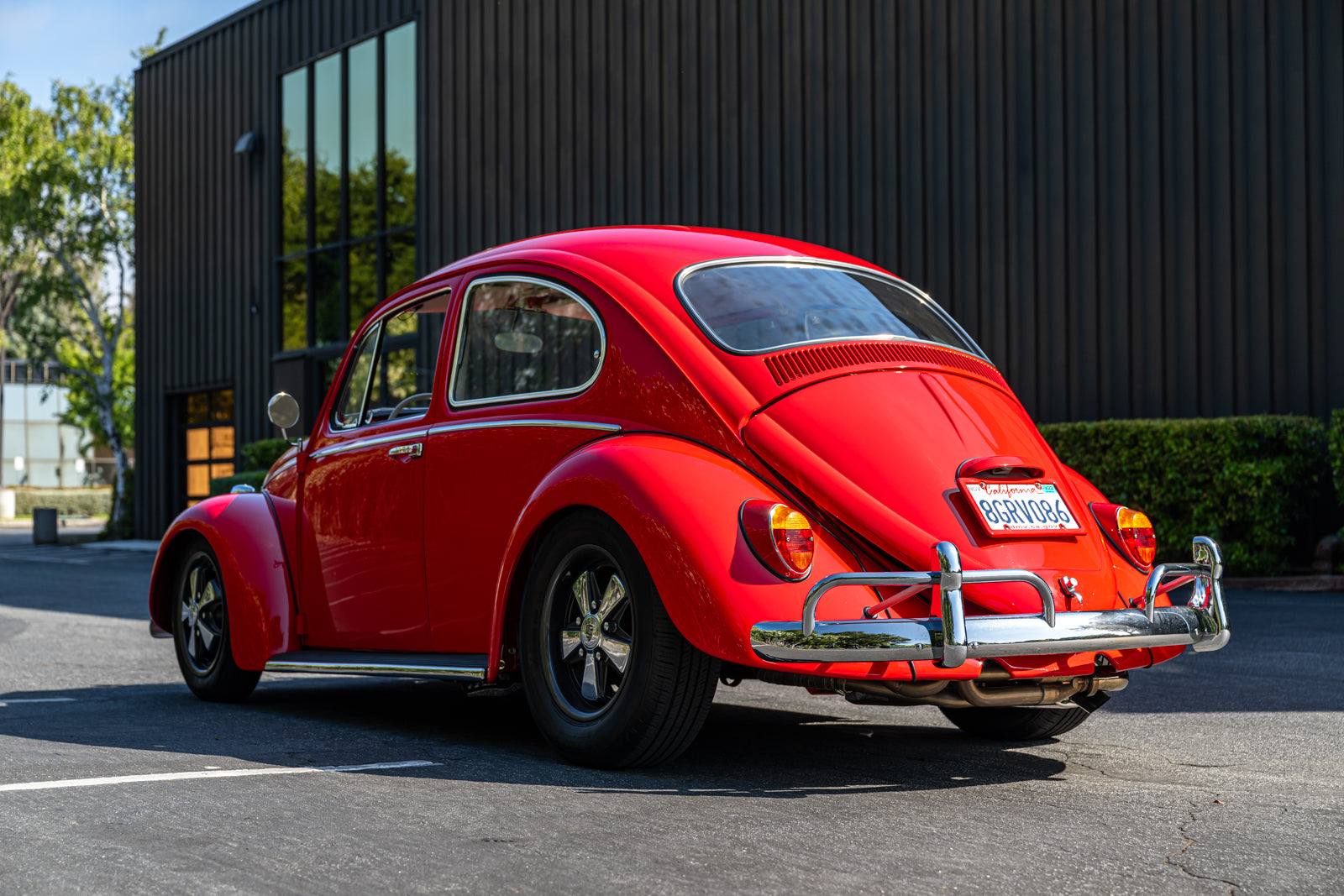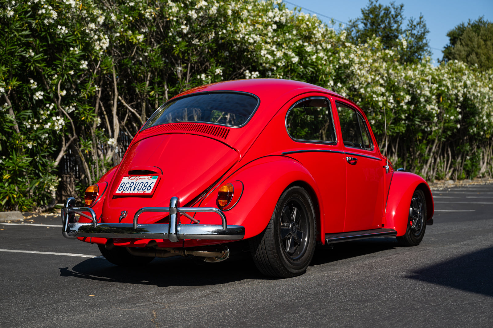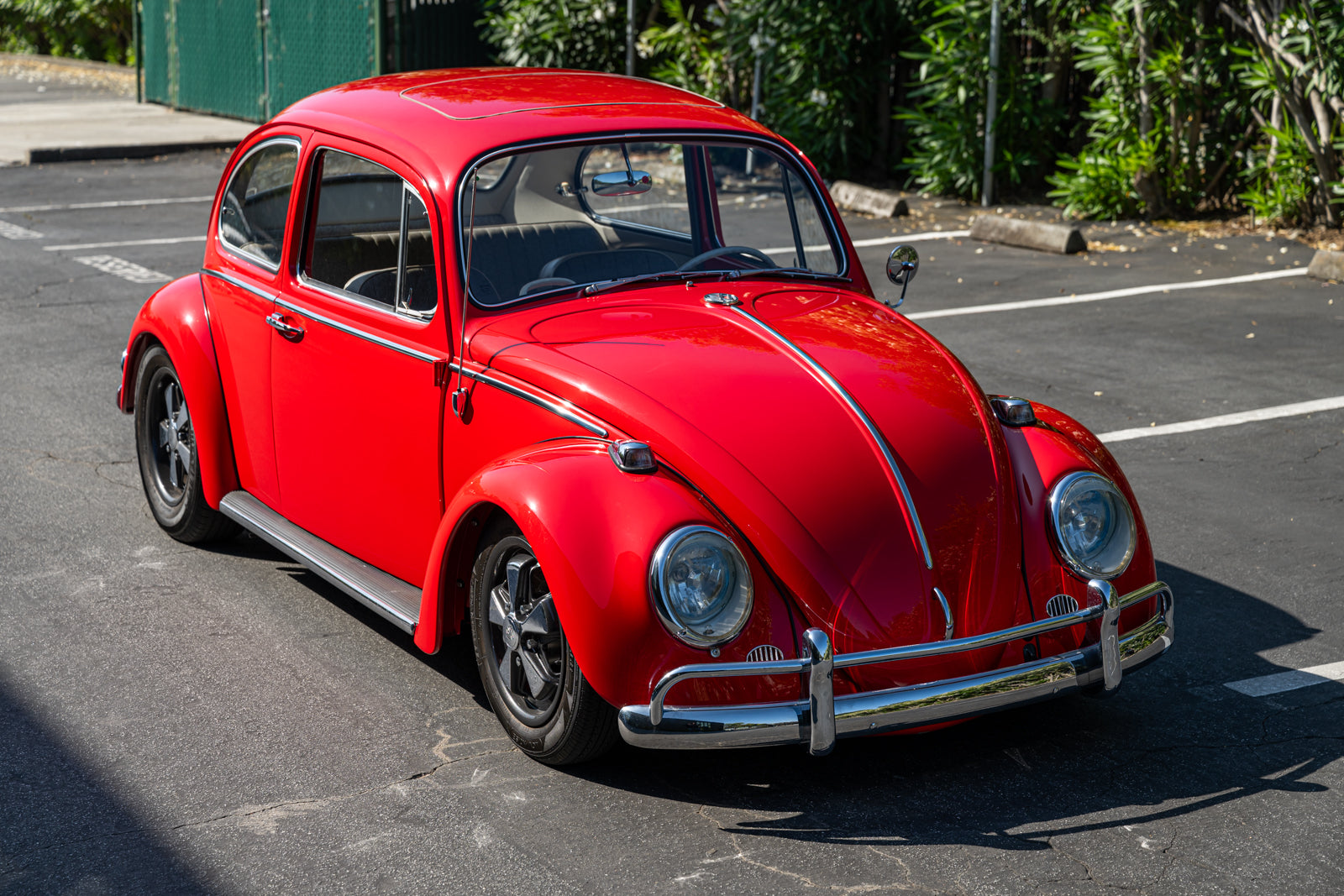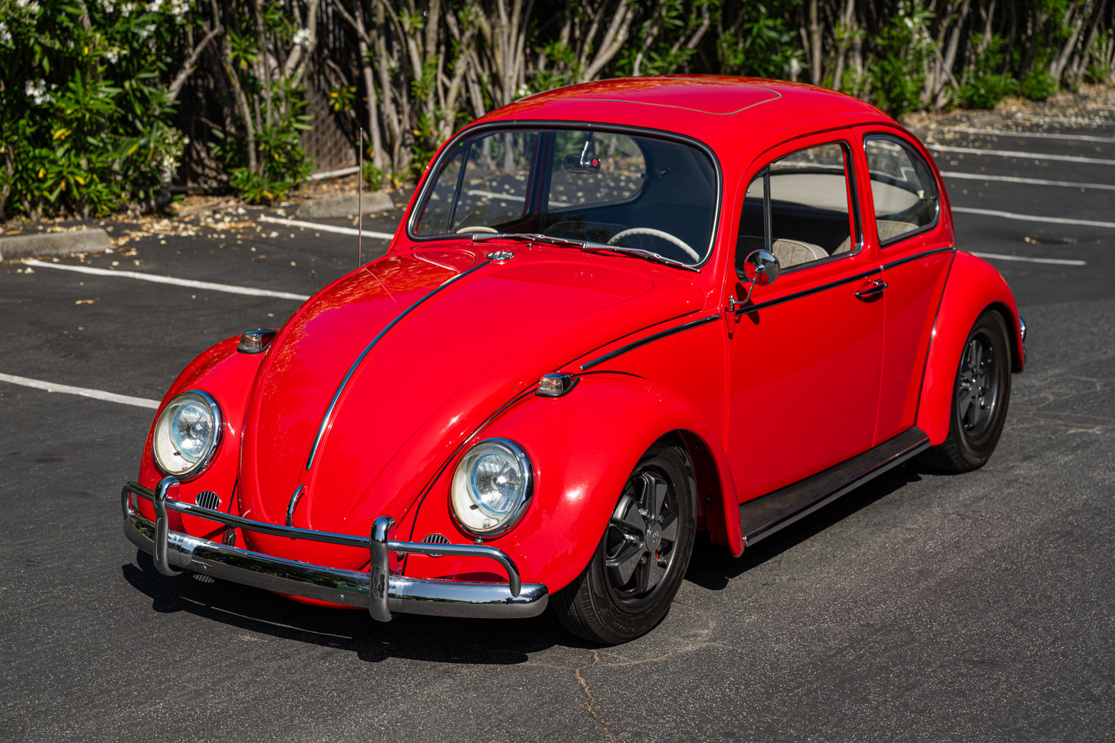 This 1965 Volkswagen Beetle was acquired by the seller in 2015, reportedly from the first owner who had imported the car to the US from Germany in 1965. The car underwent a mechanical and cosmetic refurbishment during current ownership that included removing the body from the frame, repainting the body in red, reupholstering the interior in gray, fitting a modified 2,275cc flat-four, and replacing the four-speed manual transaxle. Equipment includes Weber carburetors, an A-1 Sidewinder exhaust system, 15″ Fuchs-style wheels, four-wheel disc brakes, a sunroof, chrome bumpers and trim, a Gene Berg shifter, and a RetroSound radio. This Beetle is now offered with a refurbishment photo book, service records, build receipts, import documents, manufacturer’s literature, and a clean California title in the seller’s name.