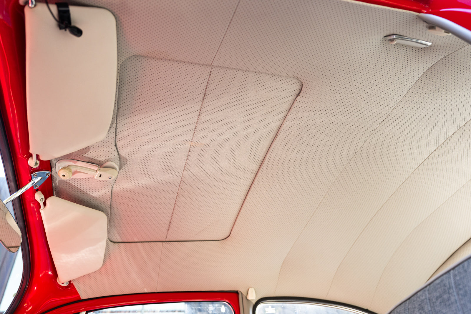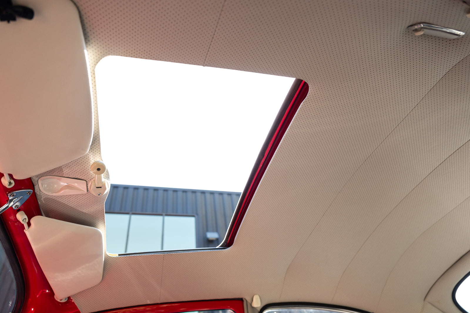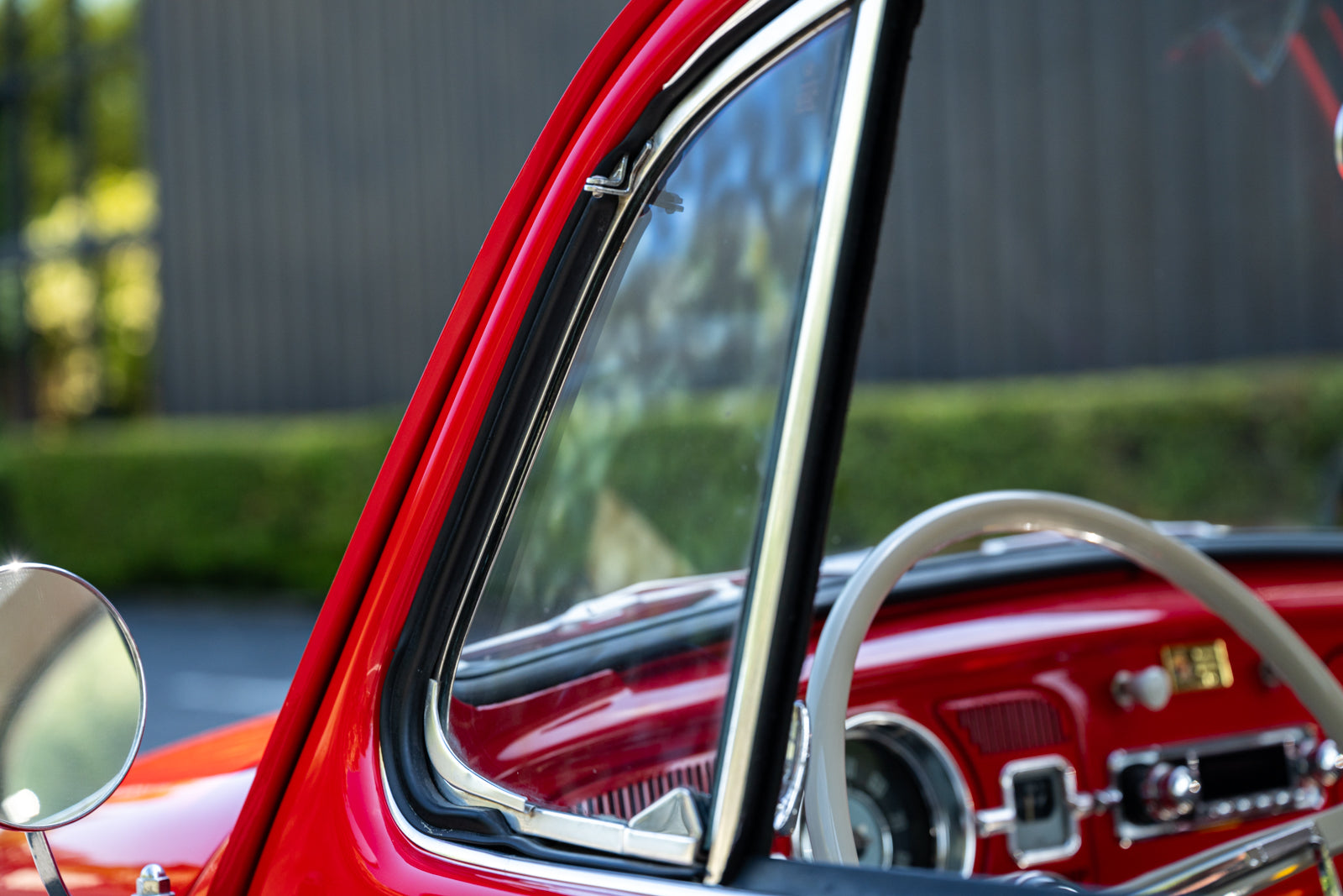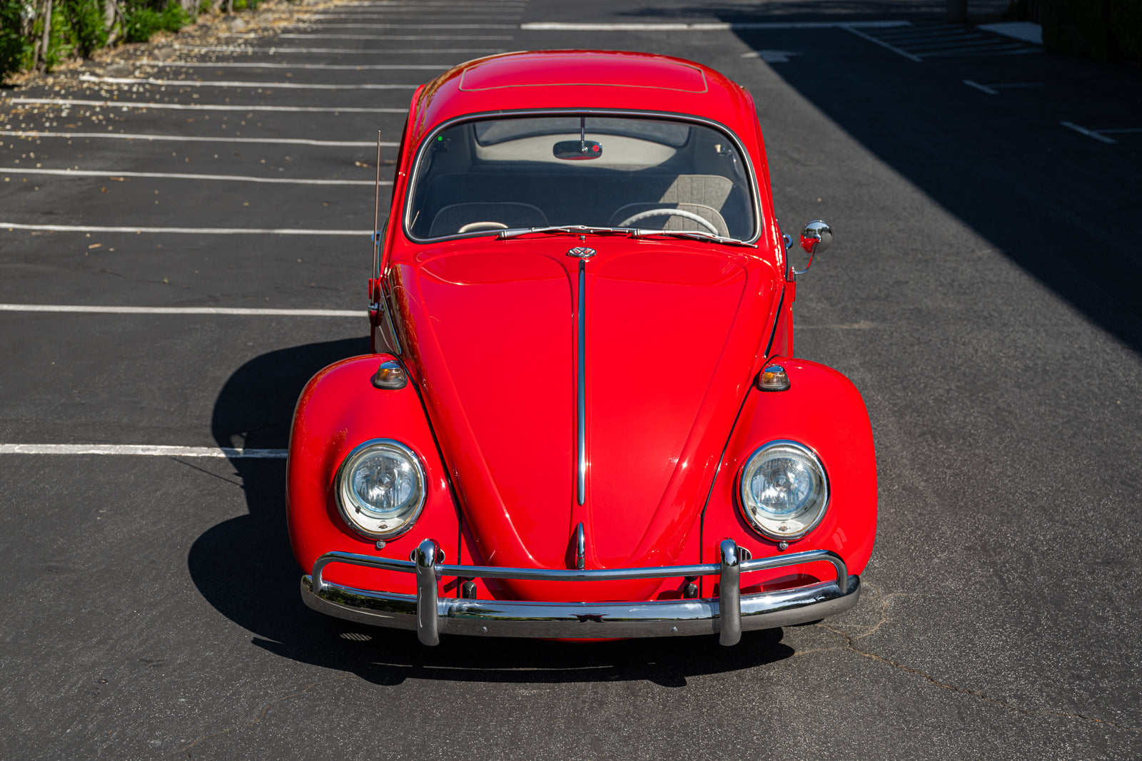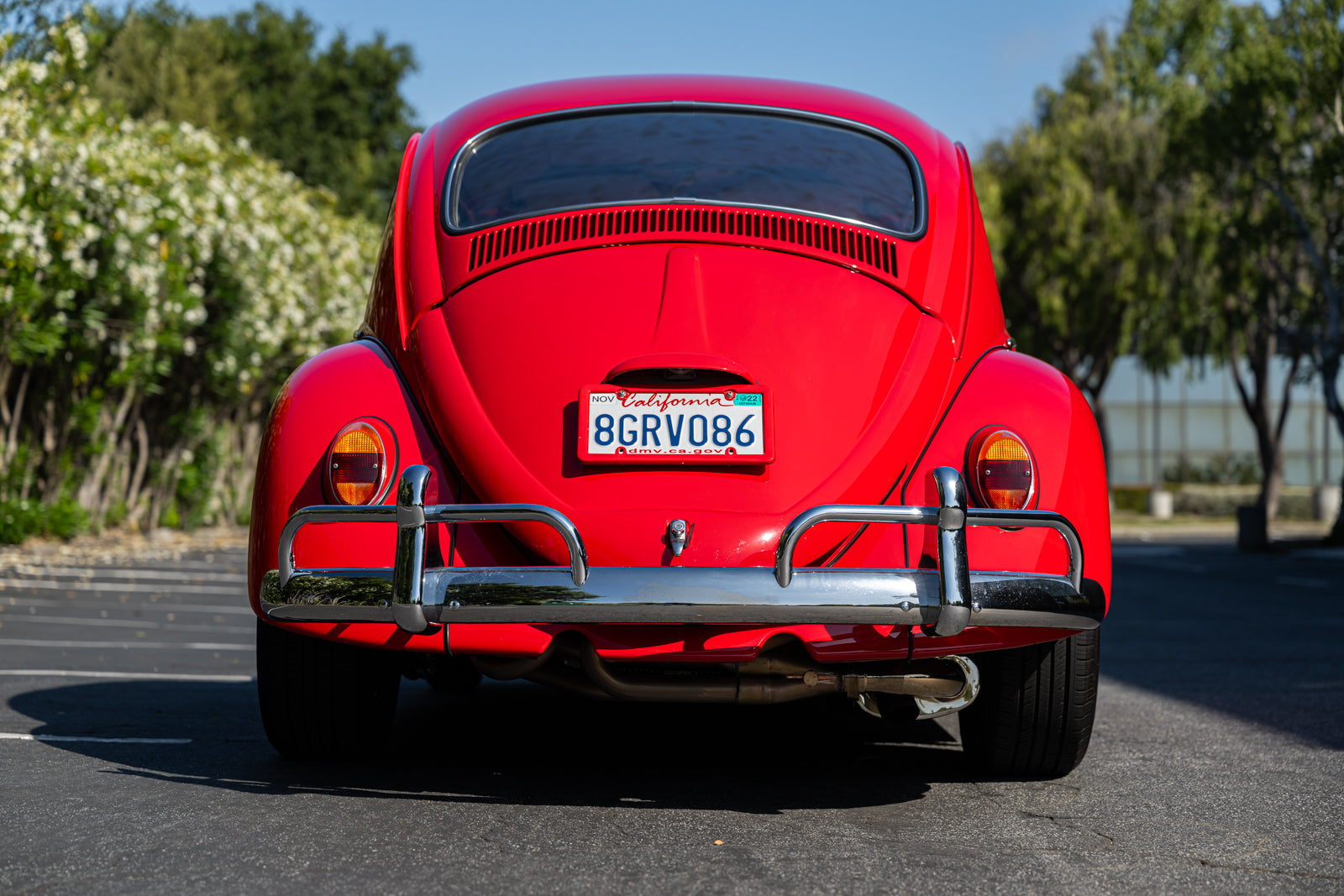 This 1965 Volkswagen Beetle was acquired by the seller in 2015, reportedly from the first owner who had imported the car to the US from Germany in 1965. The car underwent a mechanical and cosmetic refurbishment during current ownership that included removing the body from the frame, repainting the body in red, reupholstering the interior in gray, fitting a modified 2,275cc flat-four, and replacing the four-speed manual transaxle. Equipment includes Weber carburetors, an A-1 Sidewinder exhaust system, 15″ Fuchs-style wheels, four-wheel disc brakes, a sunroof, chrome bumpers and trim, a Gene Berg shifter, and a RetroSound radio. This Beetle is now offered with a refurbishment photo book, service records, build receipts, import documents, manufacturer’s literature, and a clean California title in the seller’s name.