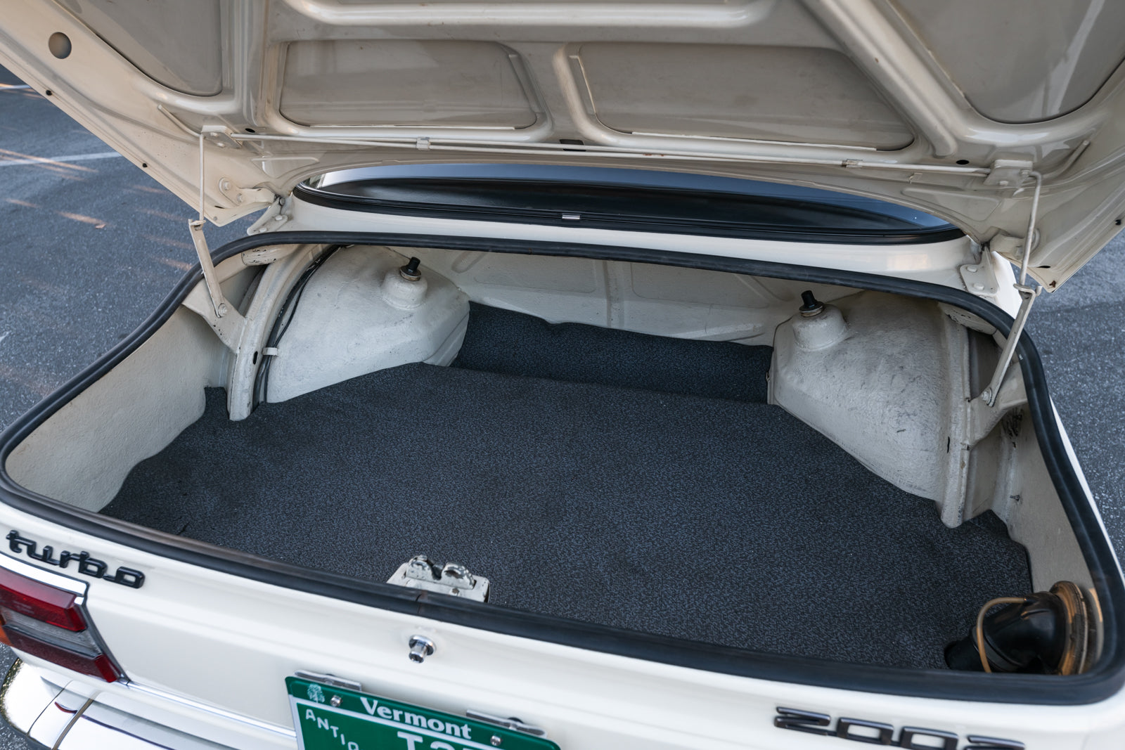 Engine compartment is very stock, neat and tidy. The punchy turbo four is mated to a crisp shifting 5-speed dog-leg manual transmission. The exhaust system is new.