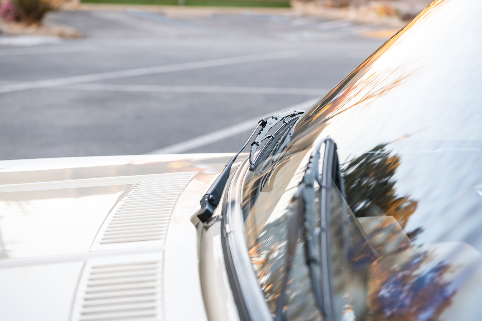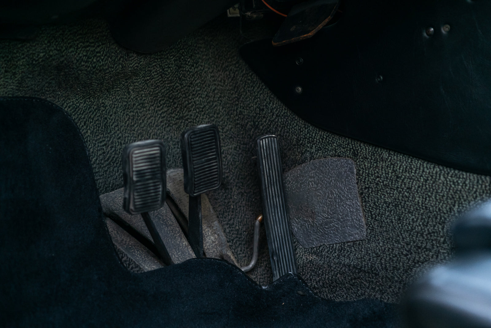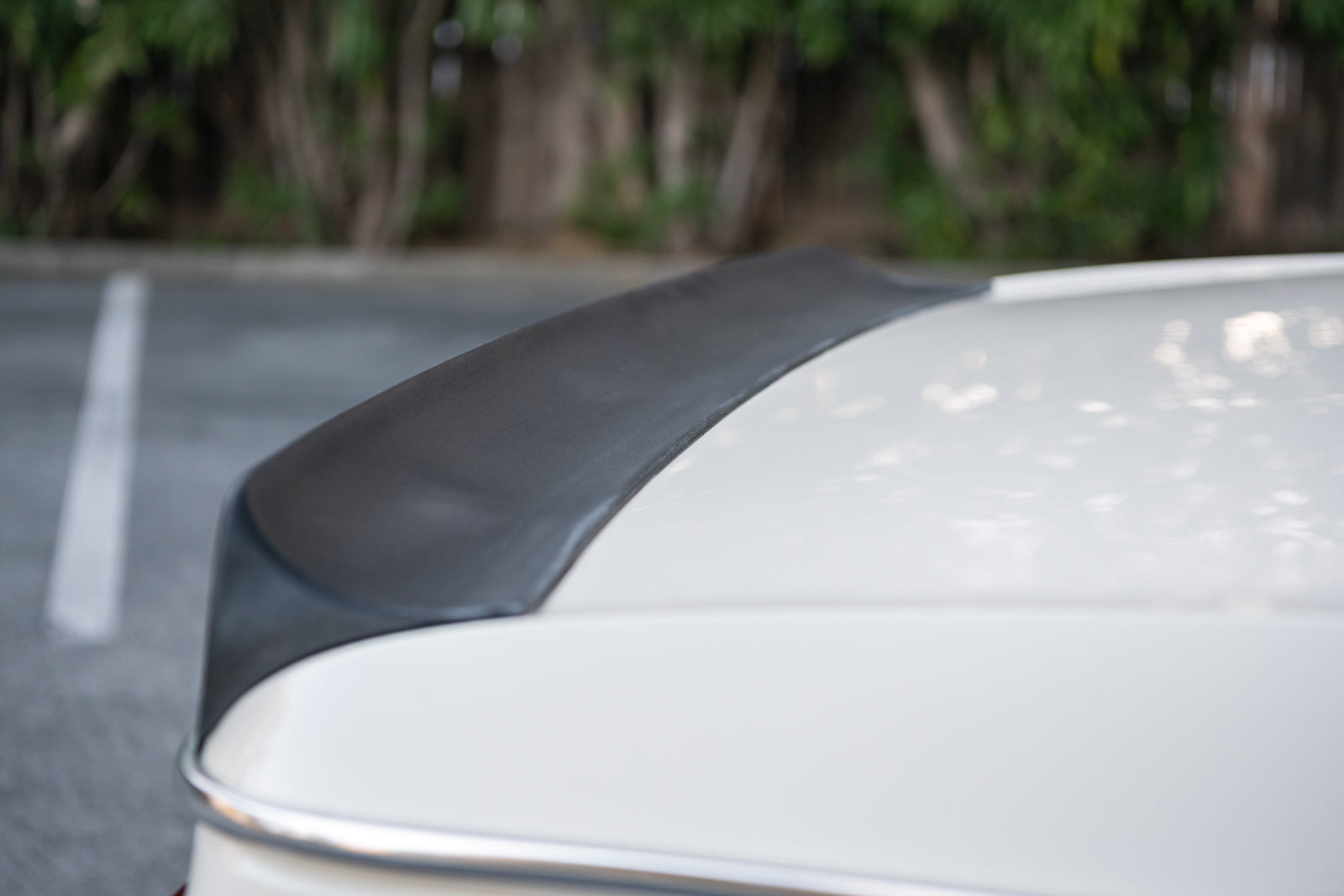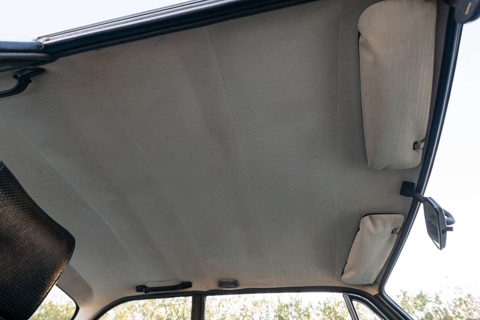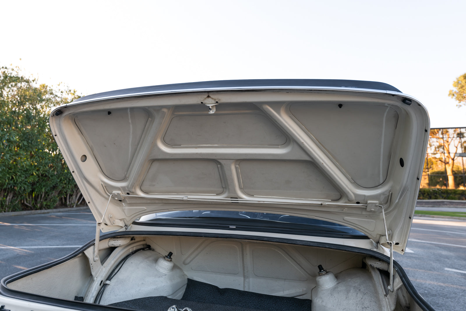 Largely original and correct, the body is straight and solid with no rust or evidence if prior rust repairs. The car has been repainted and shows the good luster typical of the best period enamels. Overall the exterior is in very good condition with correct side and front stripes. The factory riveted on wheel flares are in excellent condition all around. Near new tires are mounted on rare Mahle alloy rims and a full size spare on a matching wheel is in the boot. A discreet spoiler tops the clamshell trunk lid.