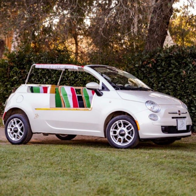 Custom created to order in Italy each Jolly limited edition starts with a new or pre-owned US or EURO spec Fiat 500 convertible, your choice of trim level. You may select the donor car or we can source one for you. The base car is shipped to our Italian facility for the makeover. The conversion features all metal bodywork, professional paintwork, fine woodworking, top quality hardware, unique wicker seating and exceptional attention to detail. All mechanical systems are inspected and refreshed as necessary in the case of a pre-owned donor car. All features of the original FIAT 500 remain and your new Jolly offers contemporary convenience, comfort and performance.