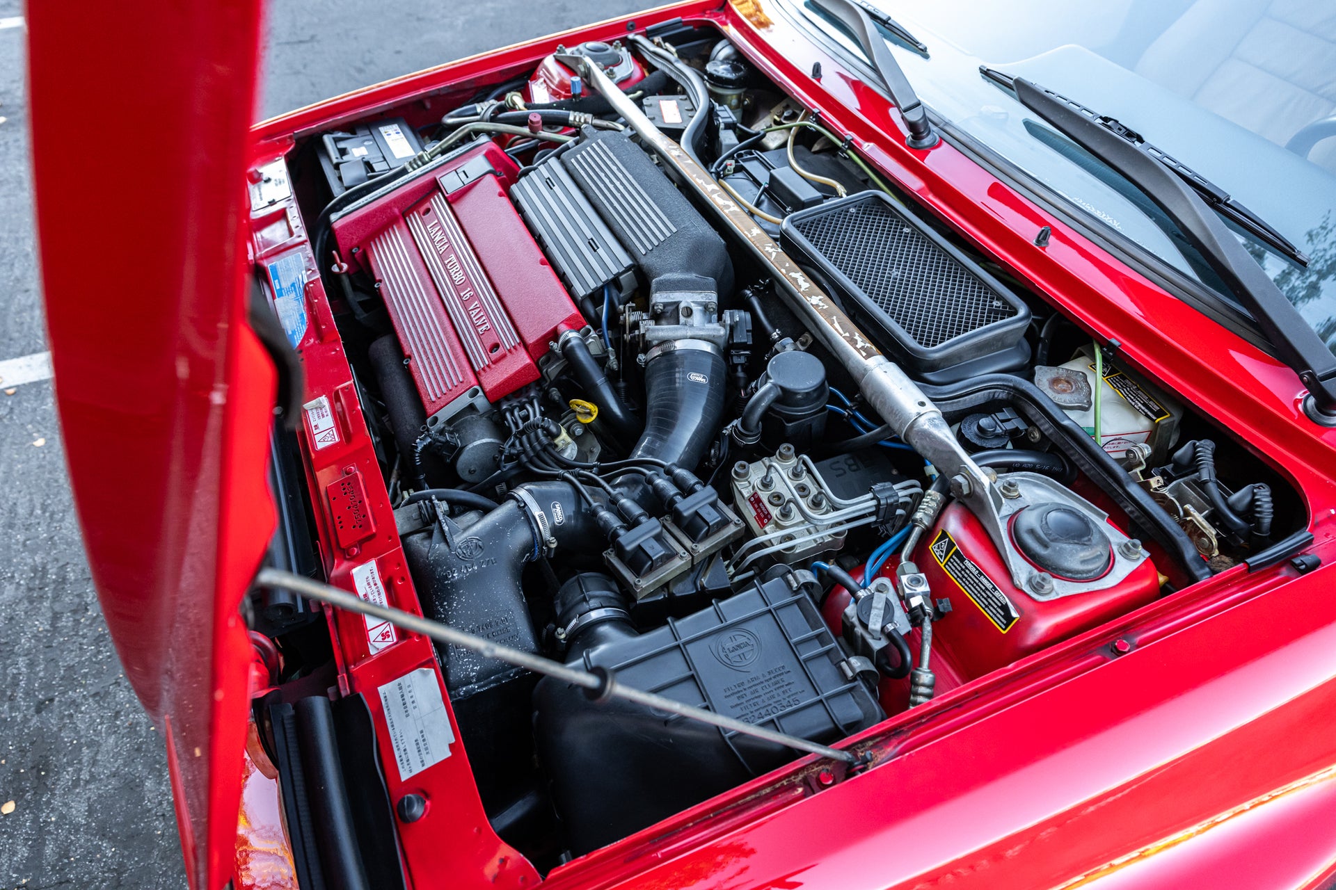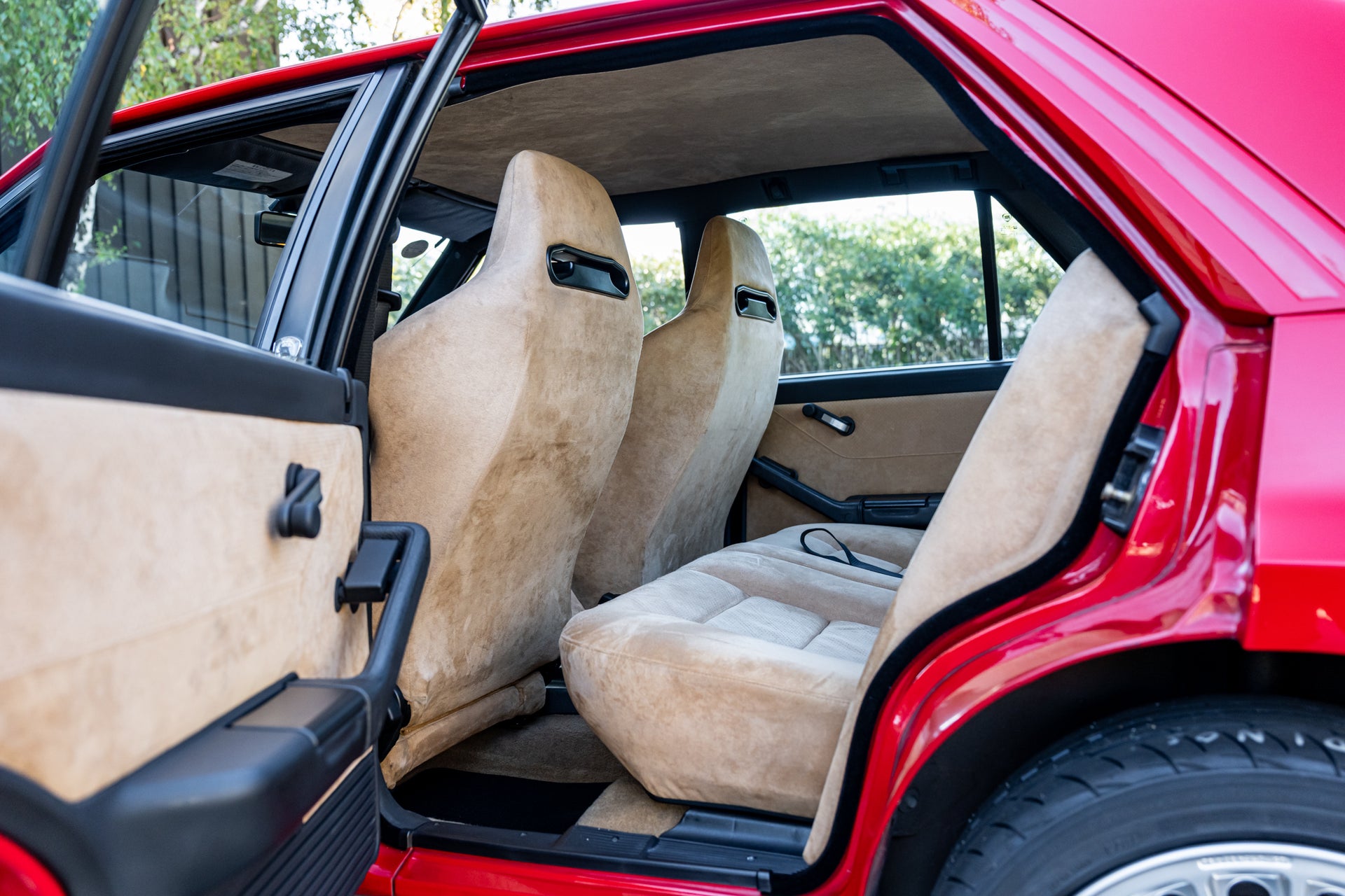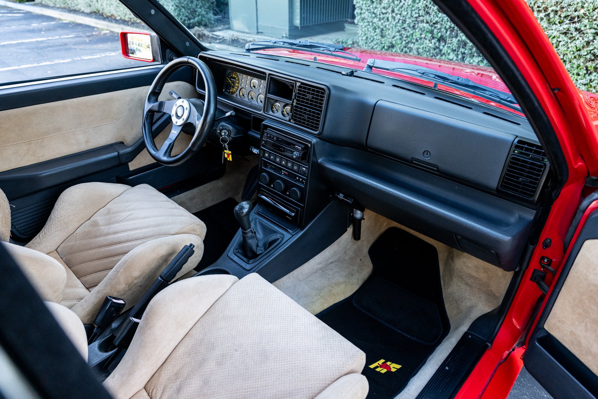 Mechanically, this Integrale performs with precision. The 2.0-liter turbocharged 16-valve engine delivers strong, linear boost through its 5-speed manual gearbox, while Lancia’s legendary all-wheel-drive system provides exceptional grip and balance. The car’s responsive feel and smooth operation speak to its well-documented maintenance and careful ownership.