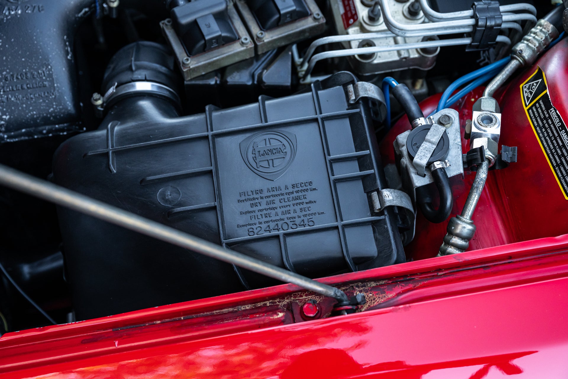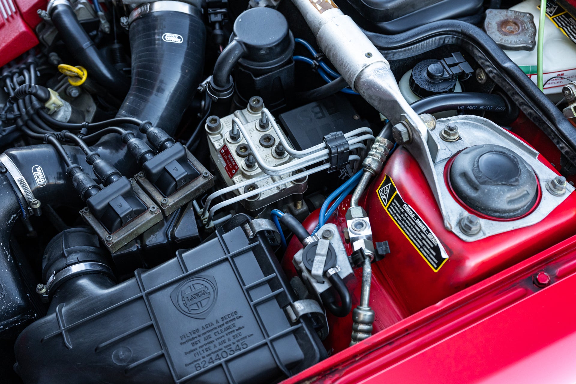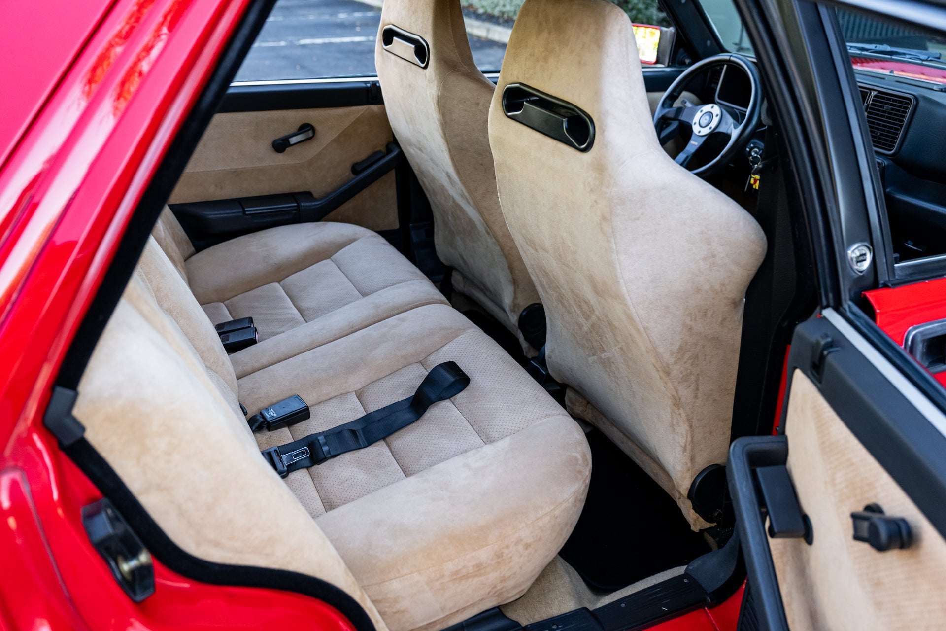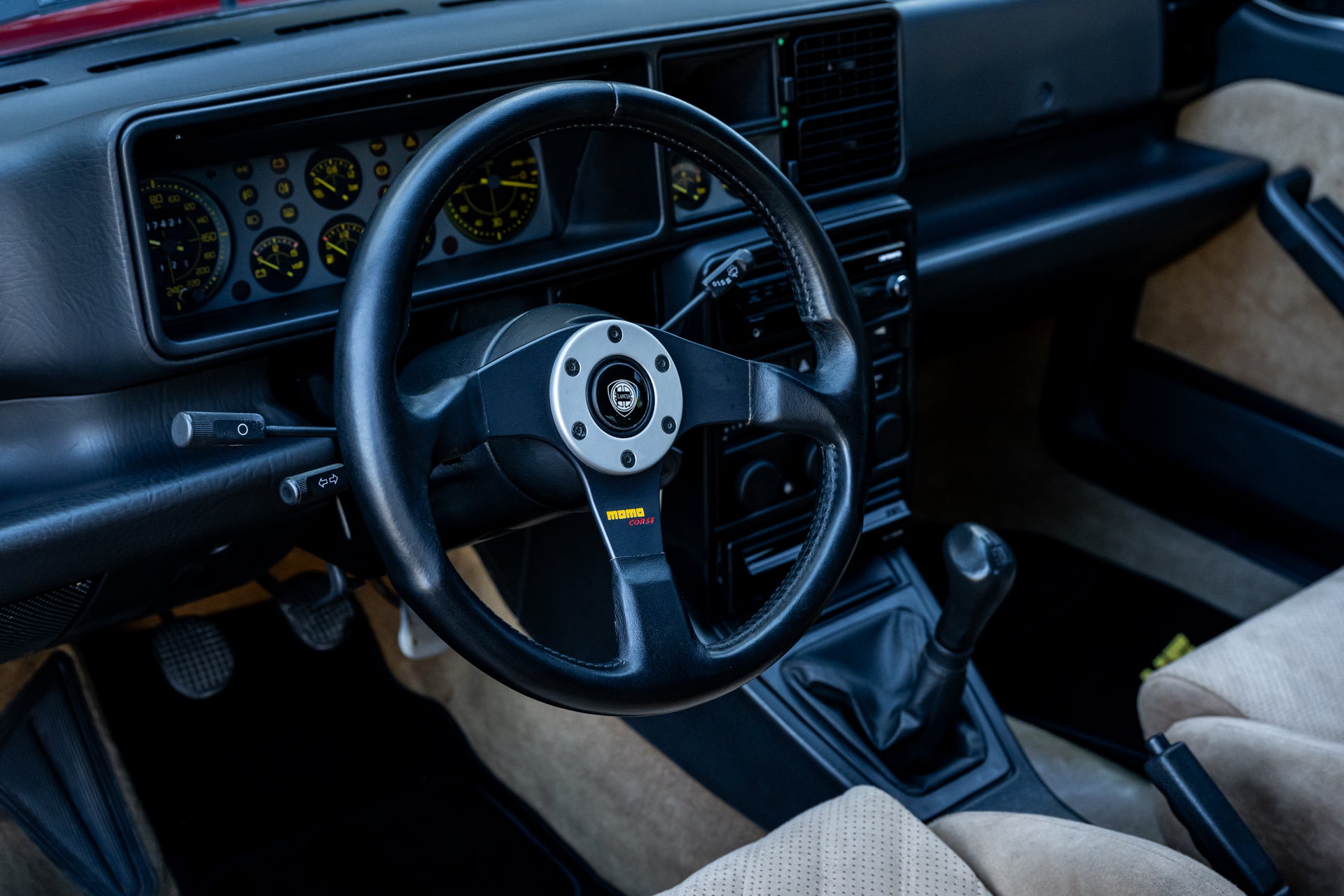 Mechanically, this Integrale performs with precision. The 2.0-liter turbocharged 16-valve engine delivers strong, linear boost through its 5-speed manual gearbox, while Lancia’s legendary all-wheel-drive system provides exceptional grip and balance. The car’s responsive feel and smooth operation speak to its well-documented maintenance and careful ownership.