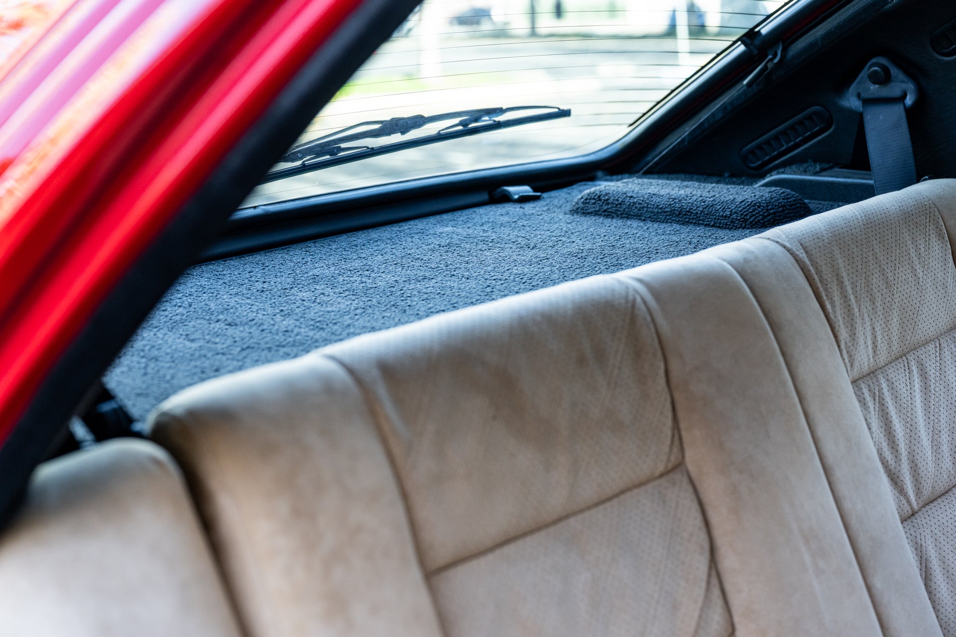 Inside, the original Alcantara sport seats, carpeting, and switchgear show only minimal signs of use, further validating the car’s low mileage and careful stewardship. Every feature functions properly, and the cabin retains the distinctive, purposeful character that defines the Evo II experience.
