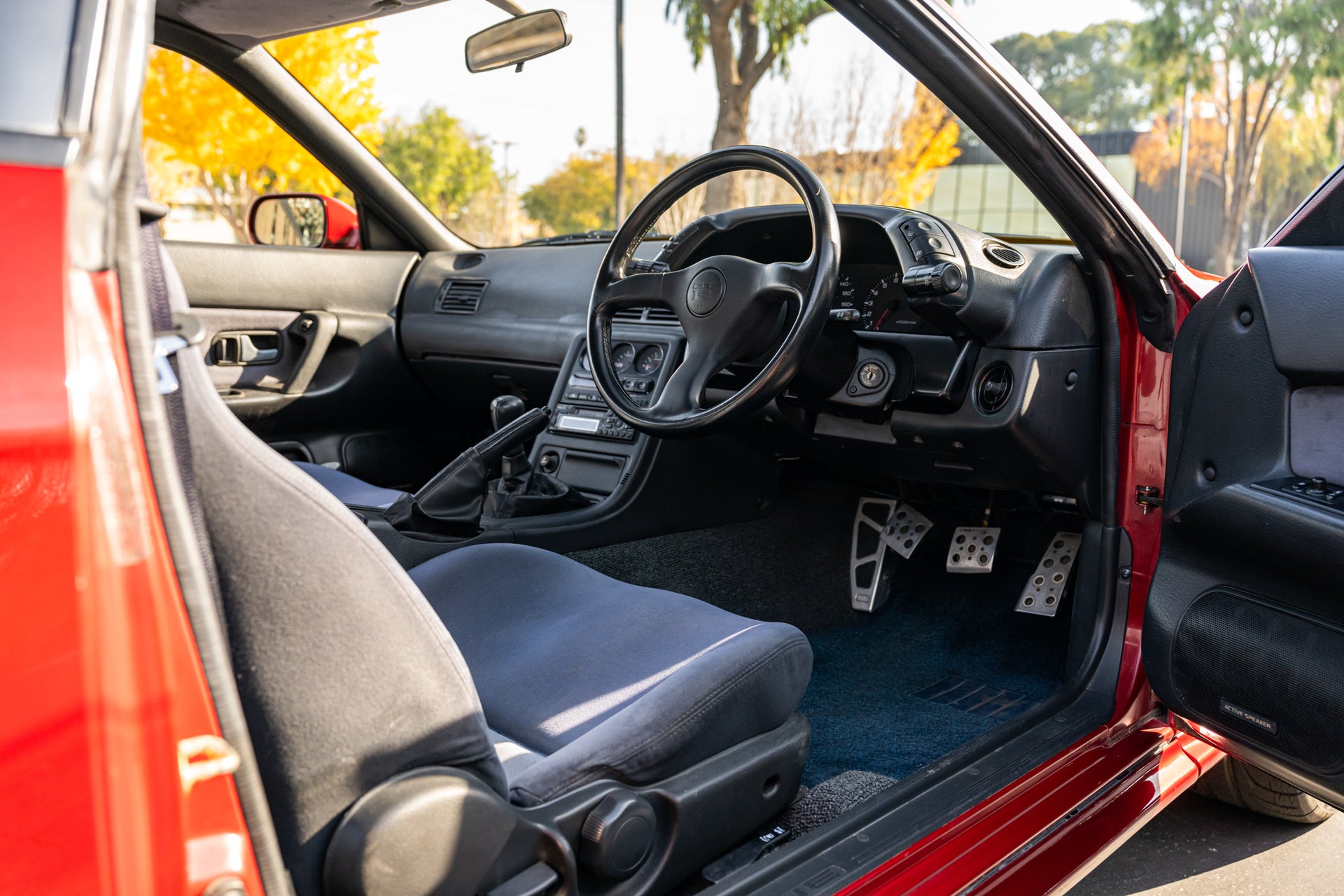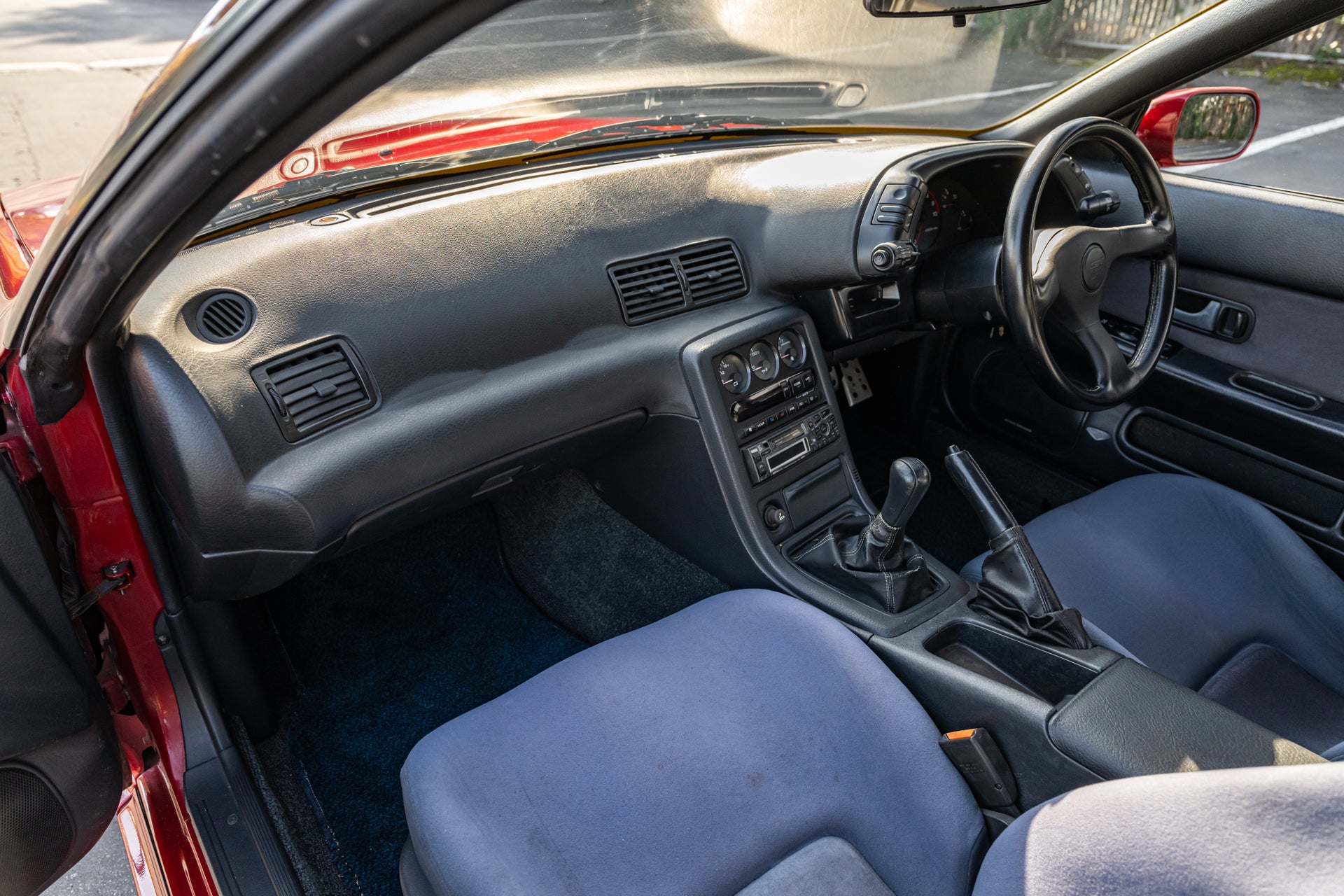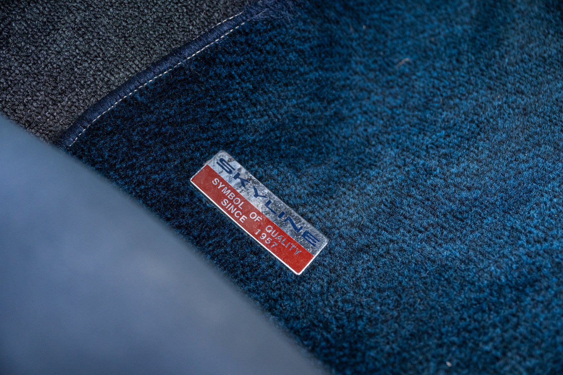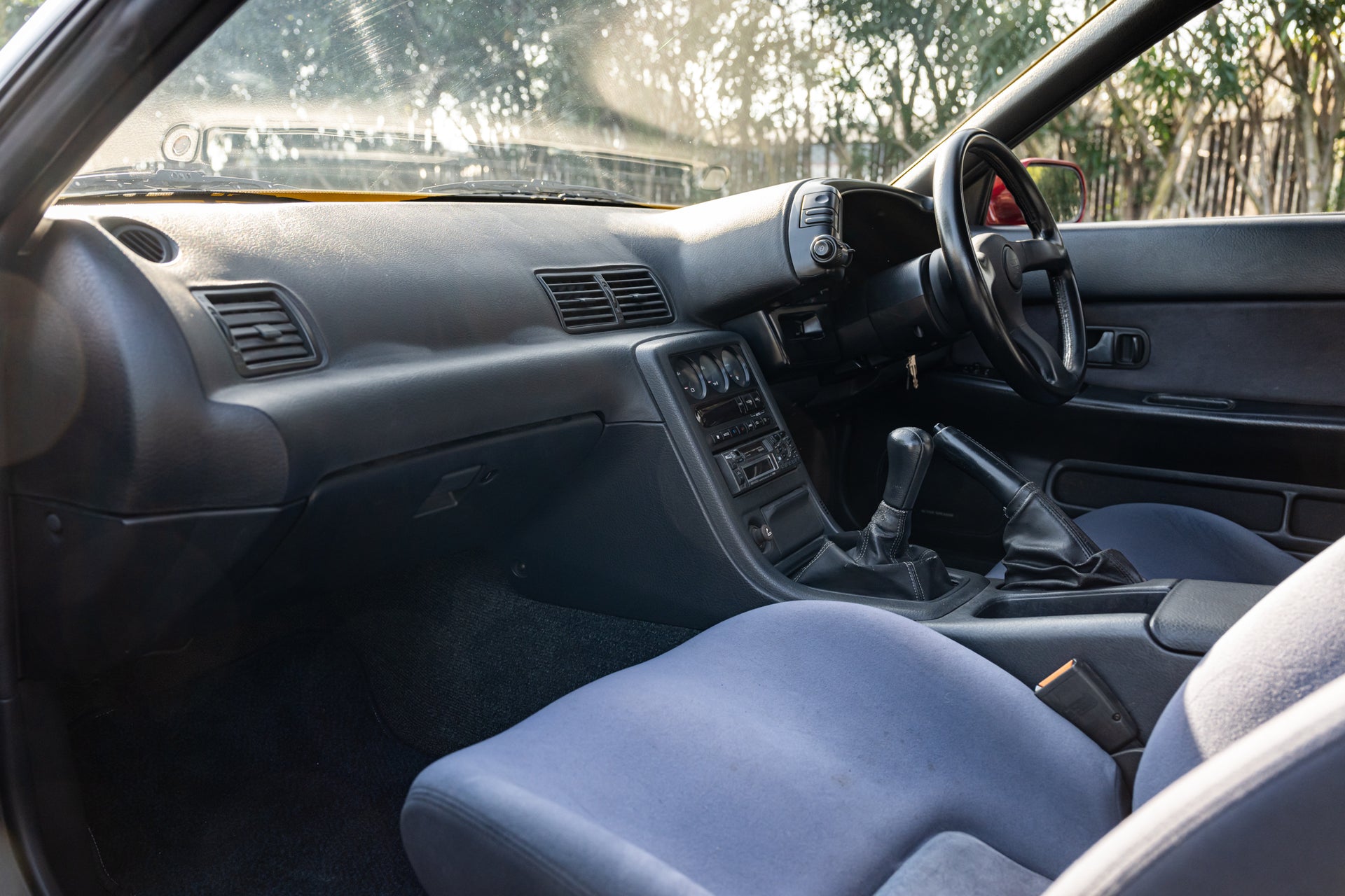 In addition to the awesome twin turbo performance, the Skyline GT-R offered a serious driving environment. The interior features a well instrumented offset cockpit style dash focused on the driver and sporty bolstered twin seats. A period correct Japanese-spec Kenwood cassette stereo is fitted to the console. Upholstery is fabric and faux suede in deep grey tones. The rear seat offers twin bucket positions and there is a practically sized trunk.