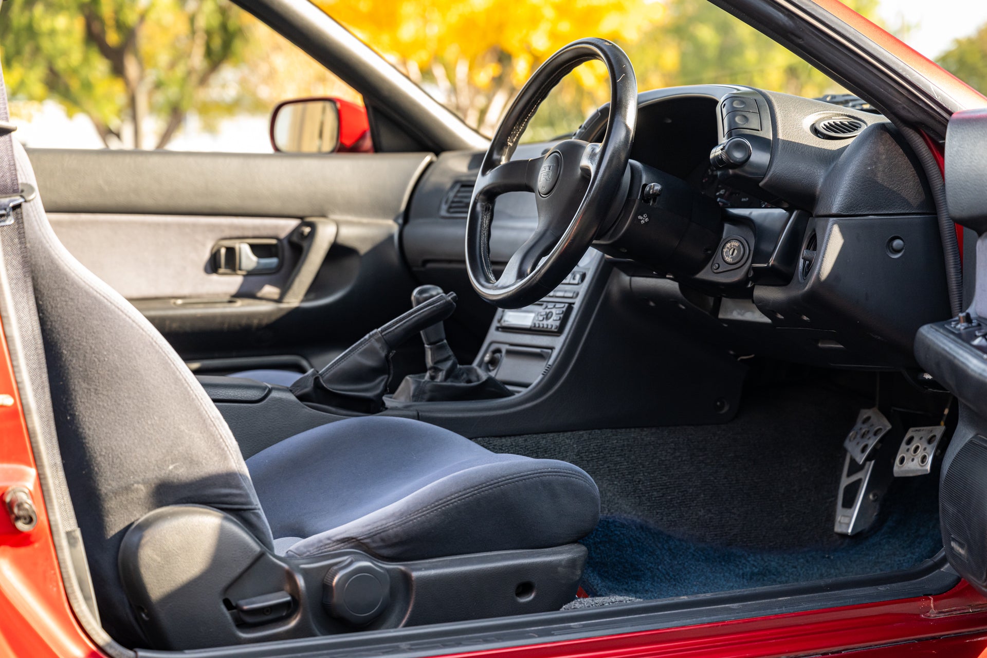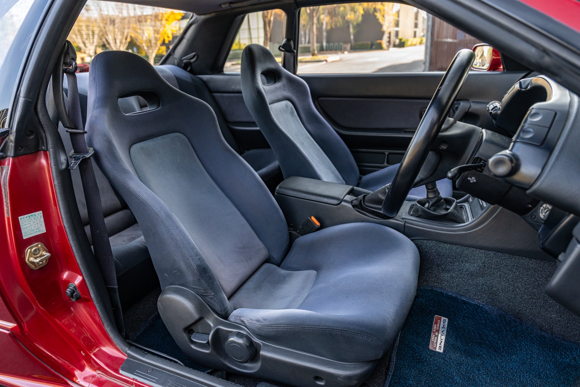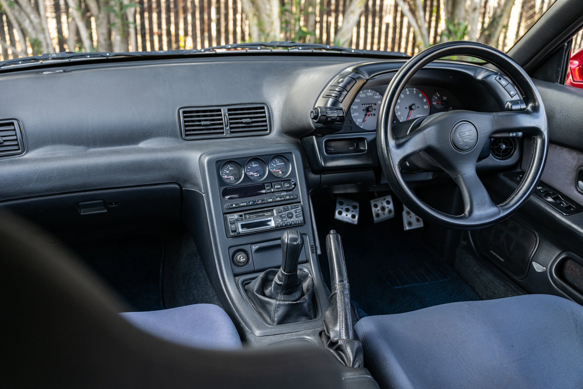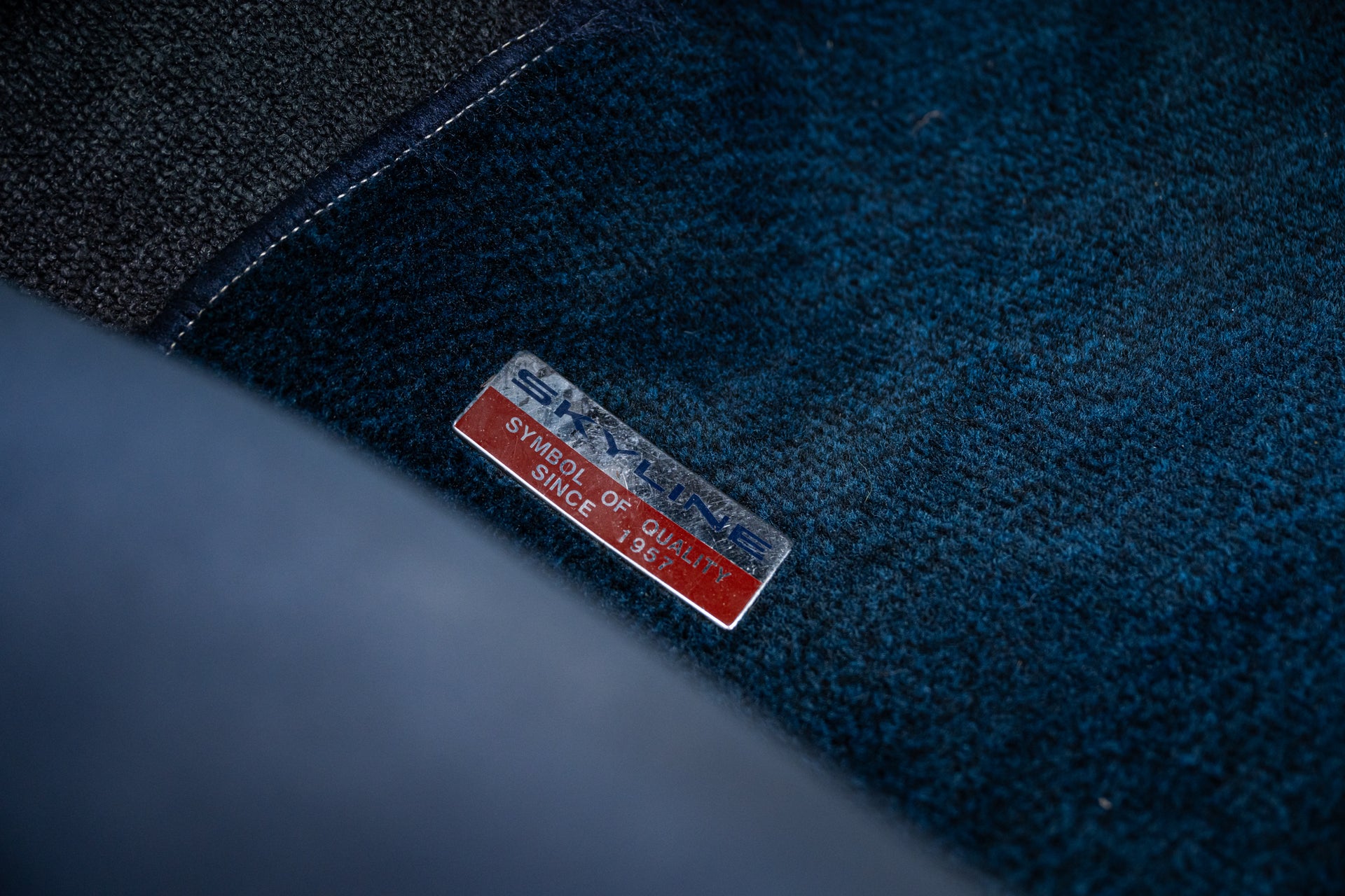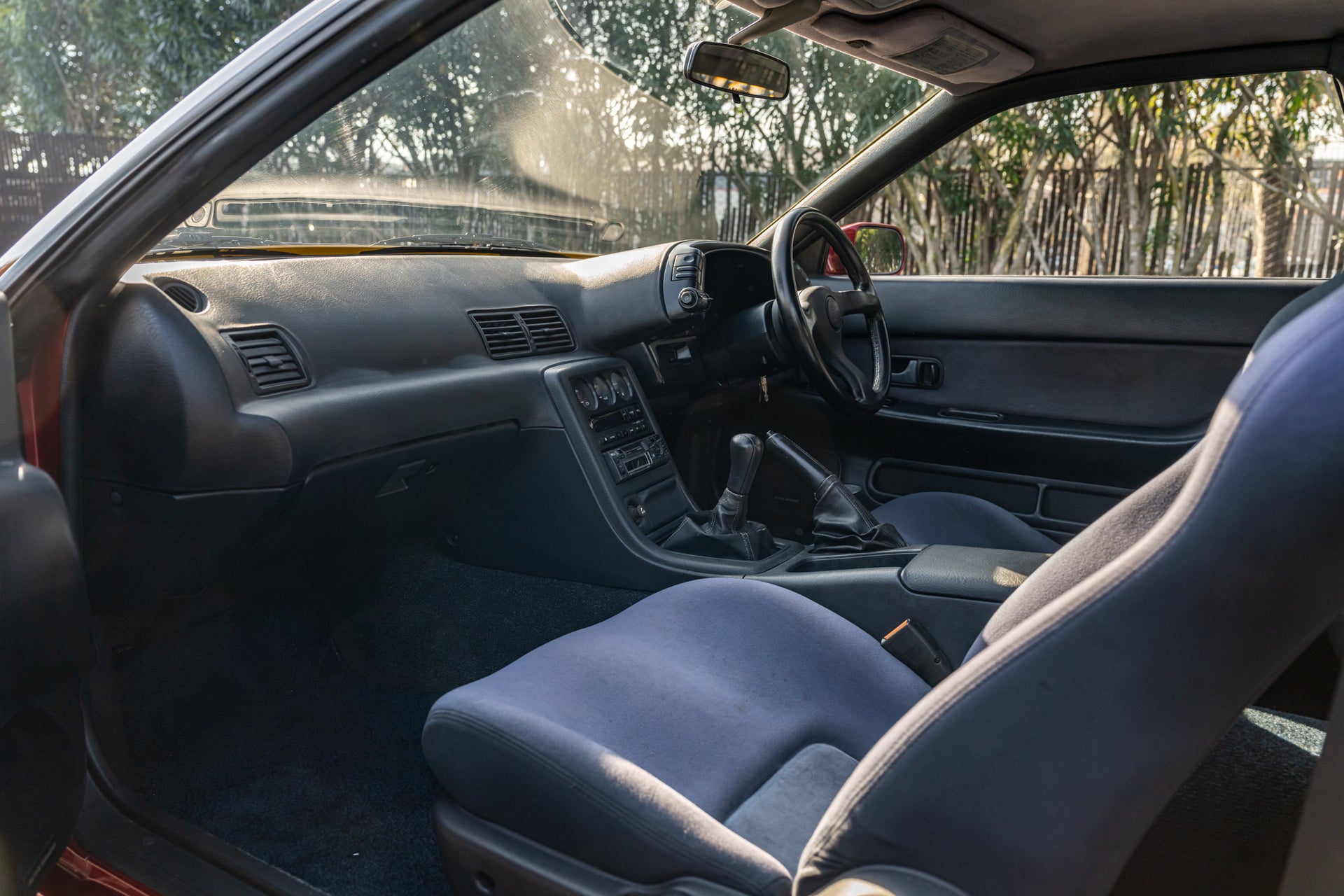 In addition to the awesome twin turbo performance, the Skyline GT-R offered a serious driving environment. The interior features a well instrumented offset cockpit style dash focused on the driver and sporty bolstered twin seats. A period correct Japanese-spec Kenwood cassette stereo is fitted to the console. Upholstery is fabric and faux suede in deep grey tones. The rear seat offers twin bucket positions and there is a practically sized trunk.