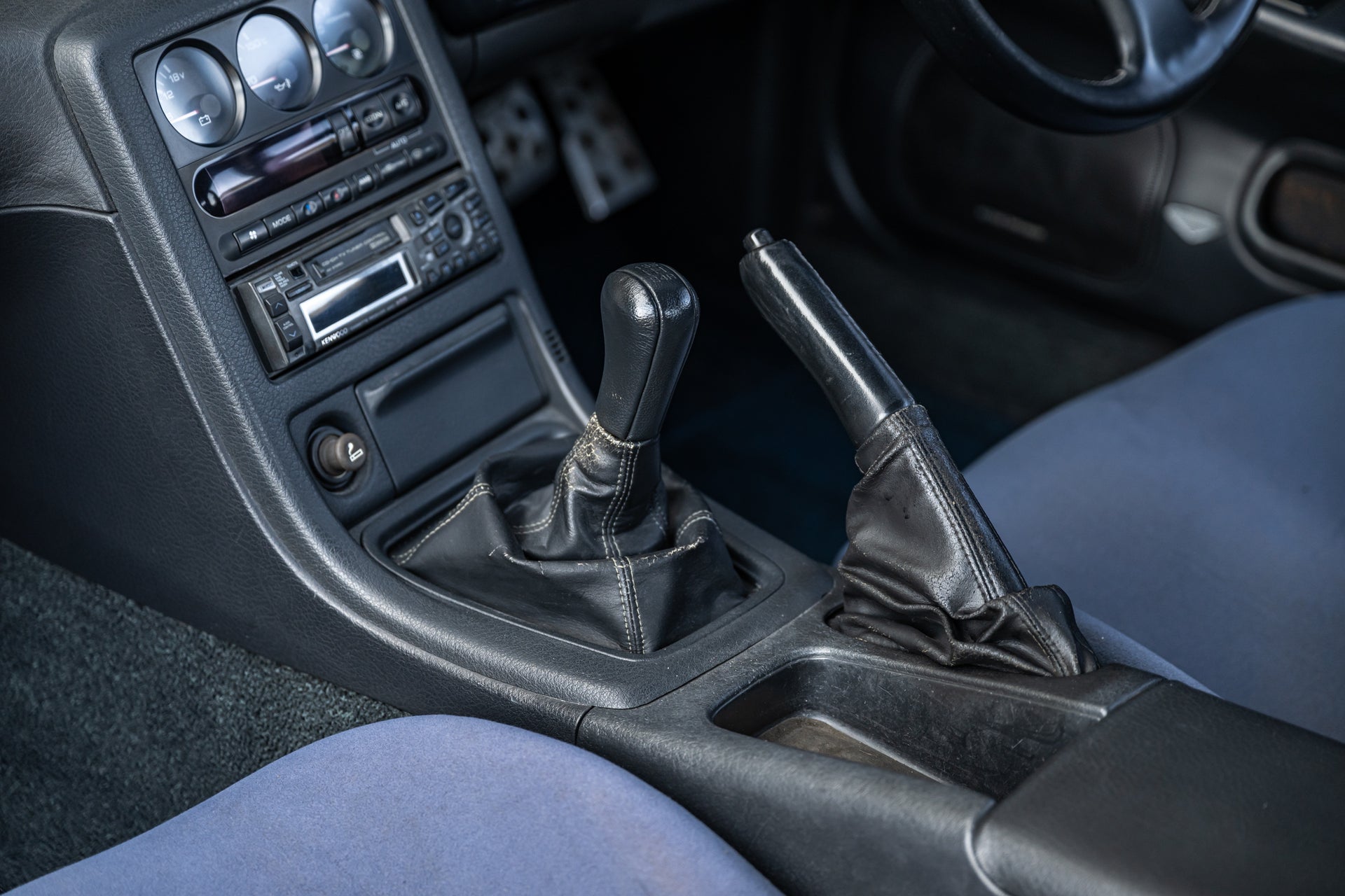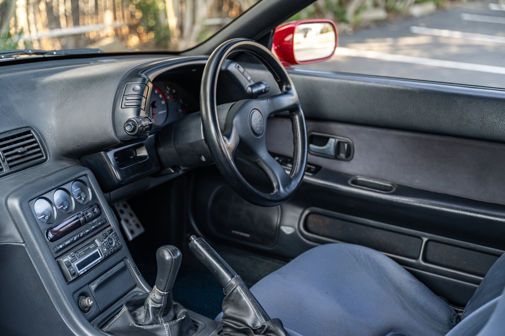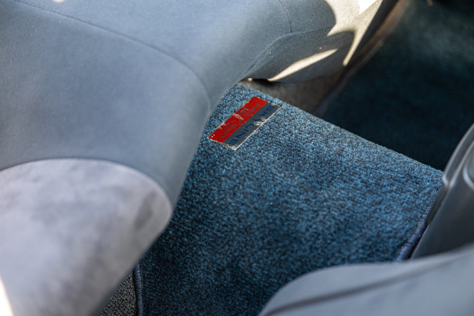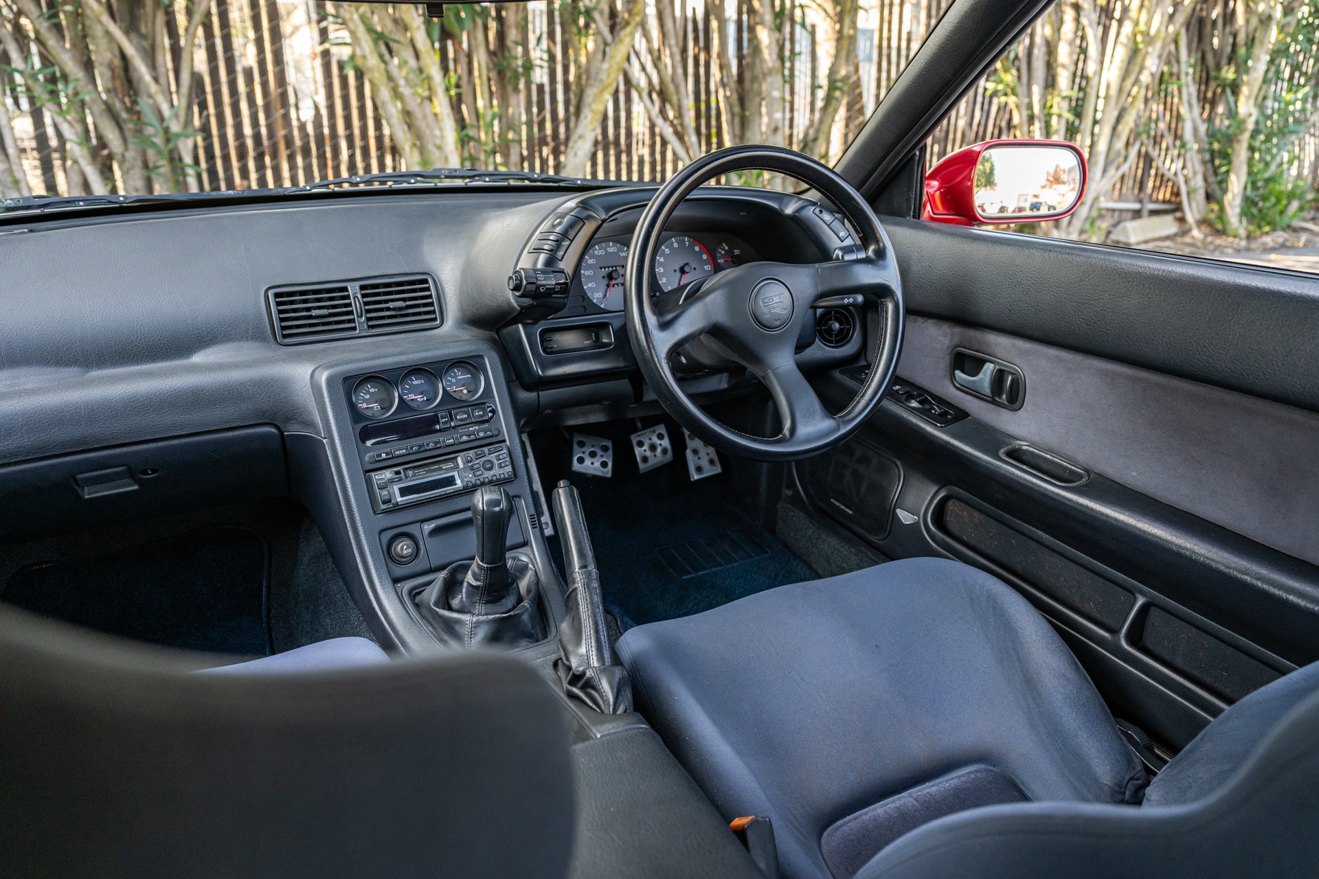 In addition to the awesome twin turbo performance, the Skyline GT-R offered a serious driving environment. The interior features a well instrumented offset cockpit style dash focused on the driver and sporty bolstered twin seats. A period correct Japanese-spec Kenwood cassette stereo is fitted to the console. Upholstery is fabric and faux suede in deep grey tones. The rear seat offers twin bucket positions and there is a practically sized trunk.