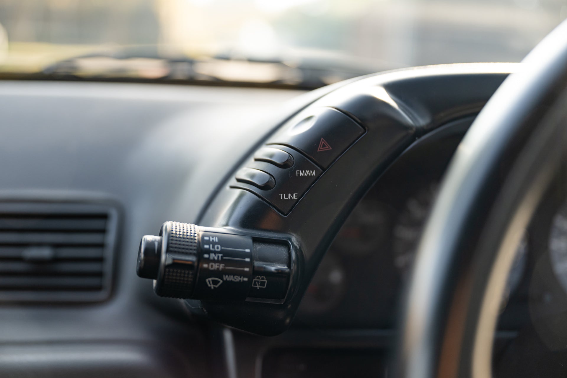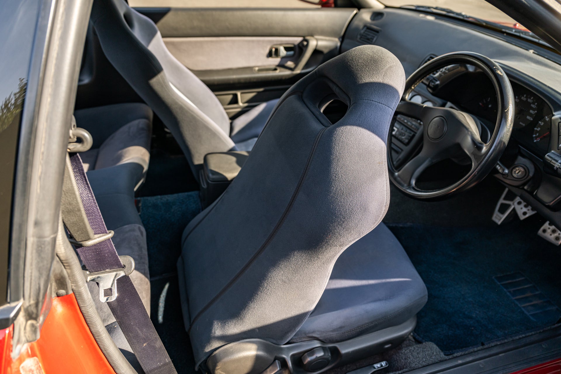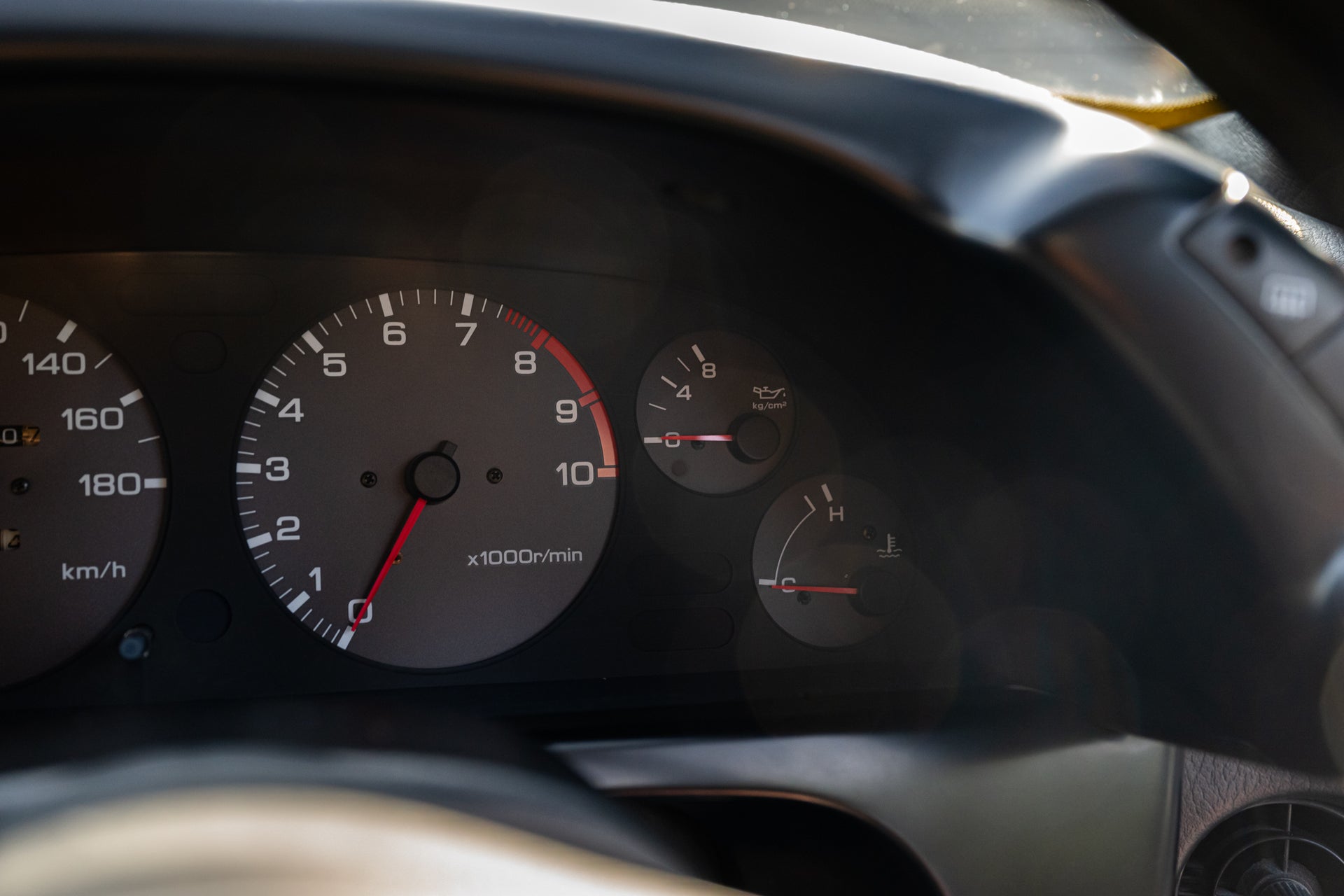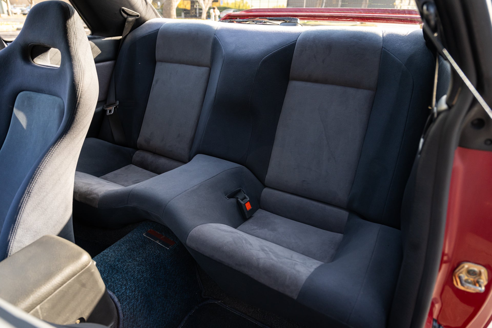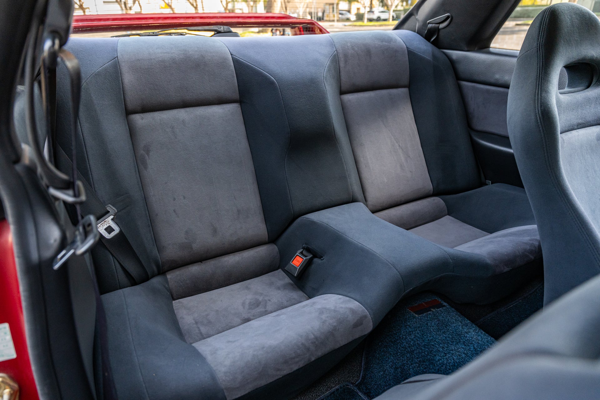 In addition to the awesome twin turbo performance, the Skyline GT-R offered a serious driving environment. The interior features a well instrumented offset cockpit style dash focused on the driver and sporty bolstered twin seats. A period correct Japanese-spec Kenwood cassette stereo is fitted to the console. Upholstery is fabric and faux suede in deep grey tones. The rear seat offers twin bucket positions and there is a practically sized trunk.