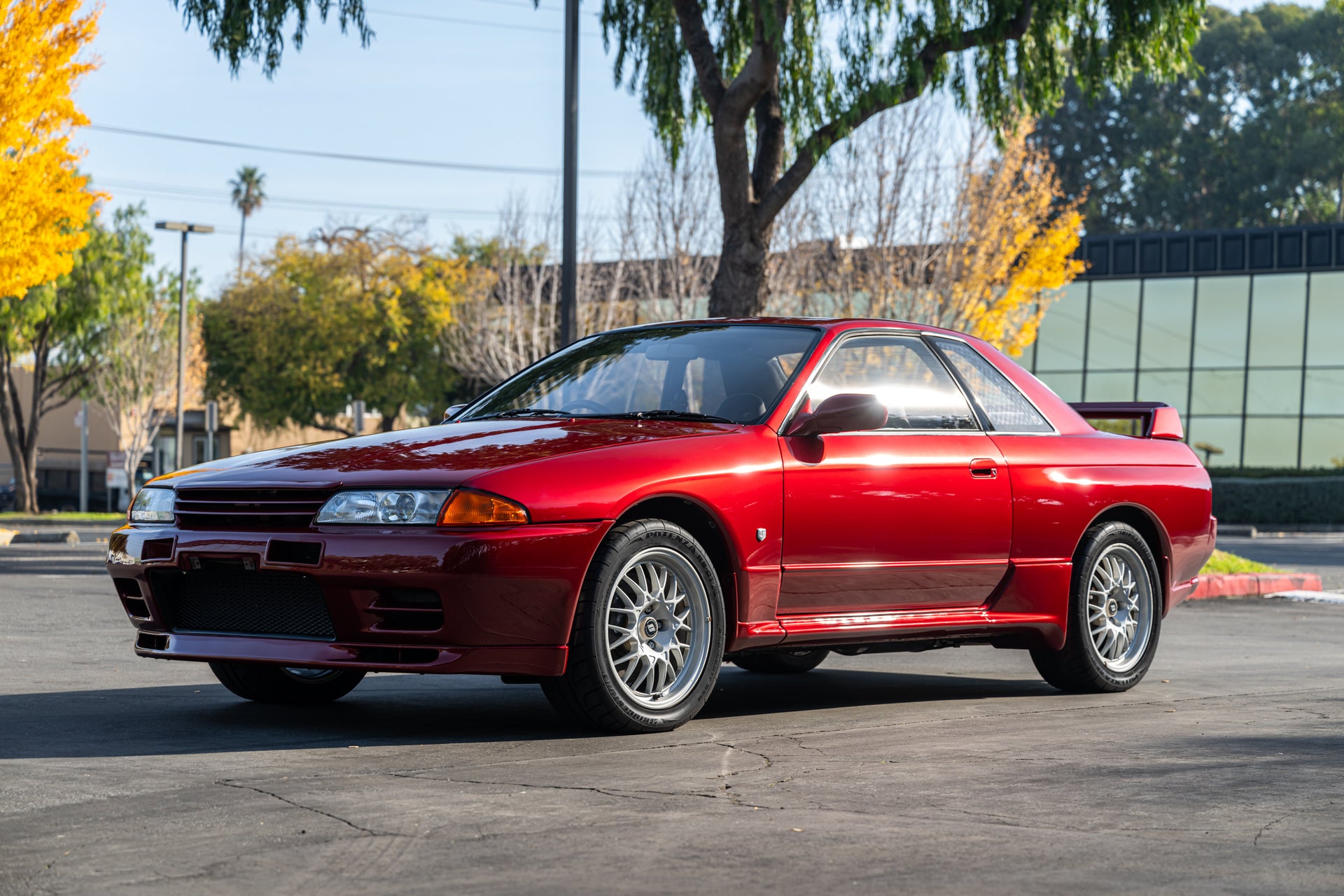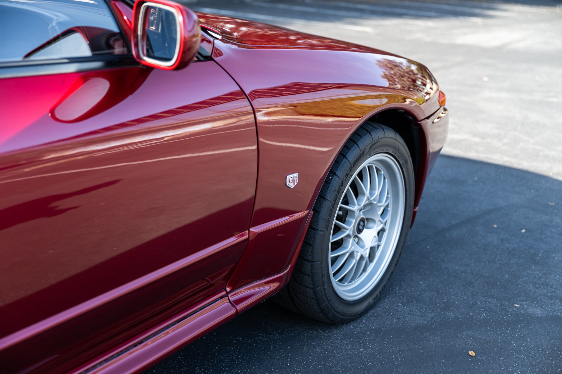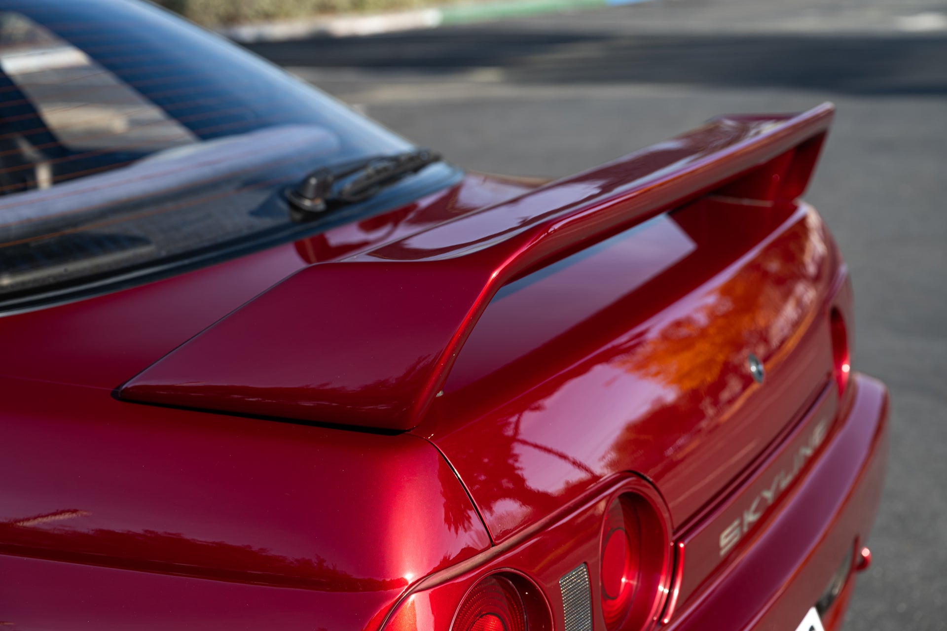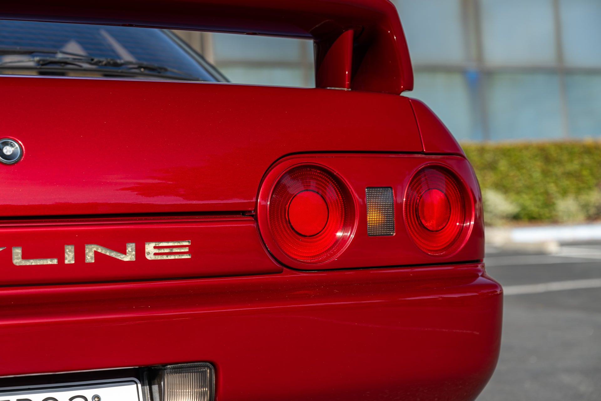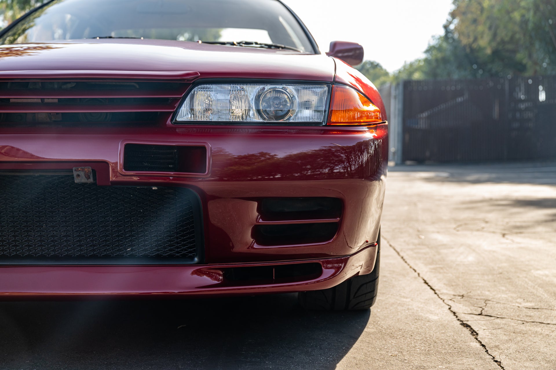 Unicorn 1994 Nissan Skyline GT-R R32 V-Spec II in rare Red Pearl Metallic (AH3) features excellent overall condition and only 21k miles (34k km) on the odometer. A special find, completely stock, no rust, full maintenance records and ready to go. This R32 V-Spec II belongs to the first generation of the Skyline GT-R series dubbed “Godzilla” (1989 -1994) and features the RB26DETT engine and classic 1990’s styling. This is a late model R-32 V-Spec that has a track-focused suspension setup with an emphasis on agility. A favorite of driving enthusiasts due to the emphasis on power and handling and the no nonsense looks and interior.