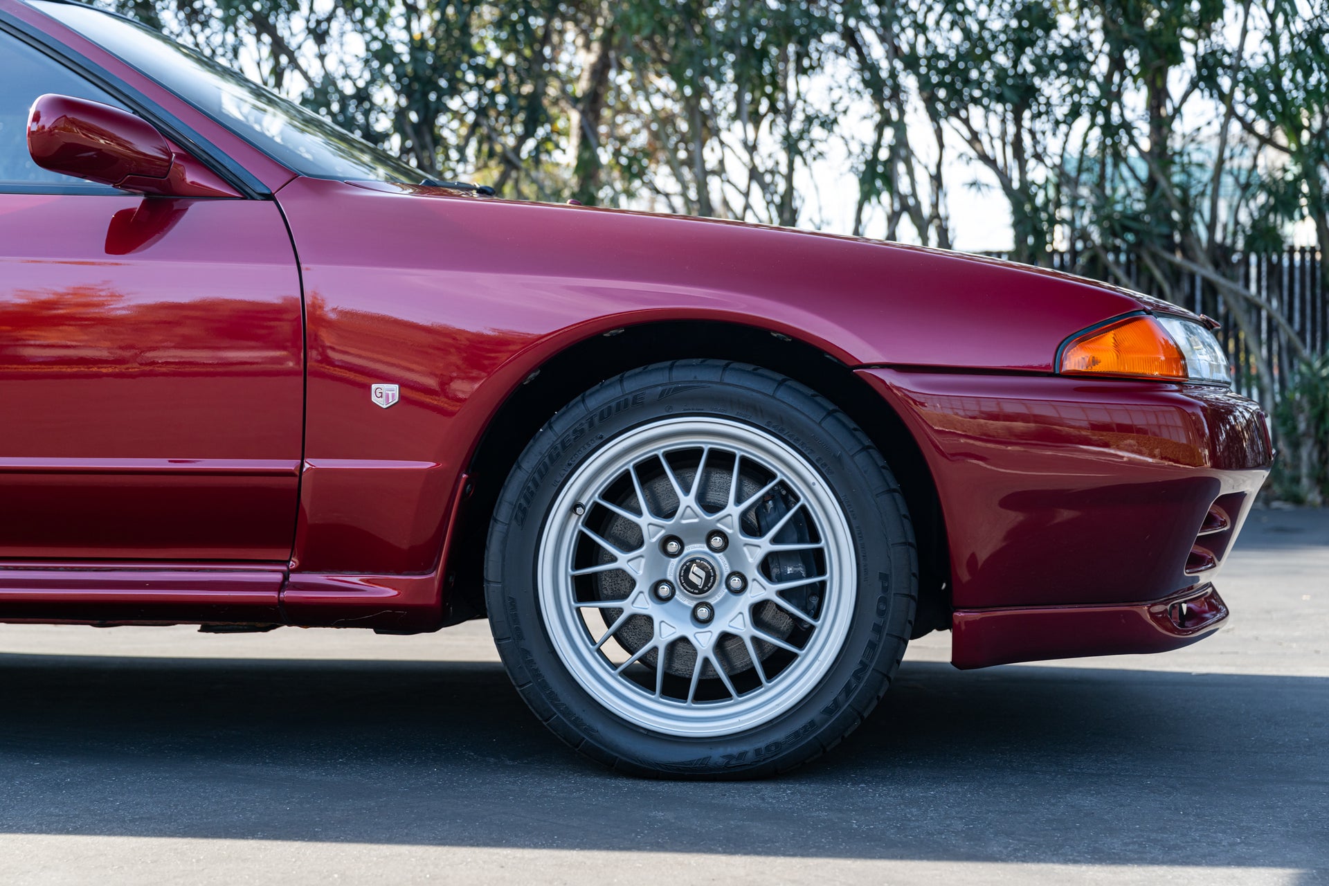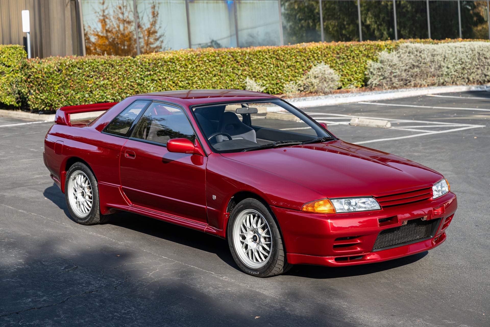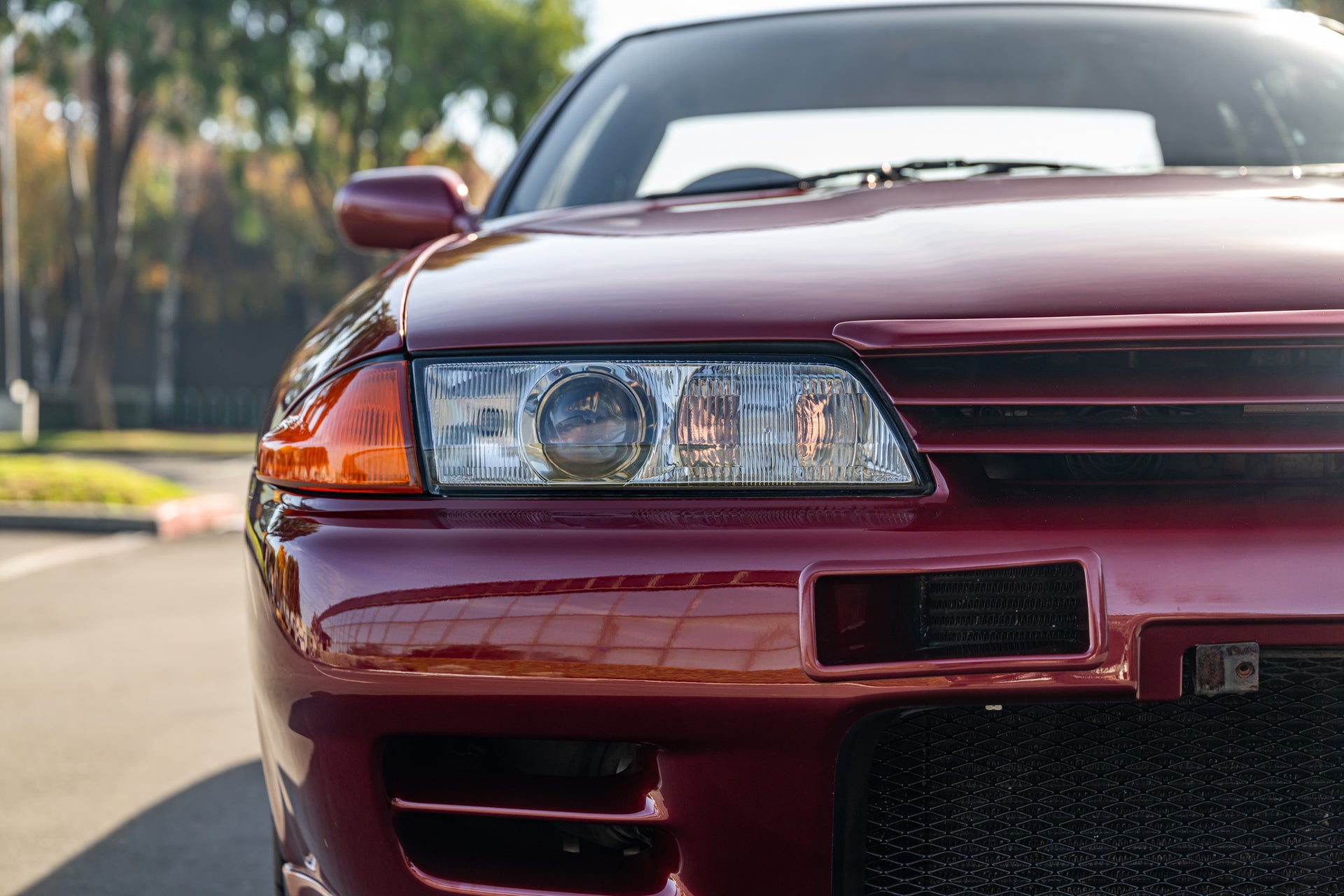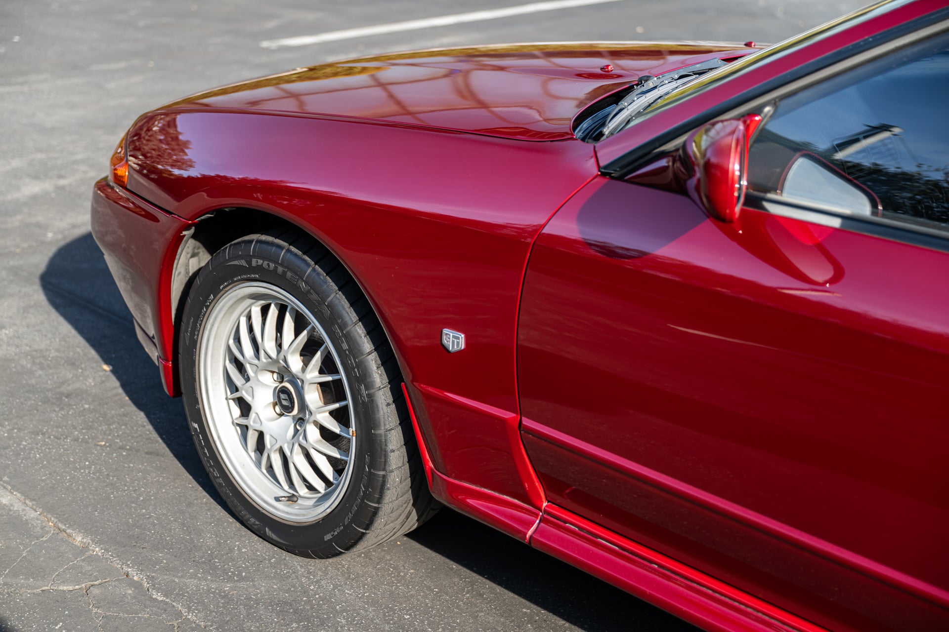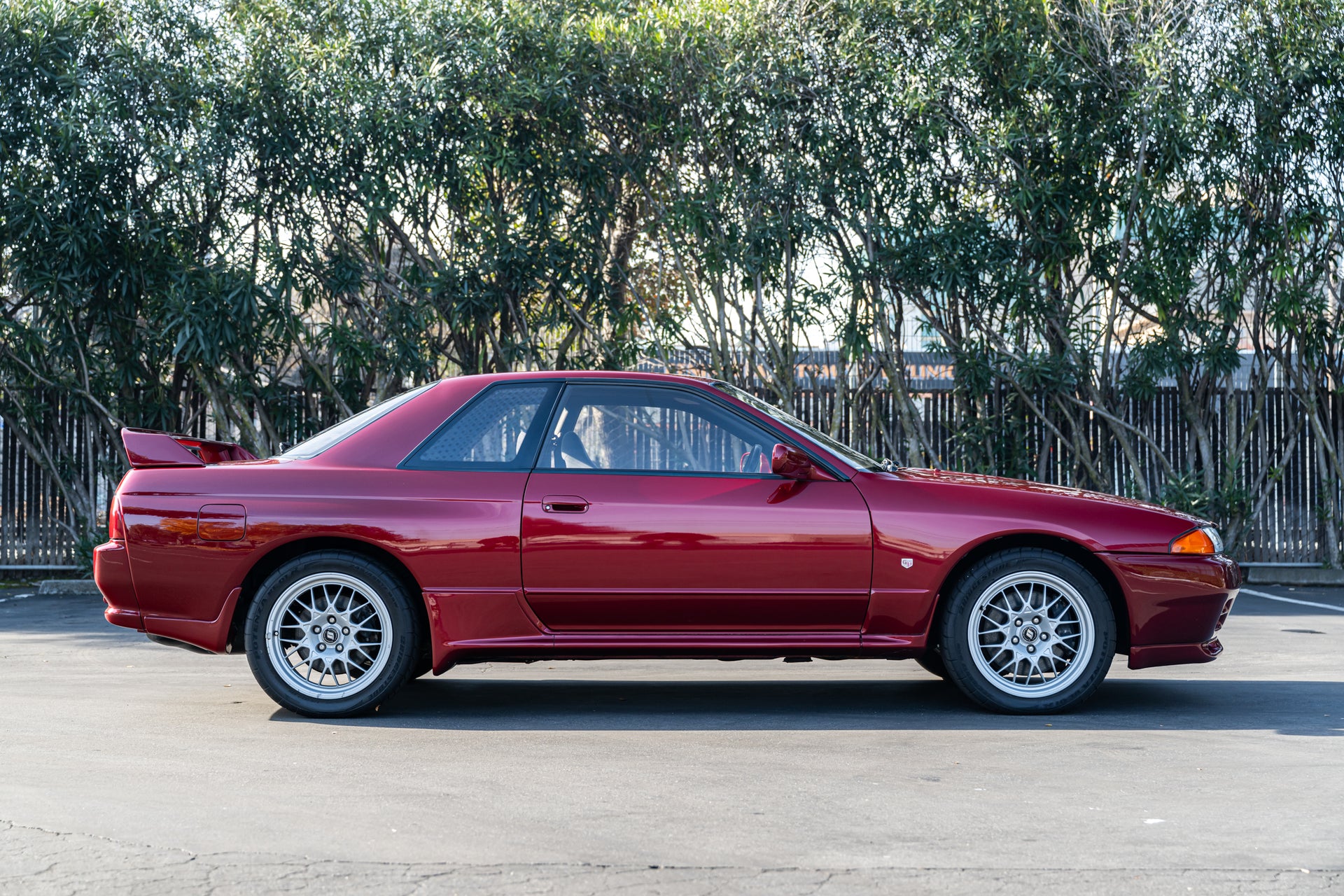 Unicorn 1994 Nissan Skyline GT-R R32 V-Spec II in rare Red Pearl Metallic (AH3) features excellent overall condition and only 21k miles (34k km) on the odometer. A special find, completely stock, no rust, full maintenance records and ready to go. This R32 V-Spec II belongs to the first generation of the Skyline GT-R series dubbed “Godzilla” (1989 -1994) and features the RB26DETT engine and classic 1990’s styling. This is a late model R-32 V-Spec that has a track-focused suspension setup with an emphasis on agility. A favorite of driving enthusiasts due to the emphasis on power and handling and the no nonsense looks and interior.