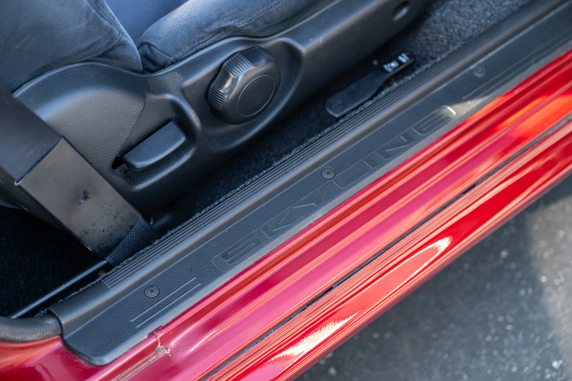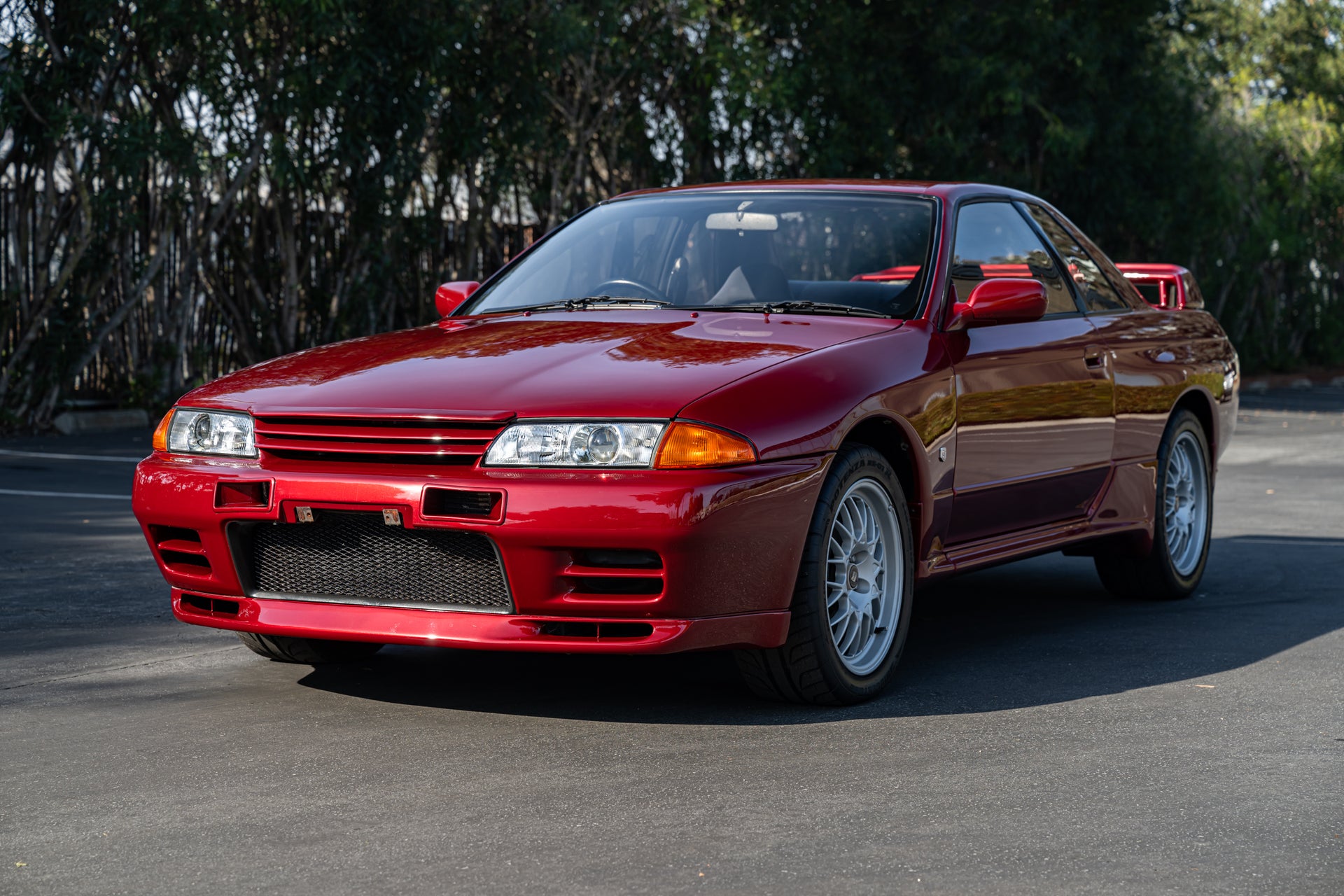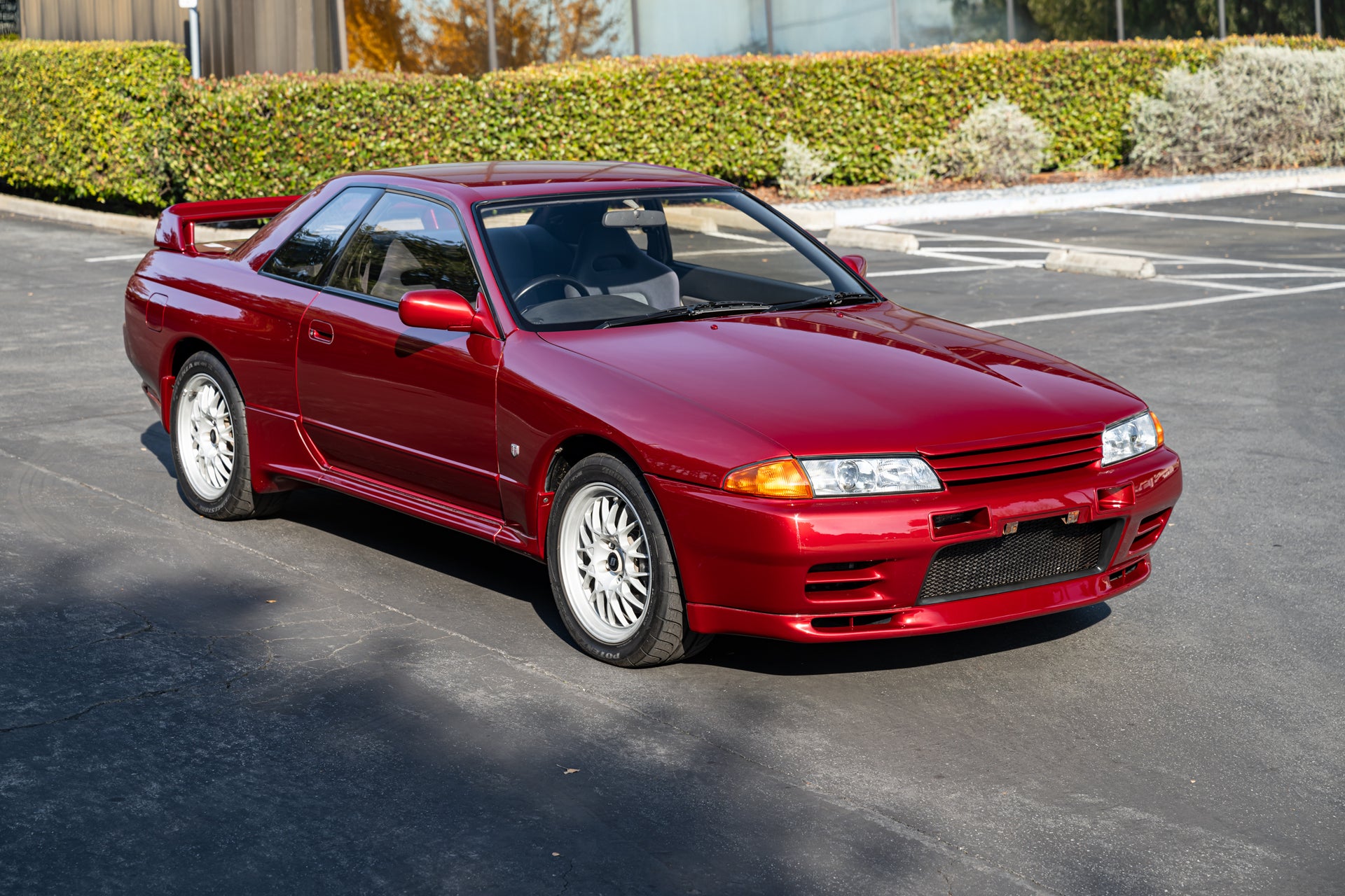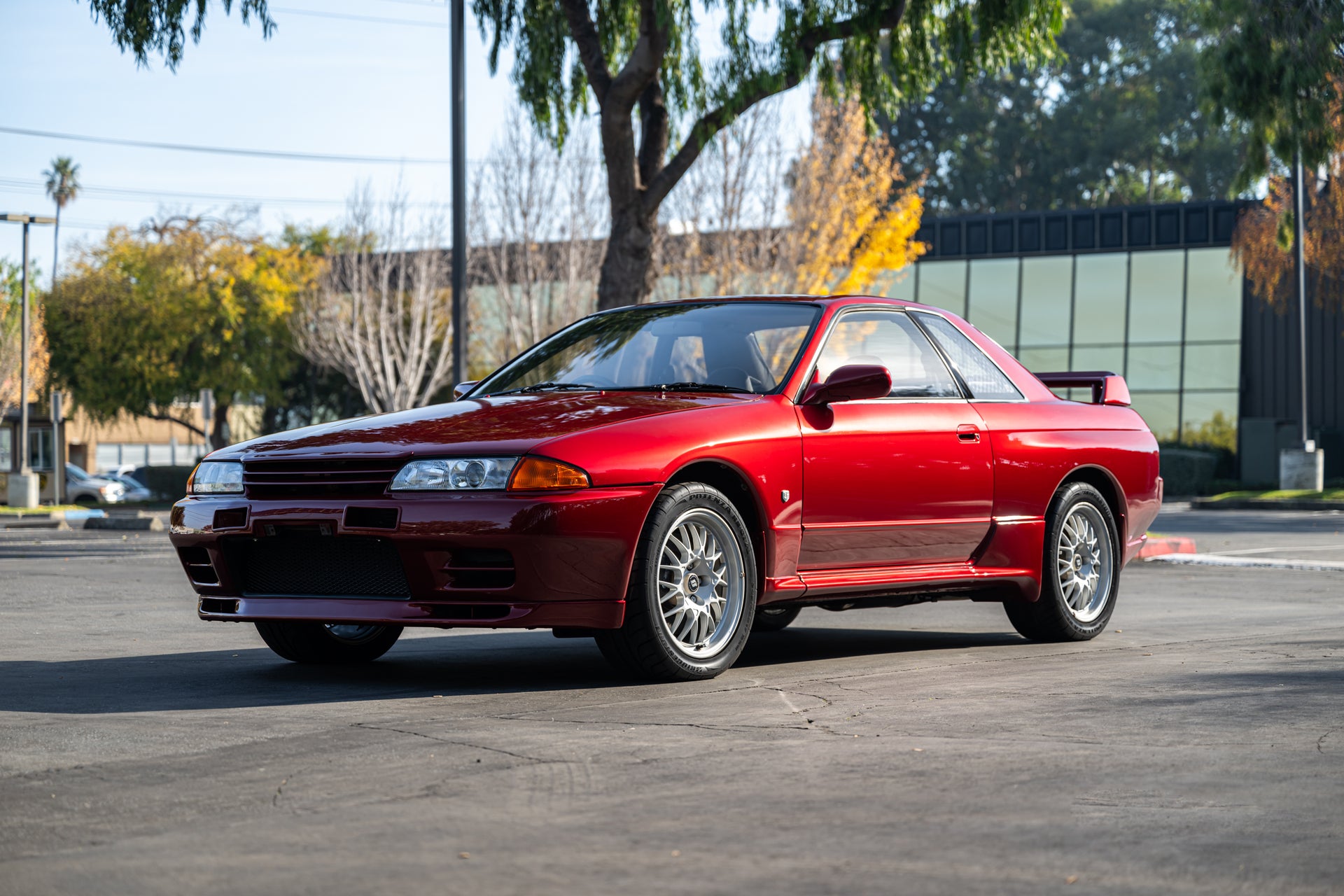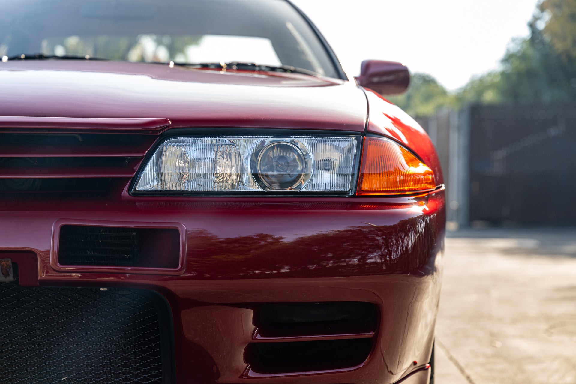Unicorn 1994 Nissan Skyline GT-R R32 V-Spec II in rare Red Pearl Metallic (AH3) features excellent overall condition and only 21k miles (34k km) on the odometer. A special find, completely stock, no rust, full maintenance records and ready to go. This R32 V-Spec II belongs to the first generation of the Skyline GT-R series dubbed “Godzilla” (1989 -1994) and features the RB26DETT engine and classic 1990’s styling. This is a late model R-32 V-Spec that has a track-focused suspension setup with an emphasis on agility. A favorite of driving enthusiasts due to the emphasis on power and handling and the no nonsense looks and interior.