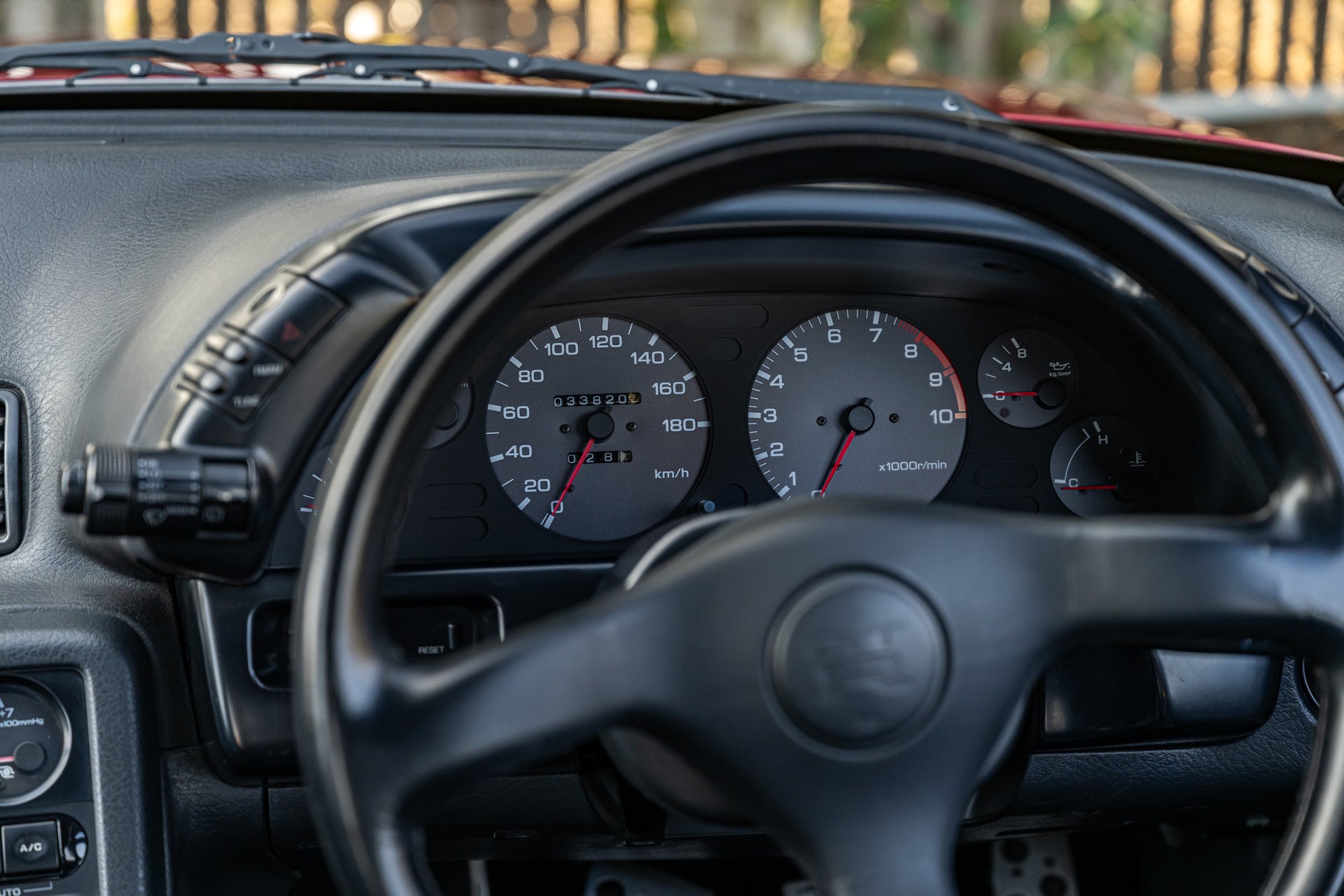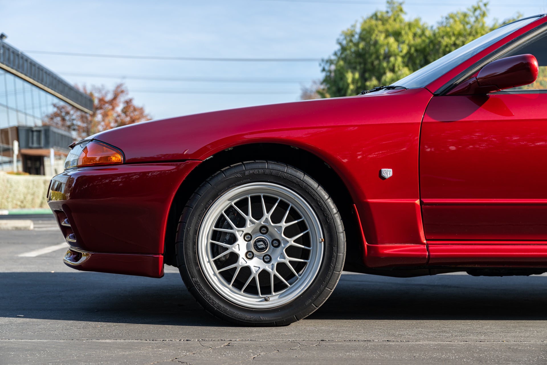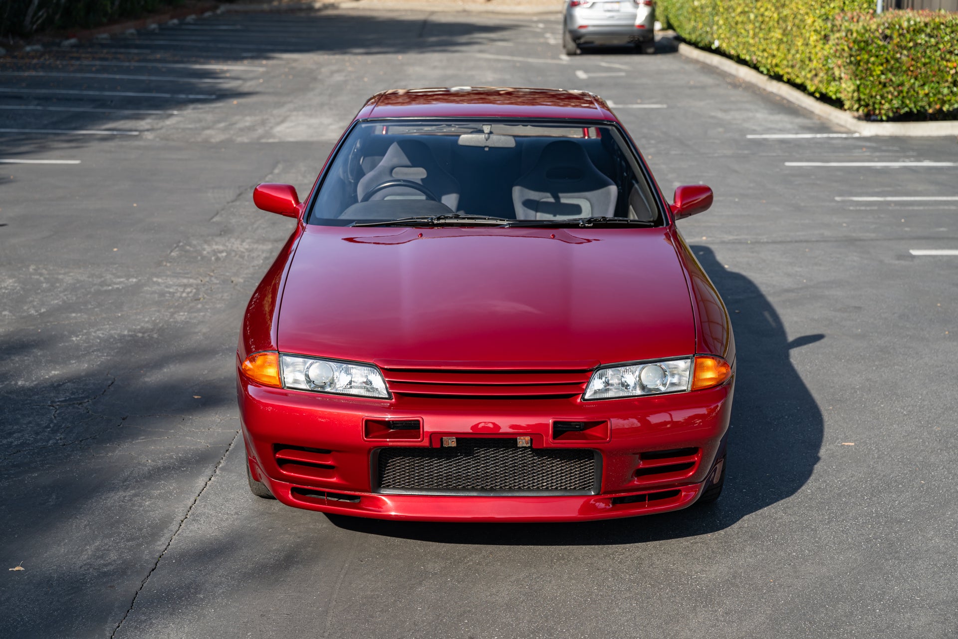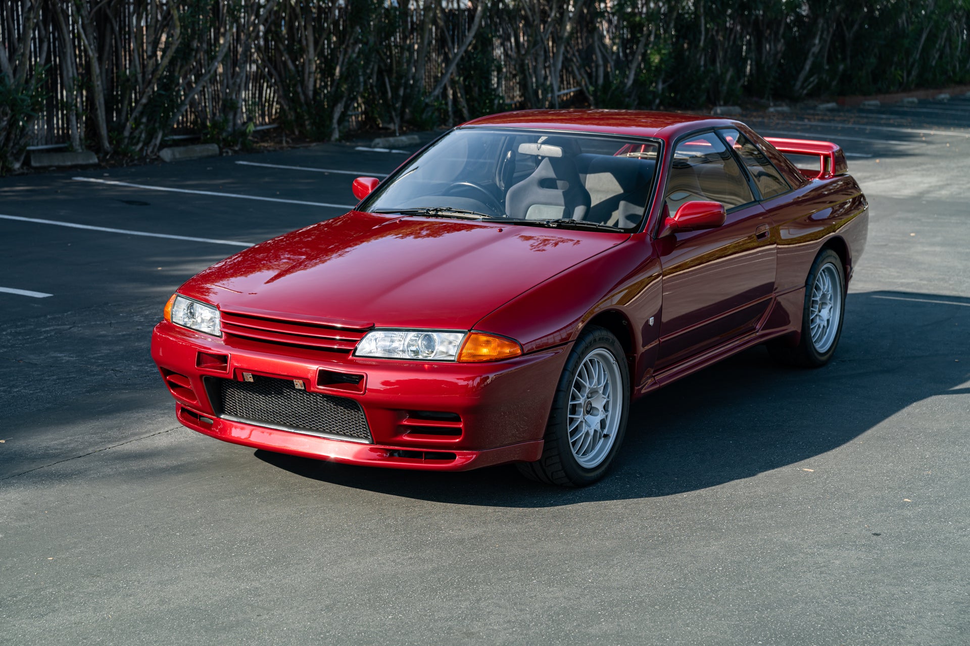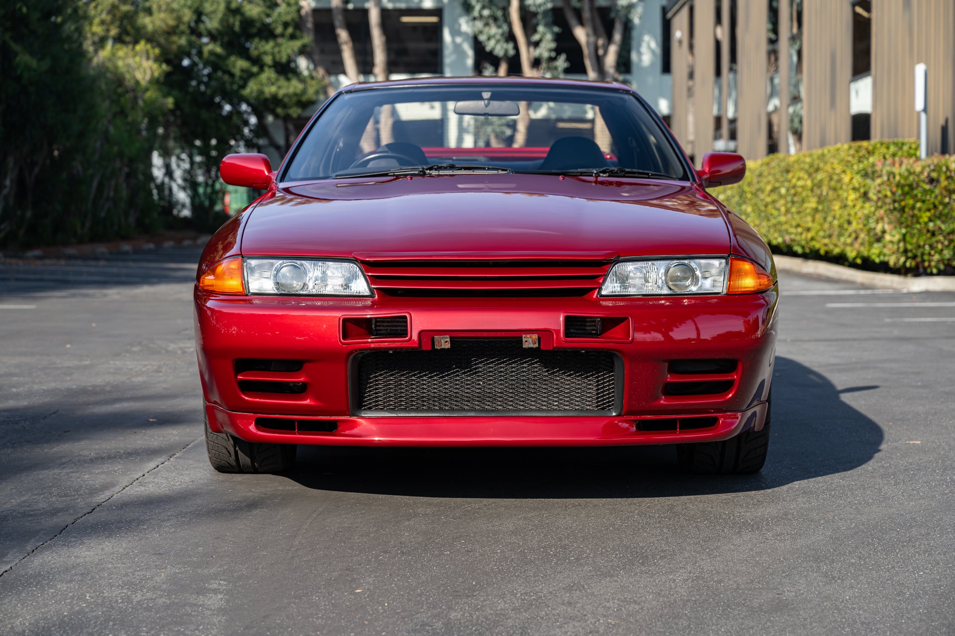 Unicorn 1994 Nissan Skyline GT-R R32 V-Spec II in rare Red Pearl Metallic (AH3) features excellent overall condition and only 21k miles (34k km) on the odometer. A special find, completely stock, no rust, full maintenance records and ready to go. This R32 V-Spec II belongs to the first generation of the Skyline GT-R series dubbed “Godzilla” (1989 -1994) and features the RB26DETT engine and classic 1990’s styling. This is a late model R-32 V-Spec that has a track-focused suspension setup with an emphasis on agility. A favorite of driving enthusiasts due to the emphasis on power and handling and the no nonsense looks and interior.