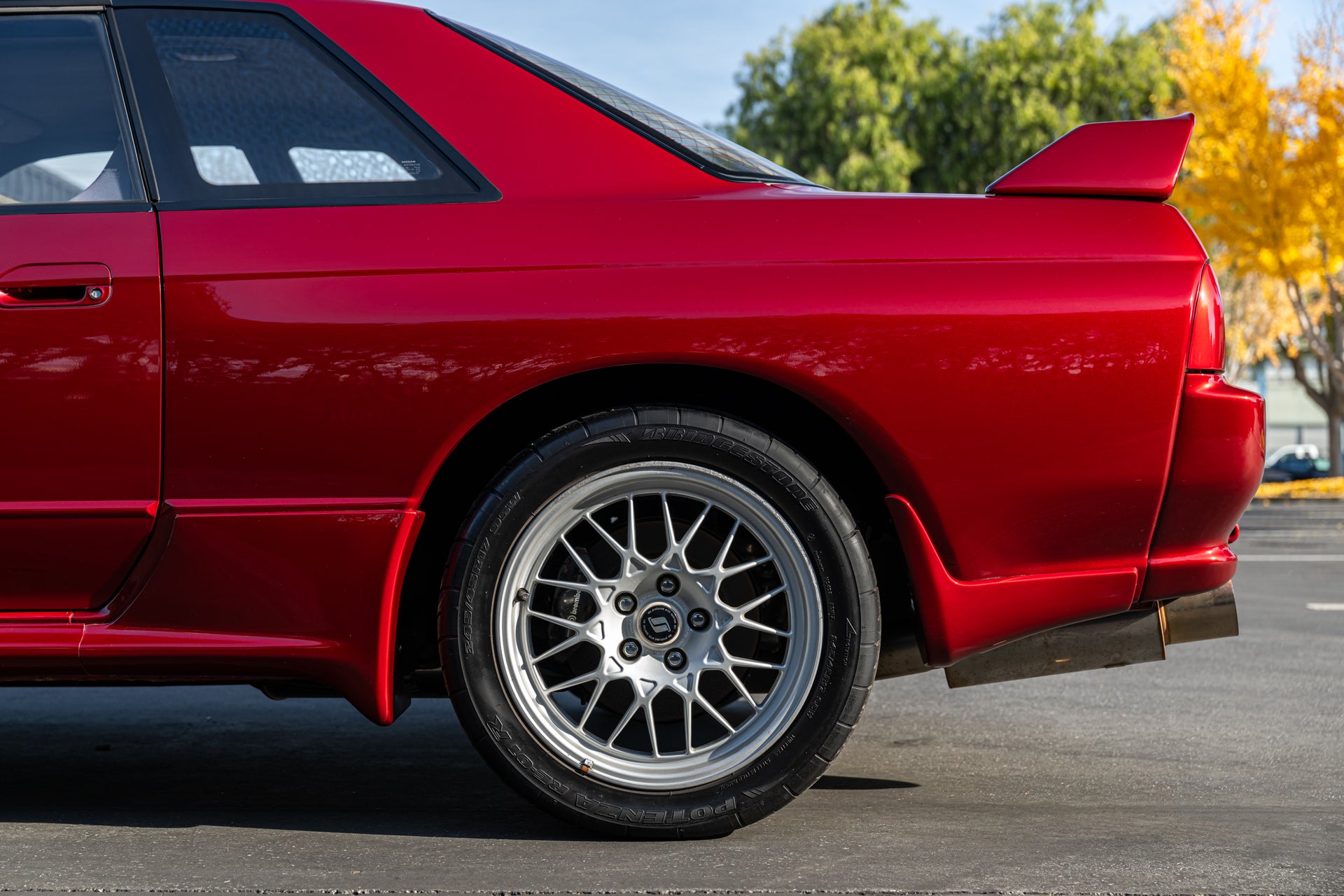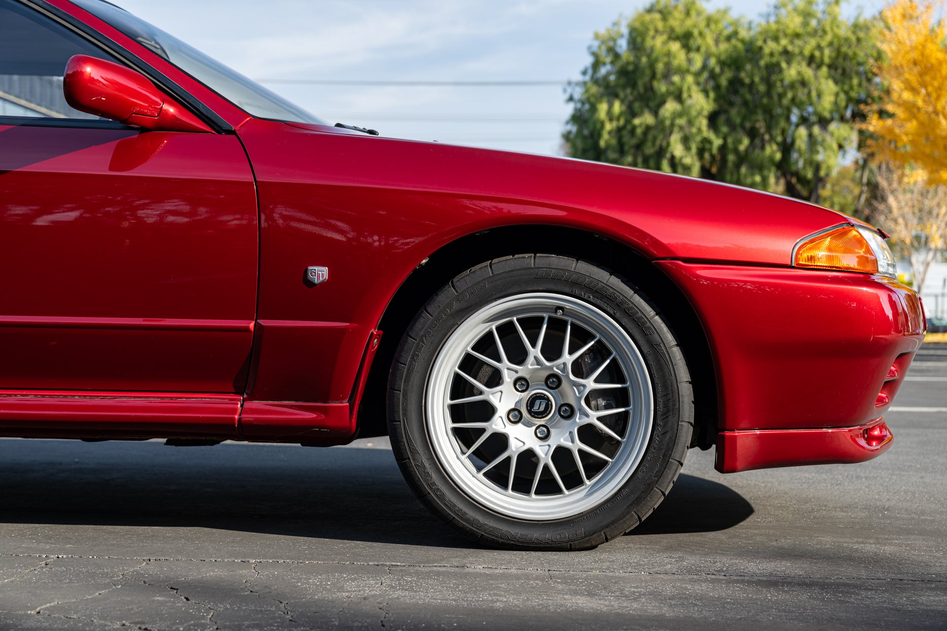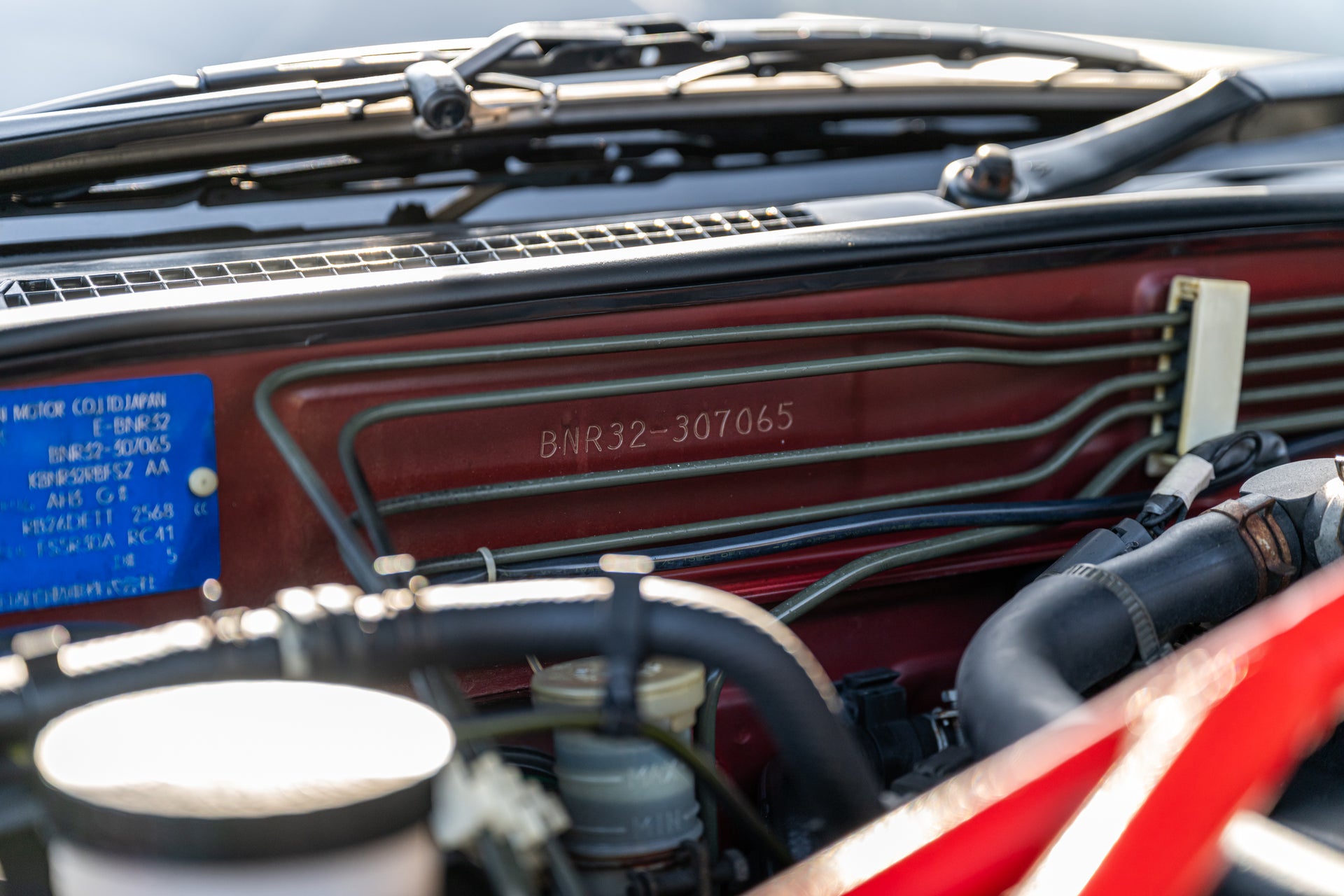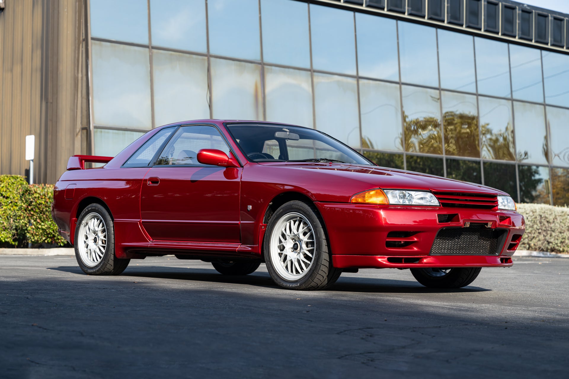 Unicorn 1994 Nissan Skyline GT-R R32 V-Spec II in rare Red Pearl Metallic (AH3) features excellent overall condition and only 21k miles (34k km) on the odometer. A special find, completely stock, no rust, full maintenance records and ready to go. This R32 V-Spec II belongs to the first generation of the Skyline GT-R series dubbed “Godzilla” (1989 -1994) and features the RB26DETT engine and classic 1990’s styling. This is a late model R-32 V-Spec that has a track-focused suspension setup with an emphasis on agility. A favorite of driving enthusiasts due to the emphasis on power and handling and the no nonsense looks and interior.