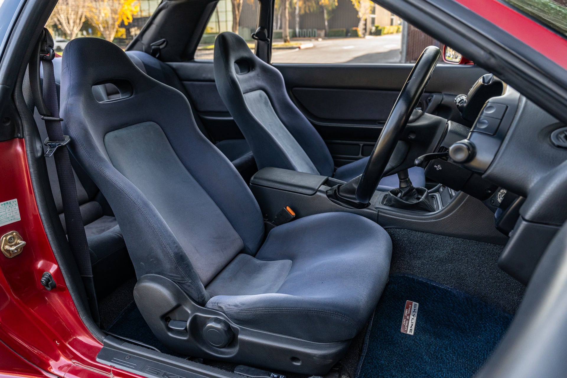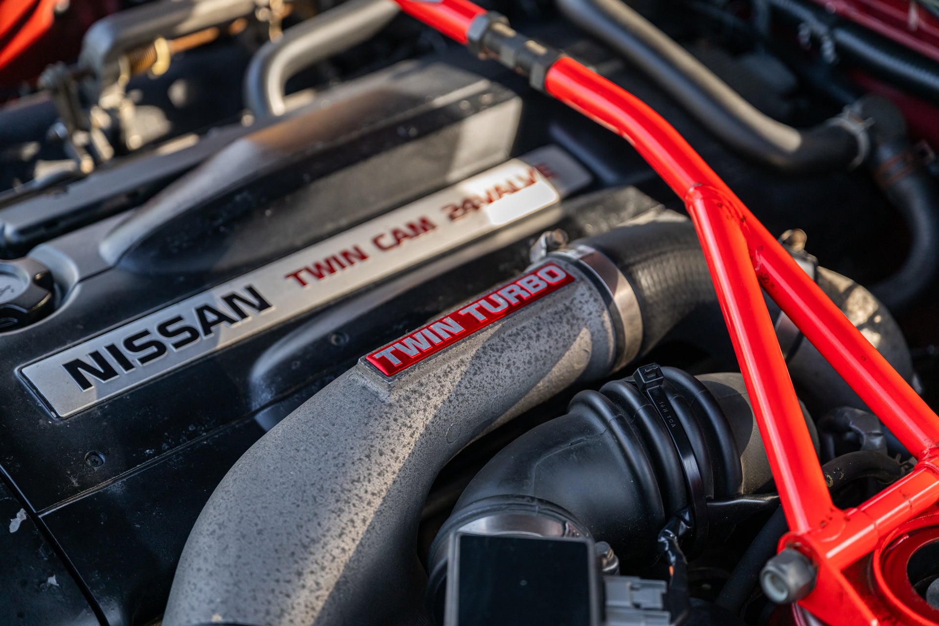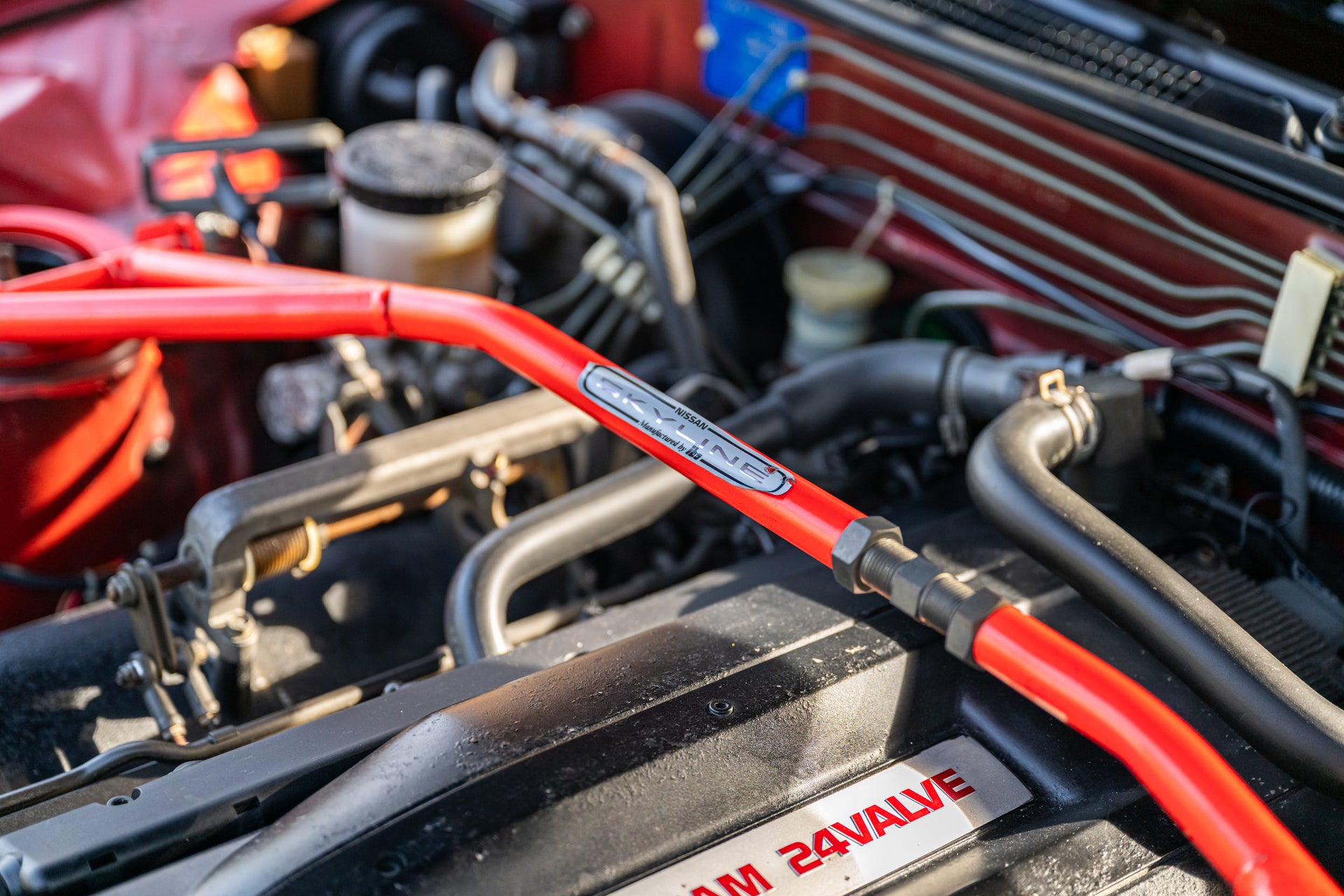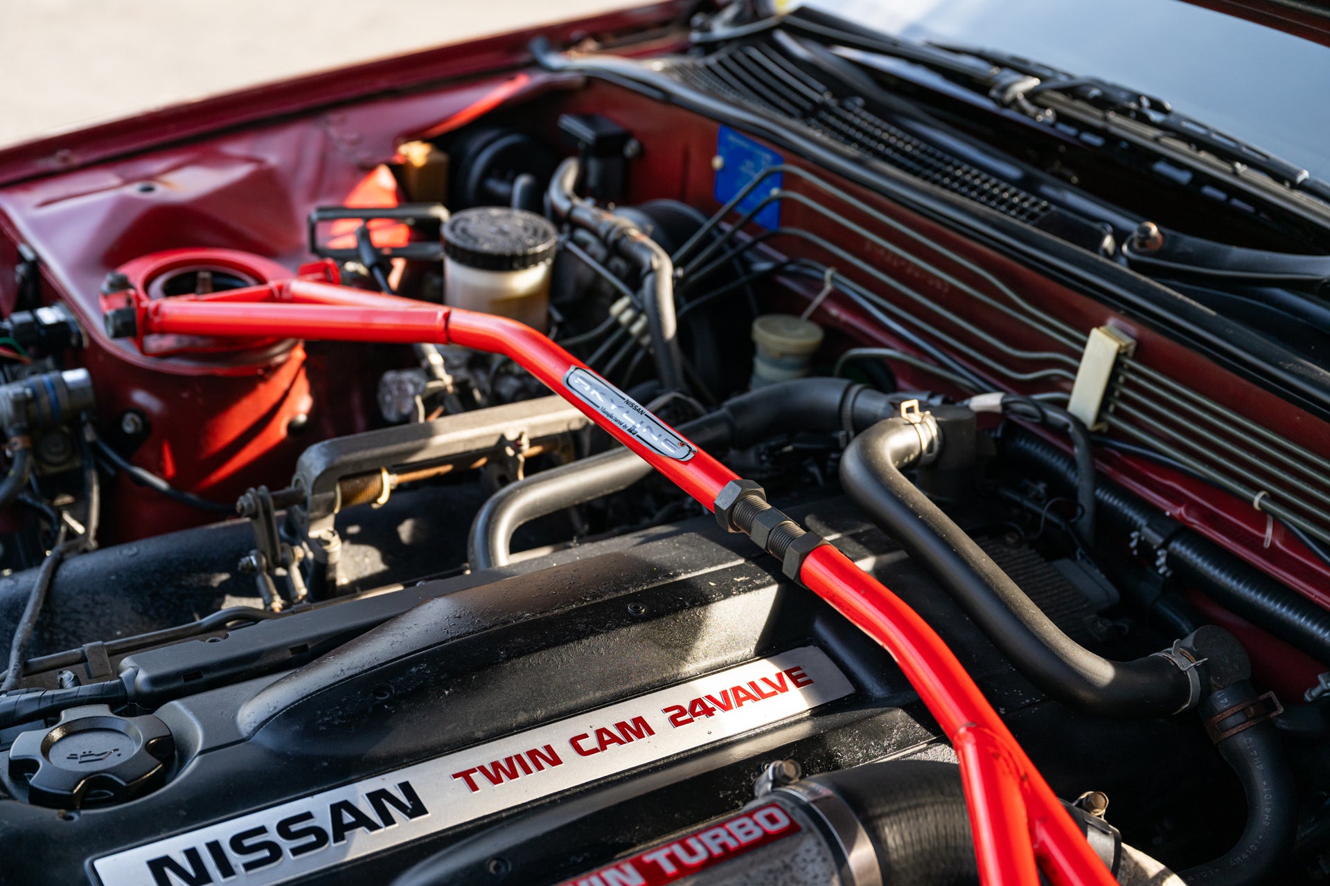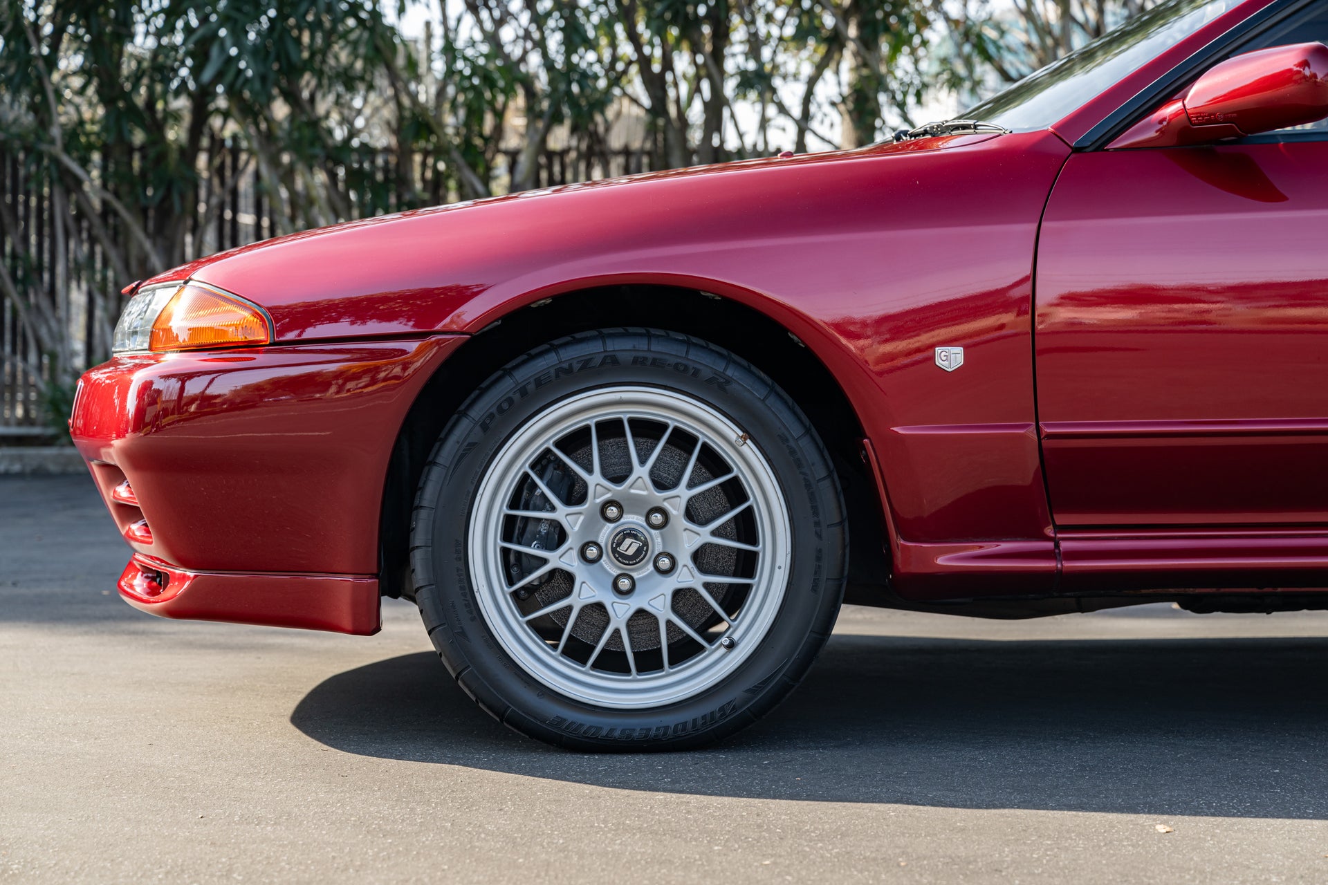 Unicorn 1994 Nissan Skyline GT-R R32 V-Spec II in rare Red Pearl Metallic (AH3) features excellent overall condition and only 21k miles (34k km) on the odometer. A special find, completely stock, no rust, full maintenance records and ready to go. This R32 V-Spec II belongs to the first generation of the Skyline GT-R series dubbed “Godzilla” (1989 -1994) and features the RB26DETT engine and classic 1990’s styling. This is a late model R-32 V-Spec that has a track-focused suspension setup with an emphasis on agility. A favorite of driving enthusiasts due to the emphasis on power and handling and the no nonsense looks and interior.