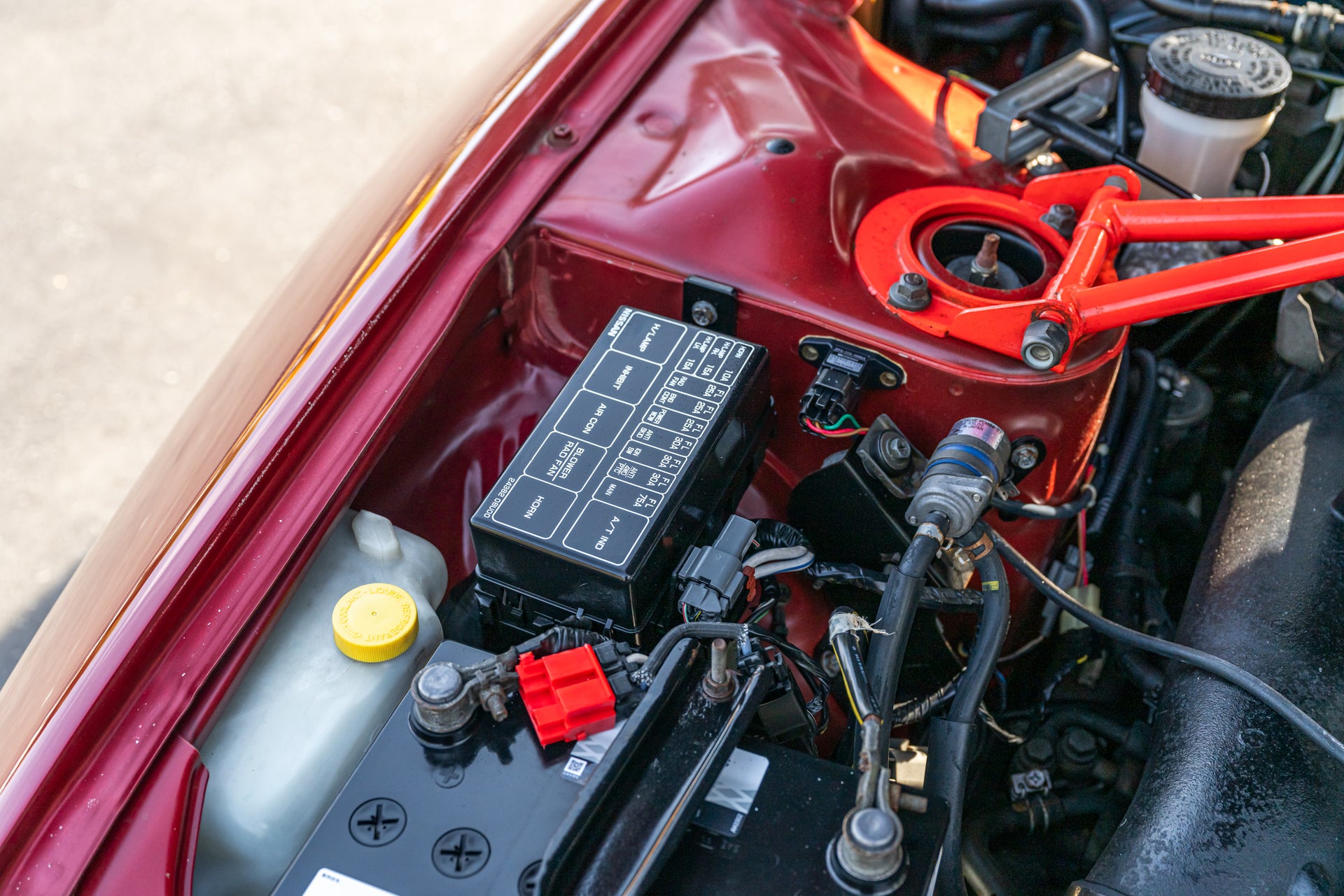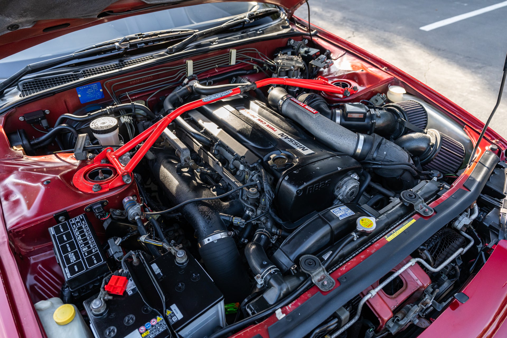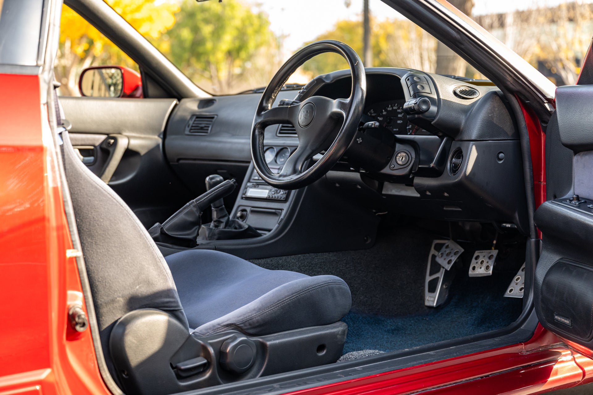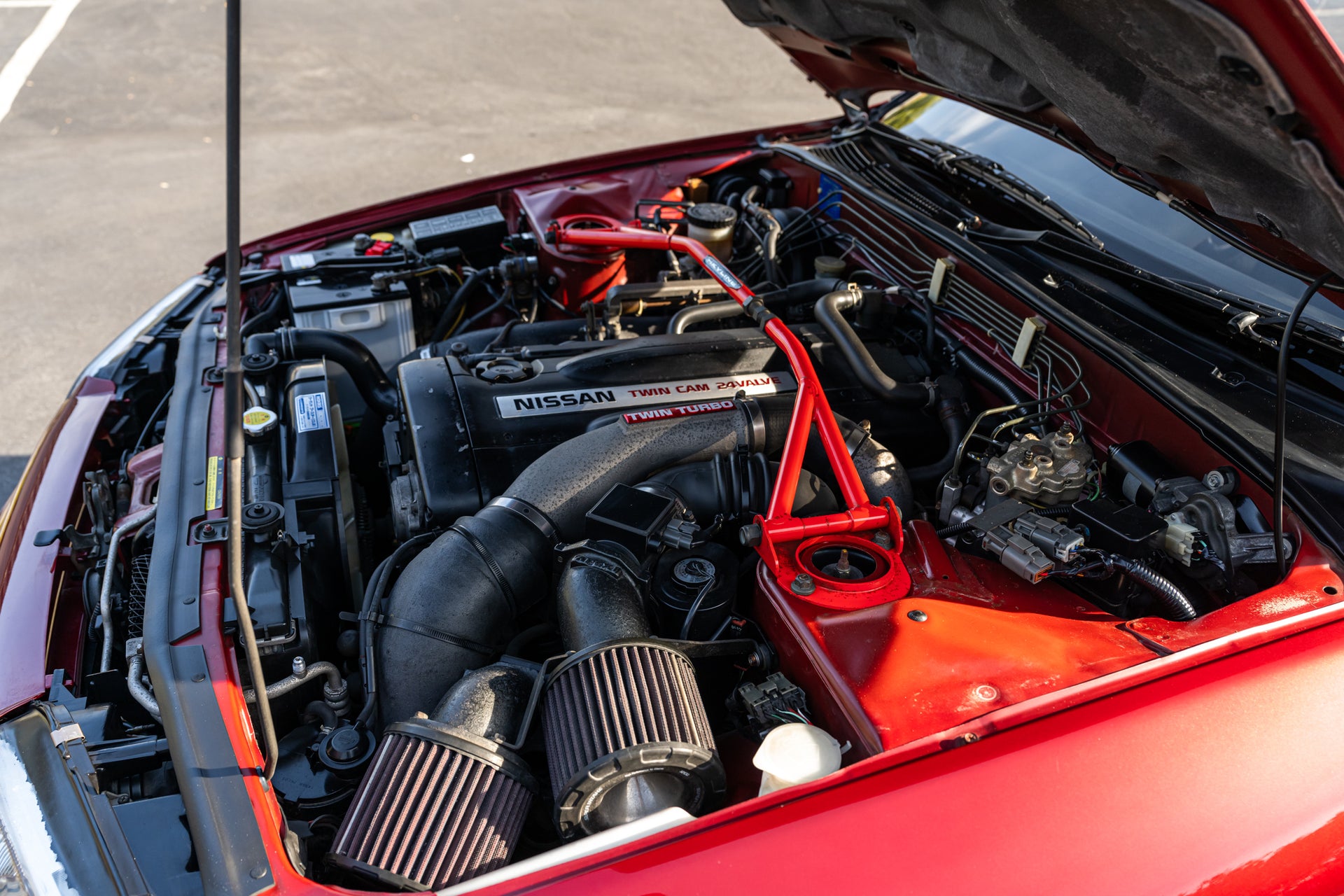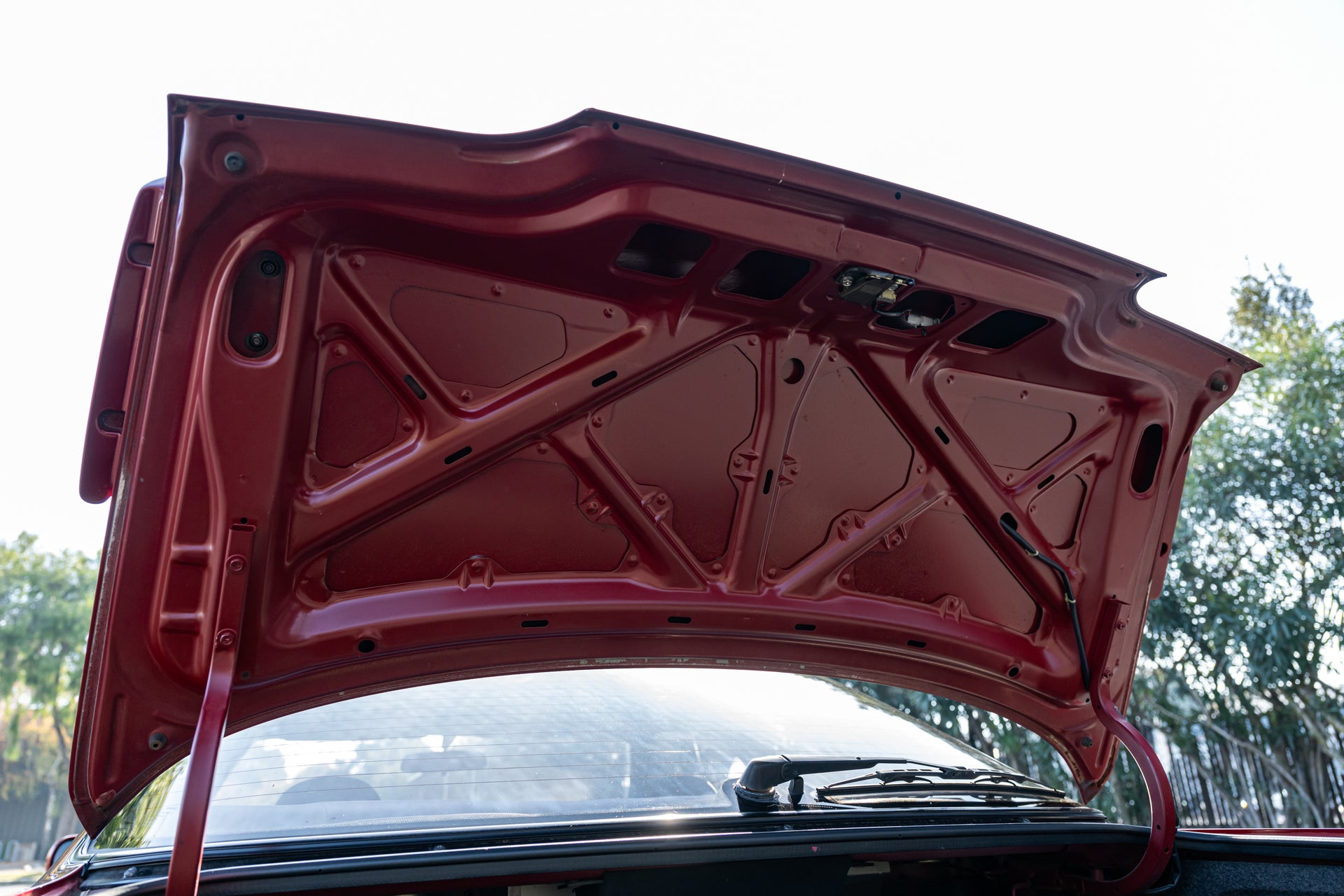 Unicorn 1994 Nissan Skyline GT-R R32 V-Spec II in rare Red Pearl Metallic (AH3) features excellent overall condition and only 21k miles (34k km) on the odometer. A special find, completely stock, no rust, full maintenance records and ready to go. This R32 V-Spec II belongs to the first generation of the Skyline GT-R series dubbed “Godzilla” (1989 -1994) and features the RB26DETT engine and classic 1990’s styling. This is a late model R-32 V-Spec that has a track-focused suspension setup with an emphasis on agility. A favorite of driving enthusiasts due to the emphasis on power and handling and the no nonsense looks and interior.