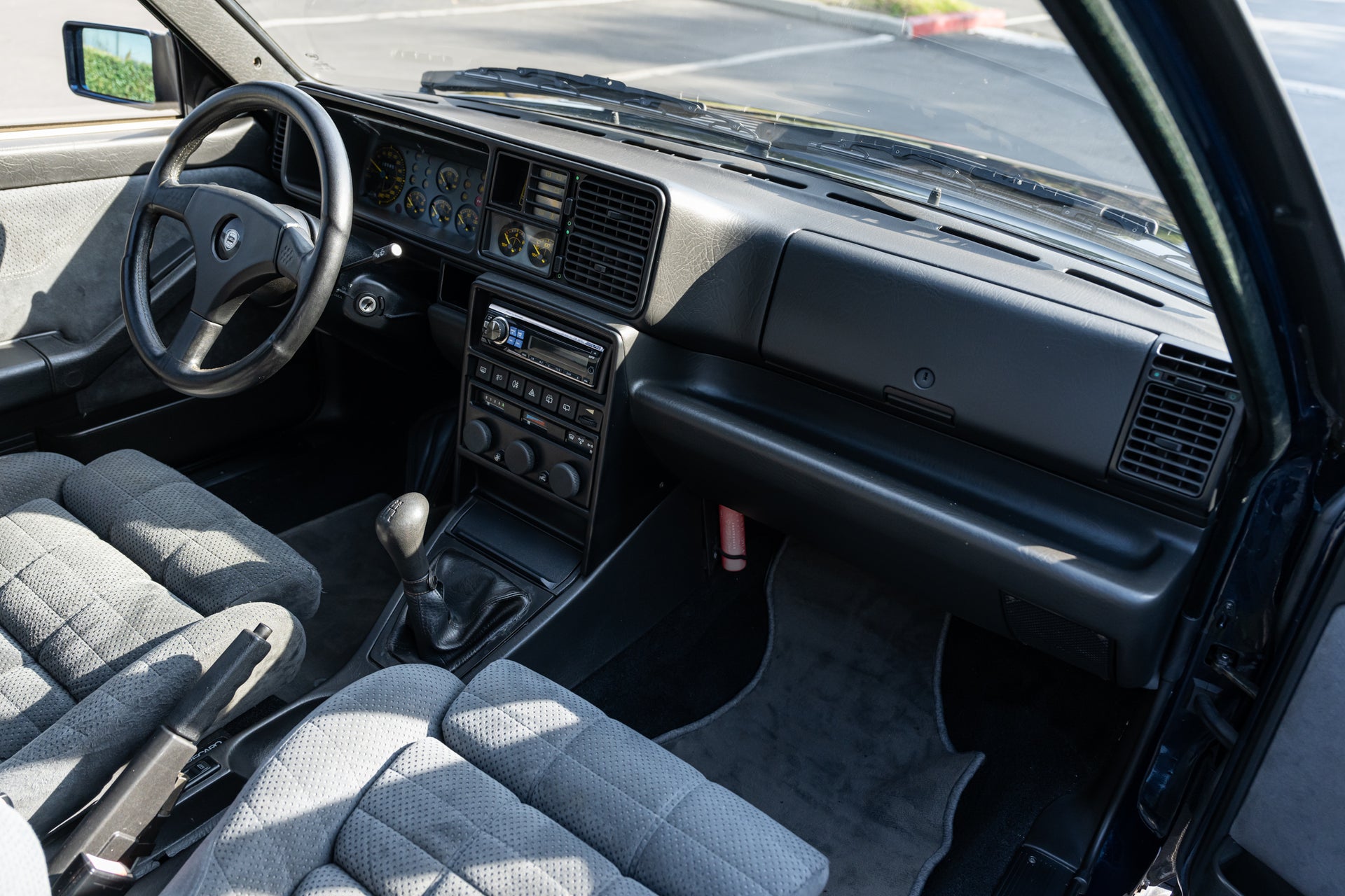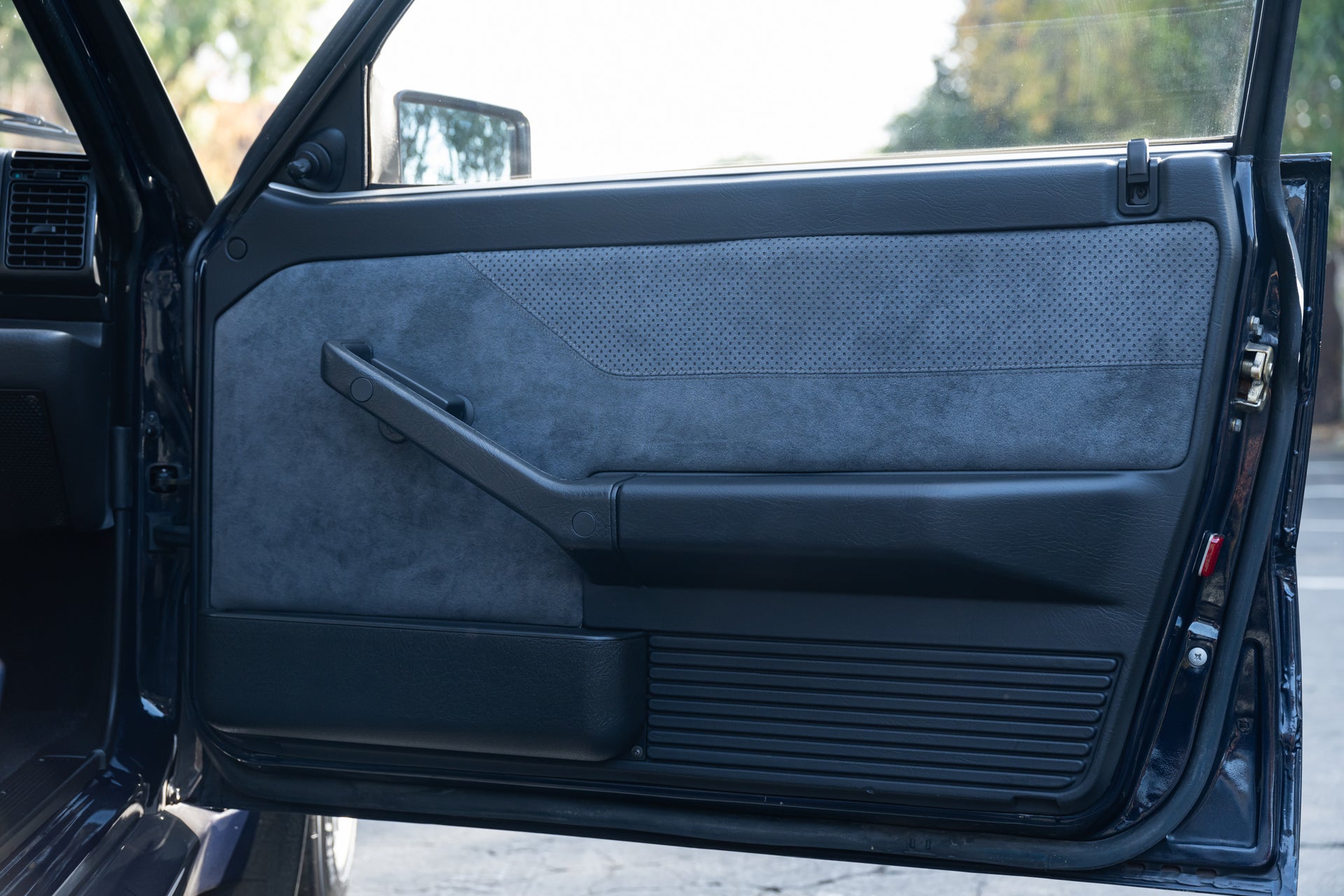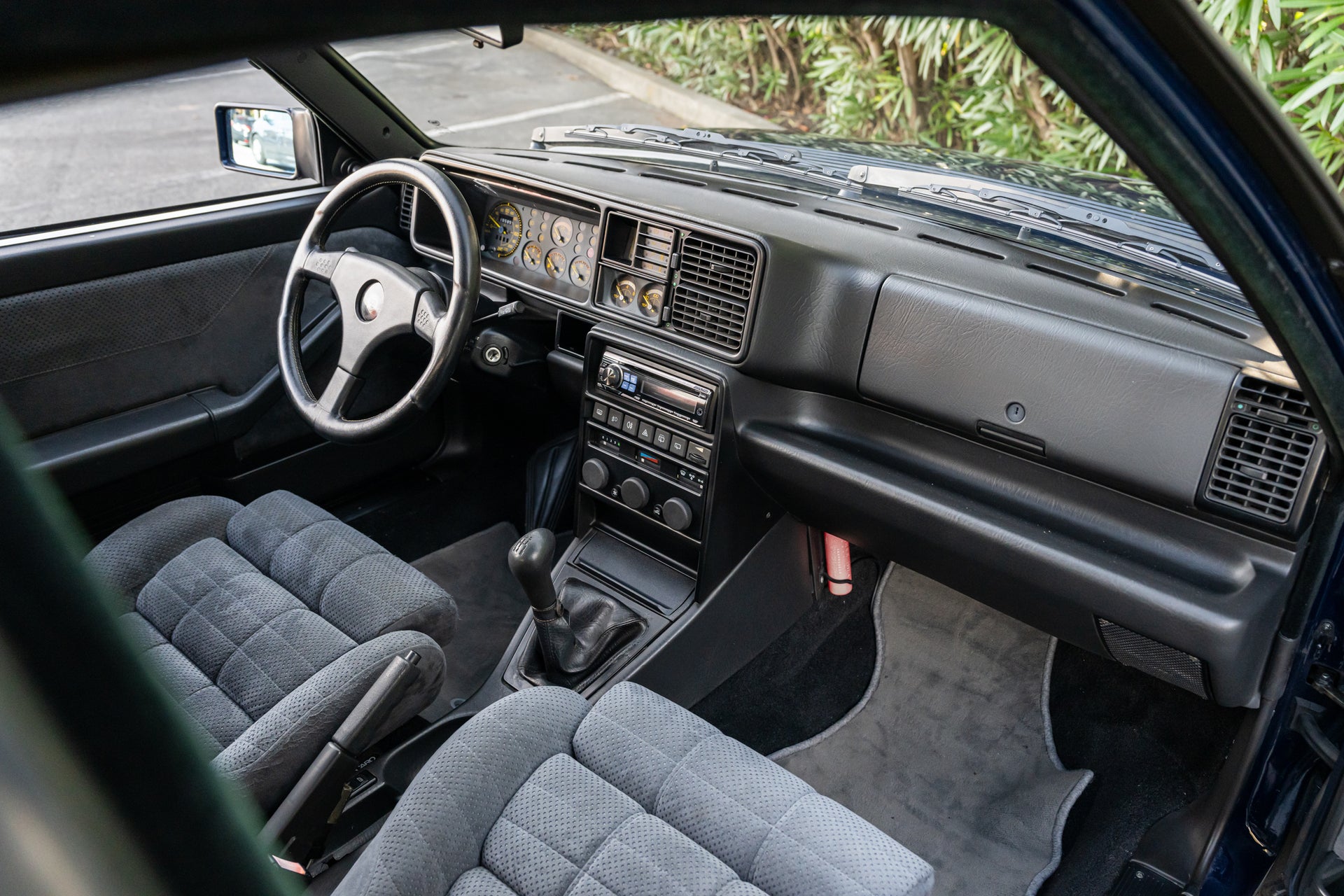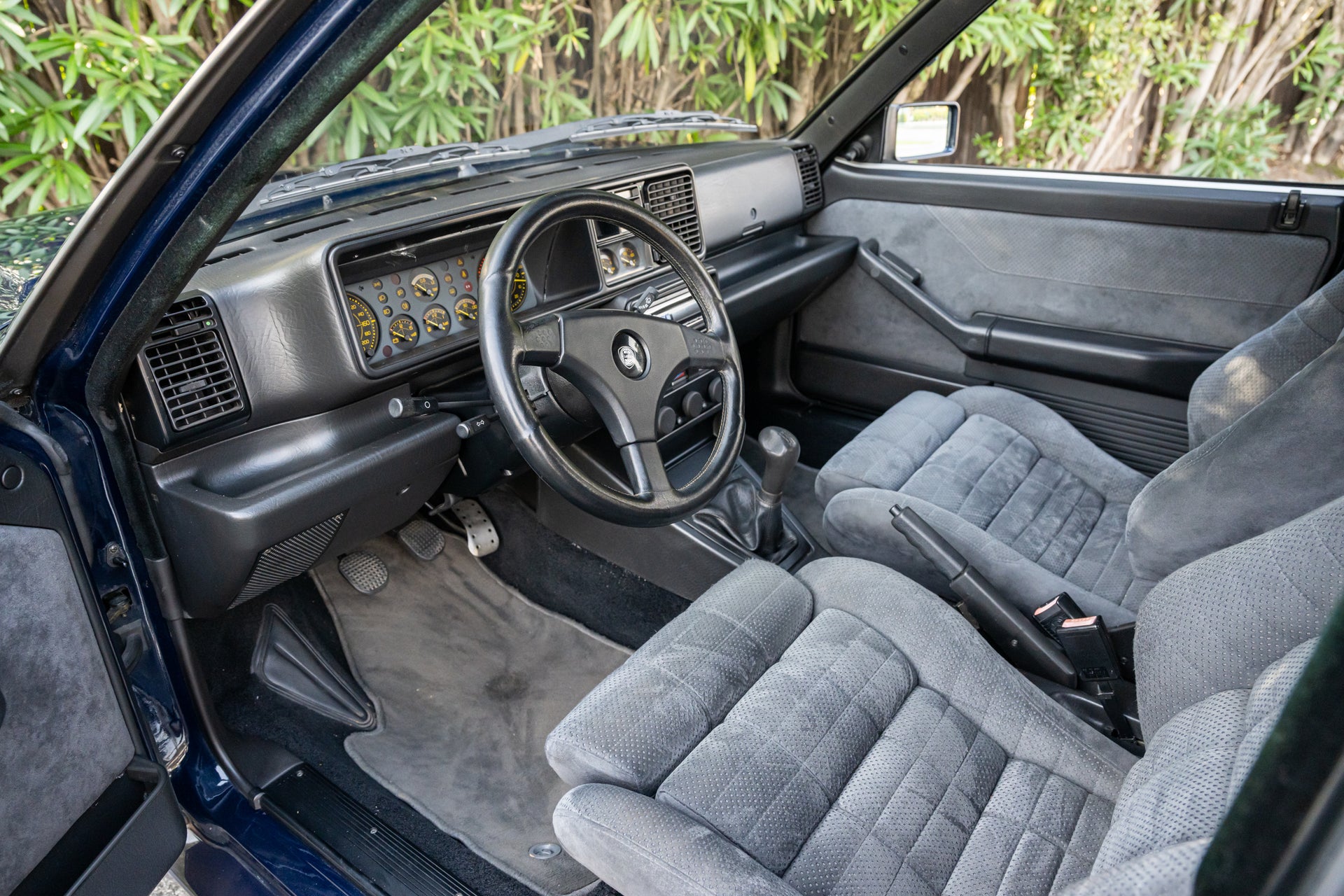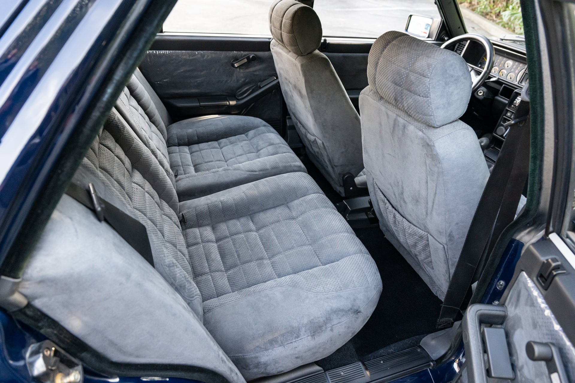 The stunning Lord Blue exterior is in very good condition. There is no current structural rust and no evidence of prior rust repairs, nor any stress cracks in the unibody or exterior panels. Paint very nice and the body is straight and sound. The interior shows little wear and features rally style seats upholstered in grey Alcantara with grey carpets, door panels and headliner.