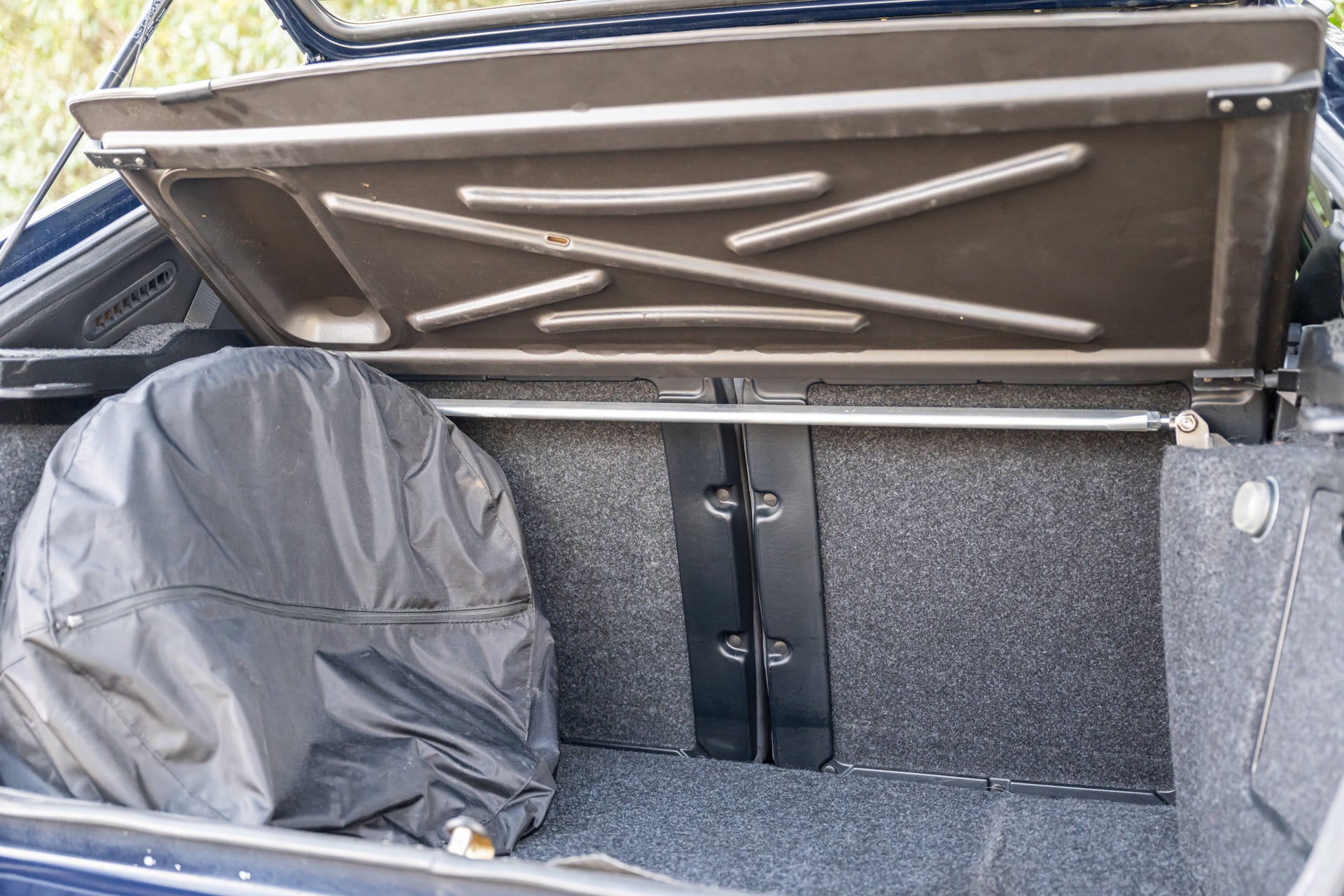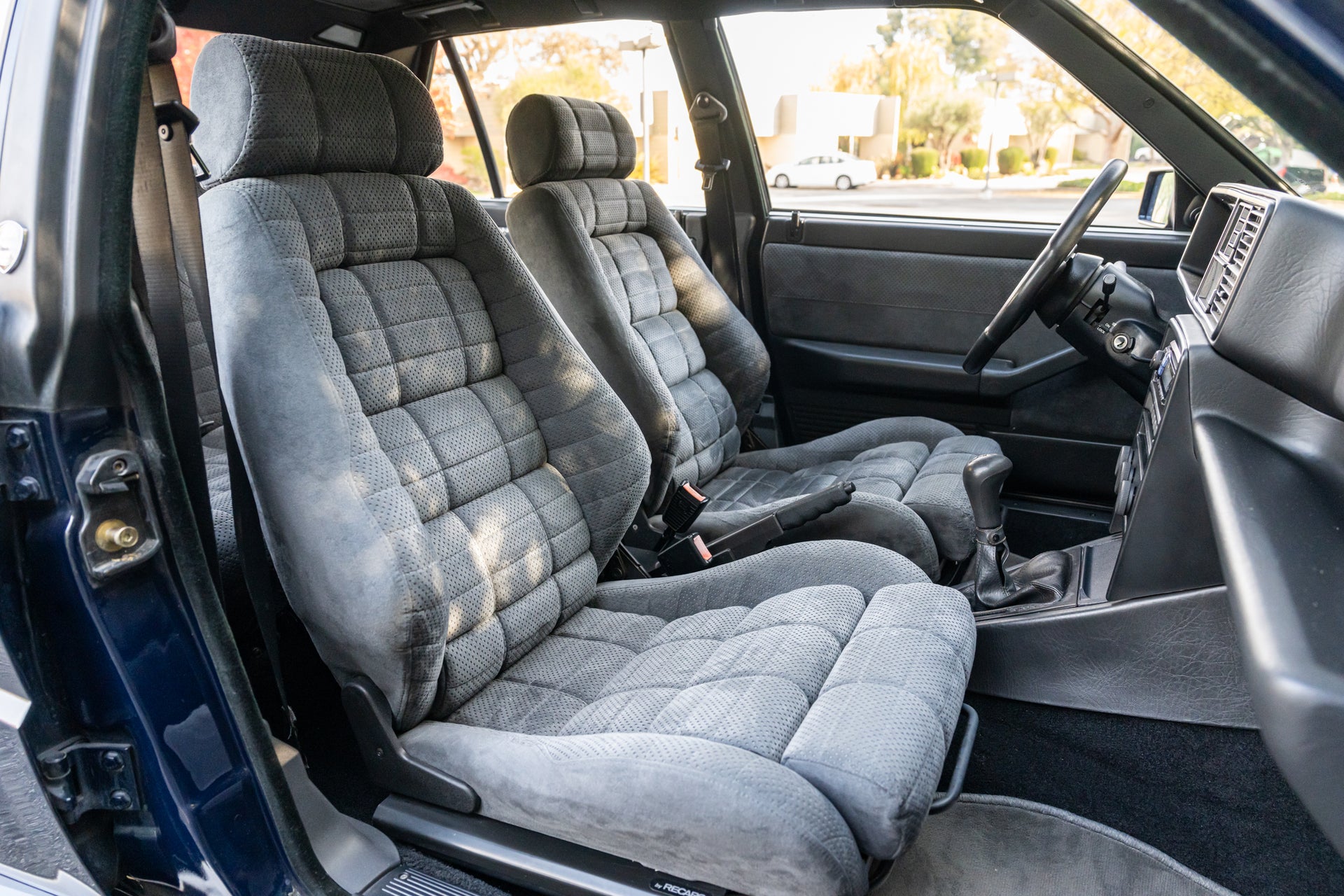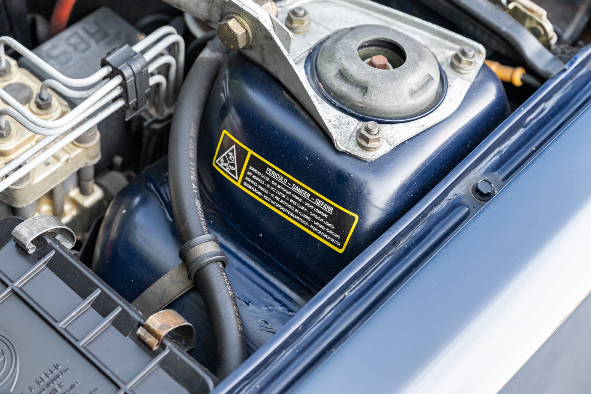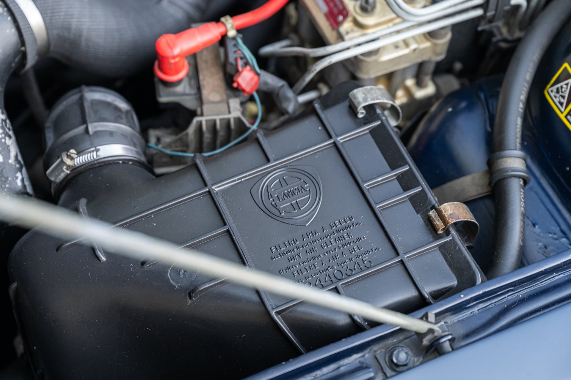The stunning Lord Blue exterior is in very good condition. There is no current structural rust and no evidence of prior rust repairs, nor any stress cracks in the unibody or exterior panels. Paint very nice and the body is straight and sound. The interior shows little wear and features rally style seats upholstered in grey Alcantara with grey carpets, door panels and headliner.