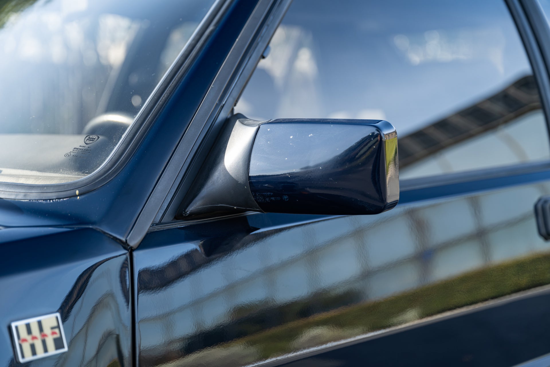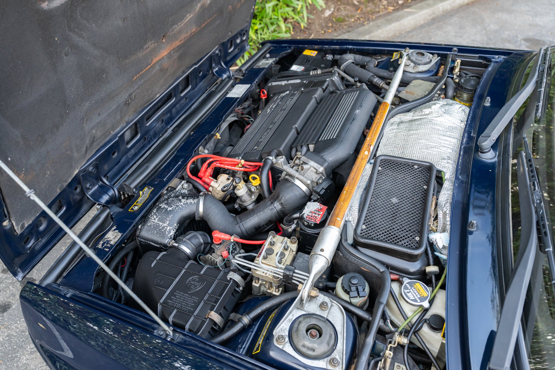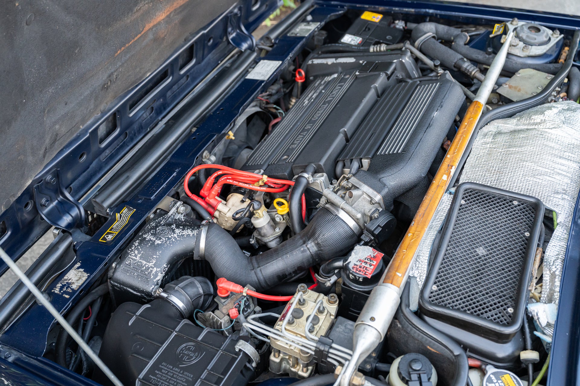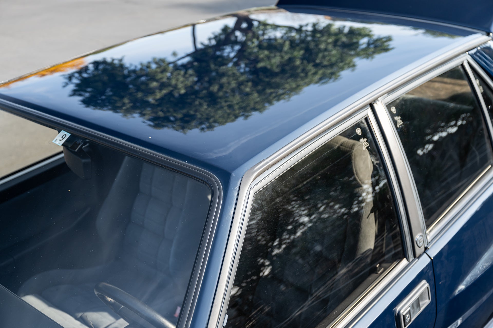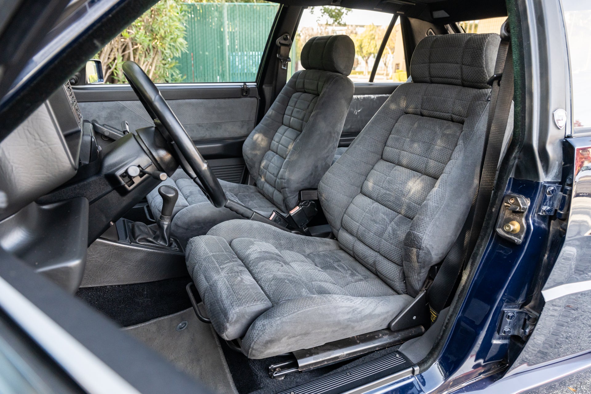 The stunning Lord Blue exterior is in very good condition. There is no current structural rust and no evidence of prior rust repairs, nor any stress cracks in the unibody or exterior panels. Paint very nice and the body is straight and sound. The interior shows little wear and features rally style seats upholstered in grey Alcantara with grey carpets, door panels and headliner.