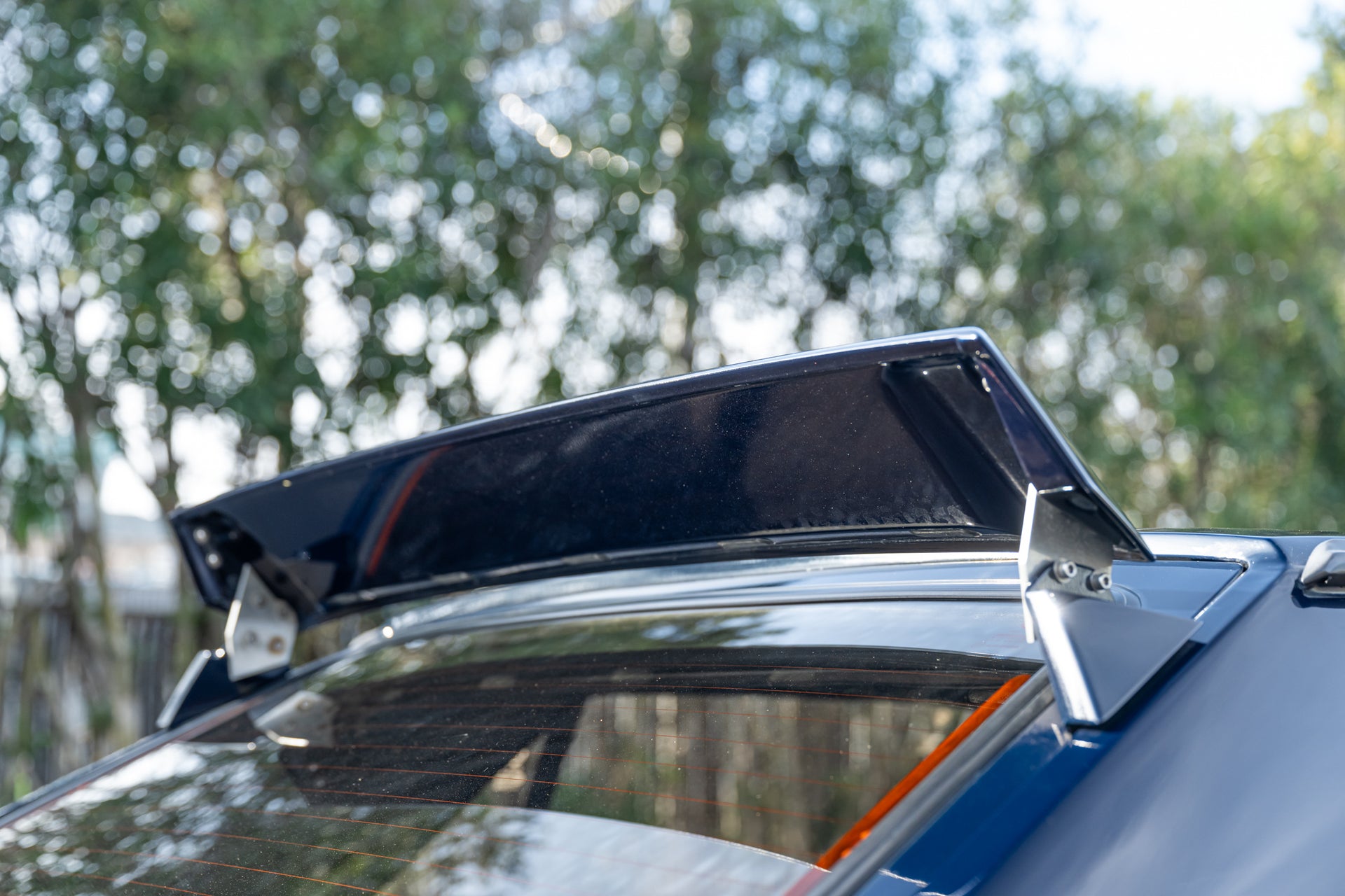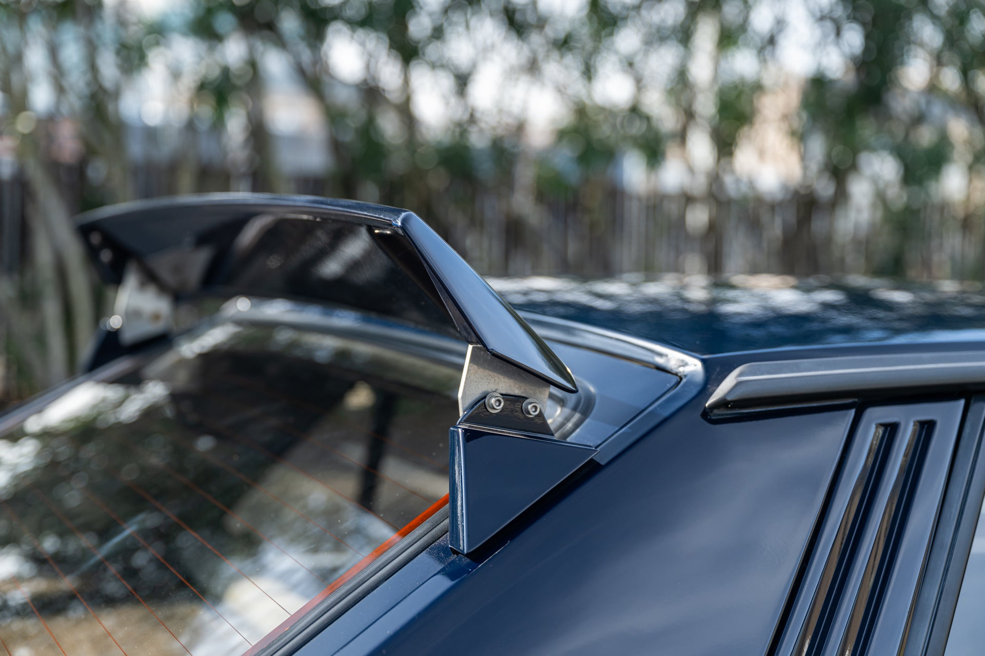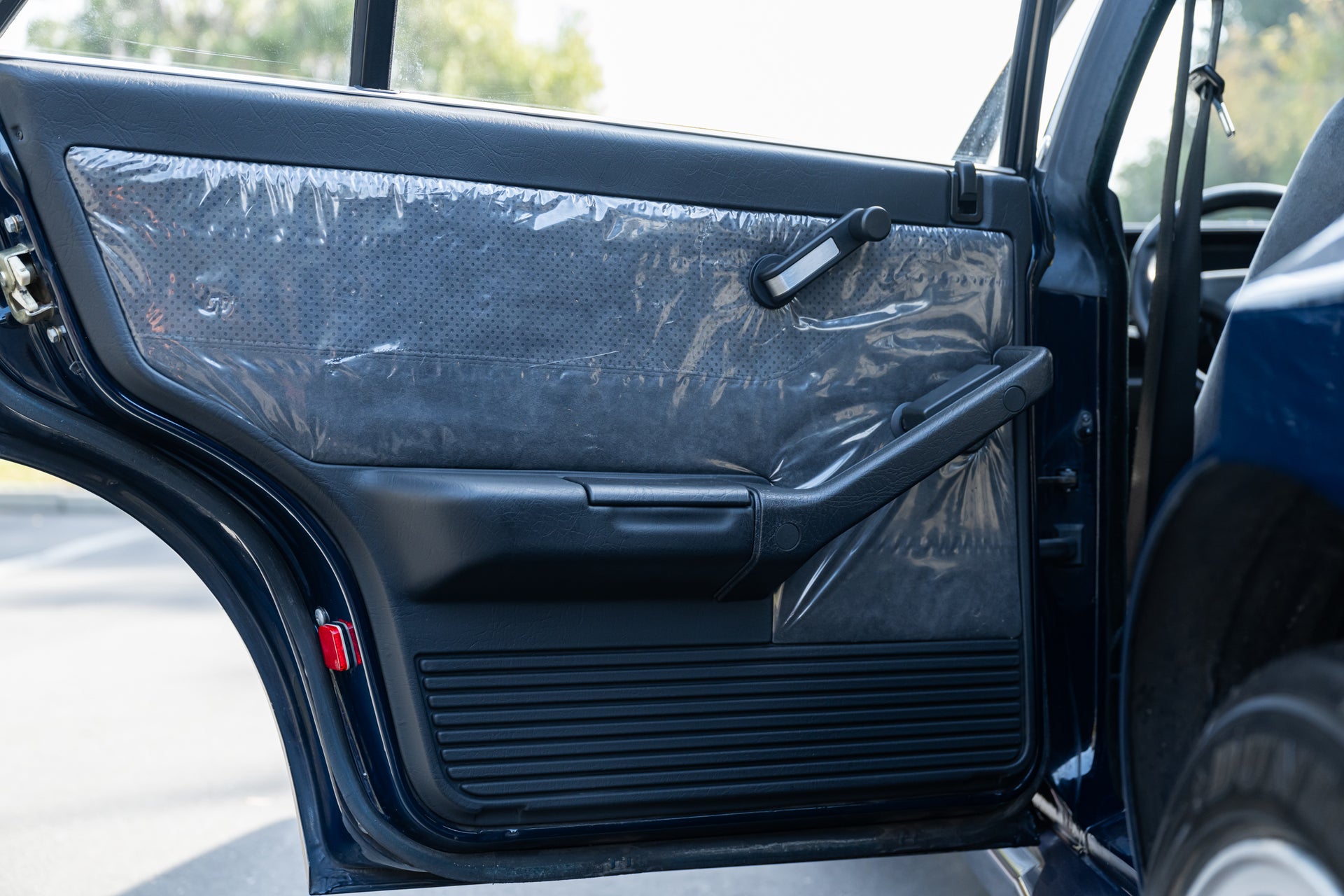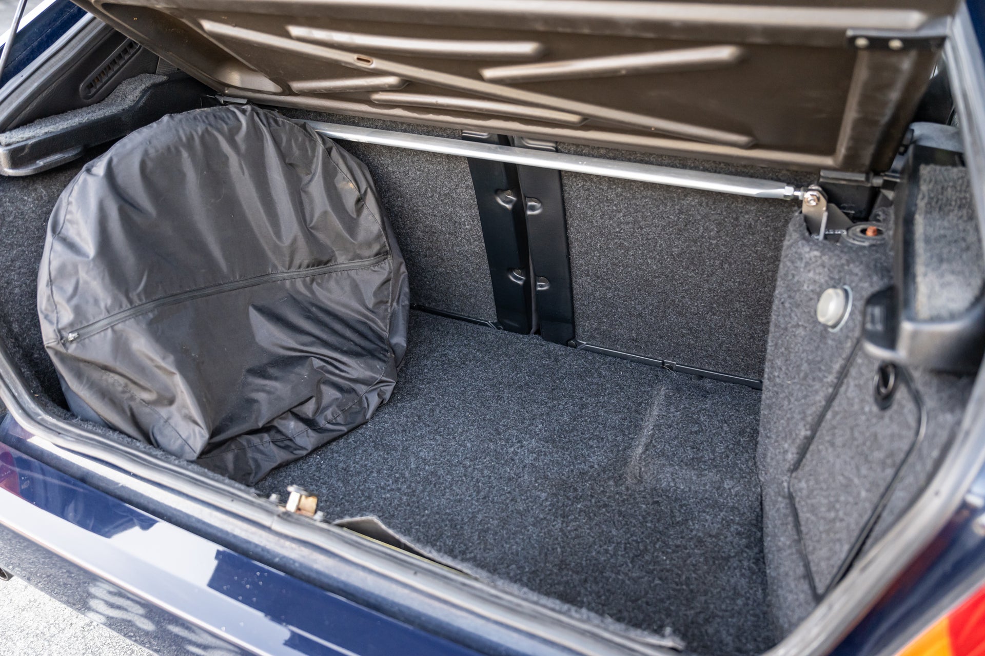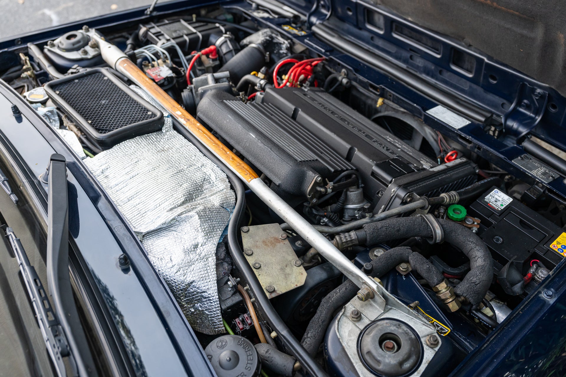 The stunning Lord Blue exterior is in very good condition. There is no current structural rust and no evidence of prior rust repairs, nor any stress cracks in the unibody or exterior panels. Paint very nice and the body is straight and sound. The interior shows little wear and features rally style seats upholstered in grey Alcantara with grey carpets, door panels and headliner.