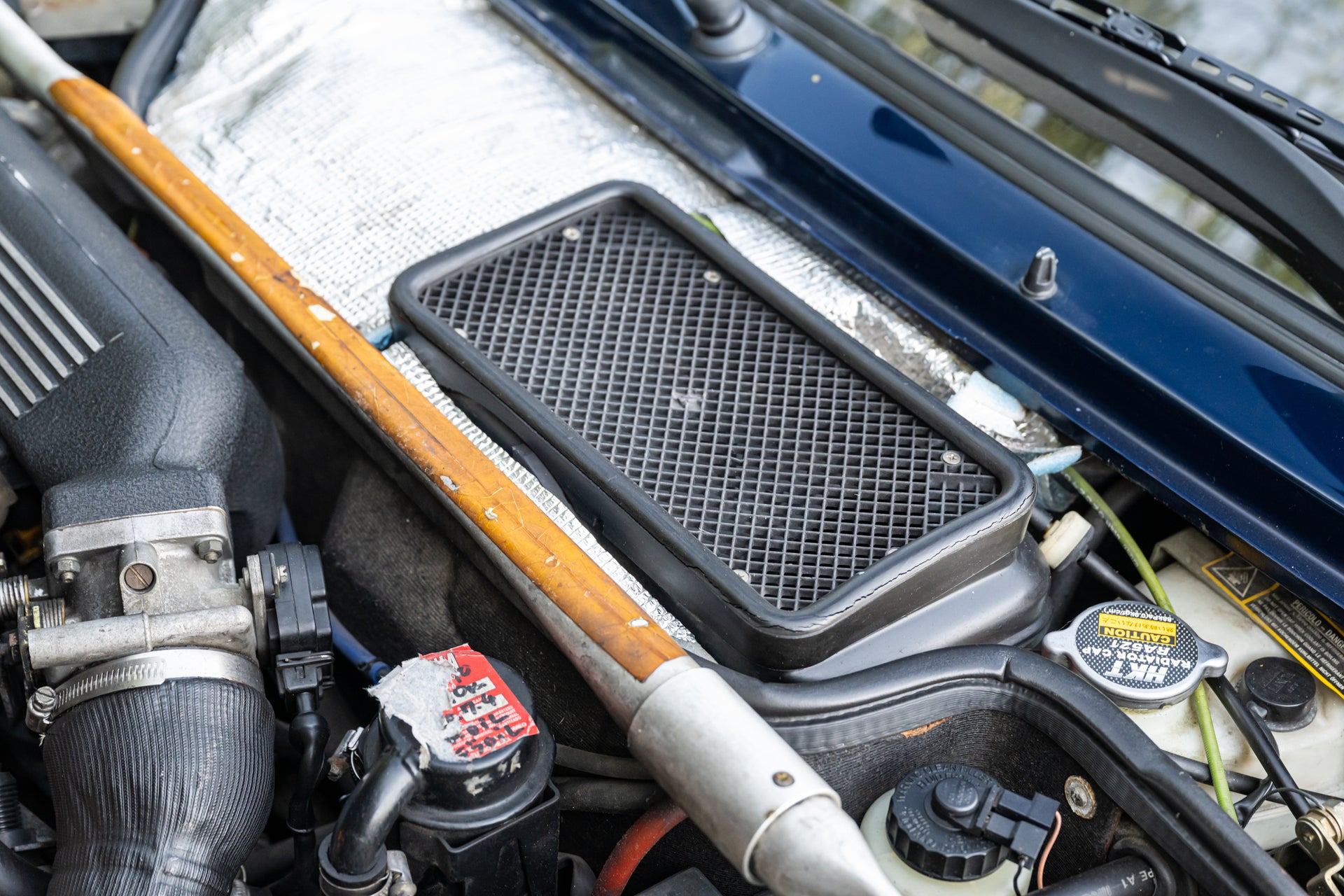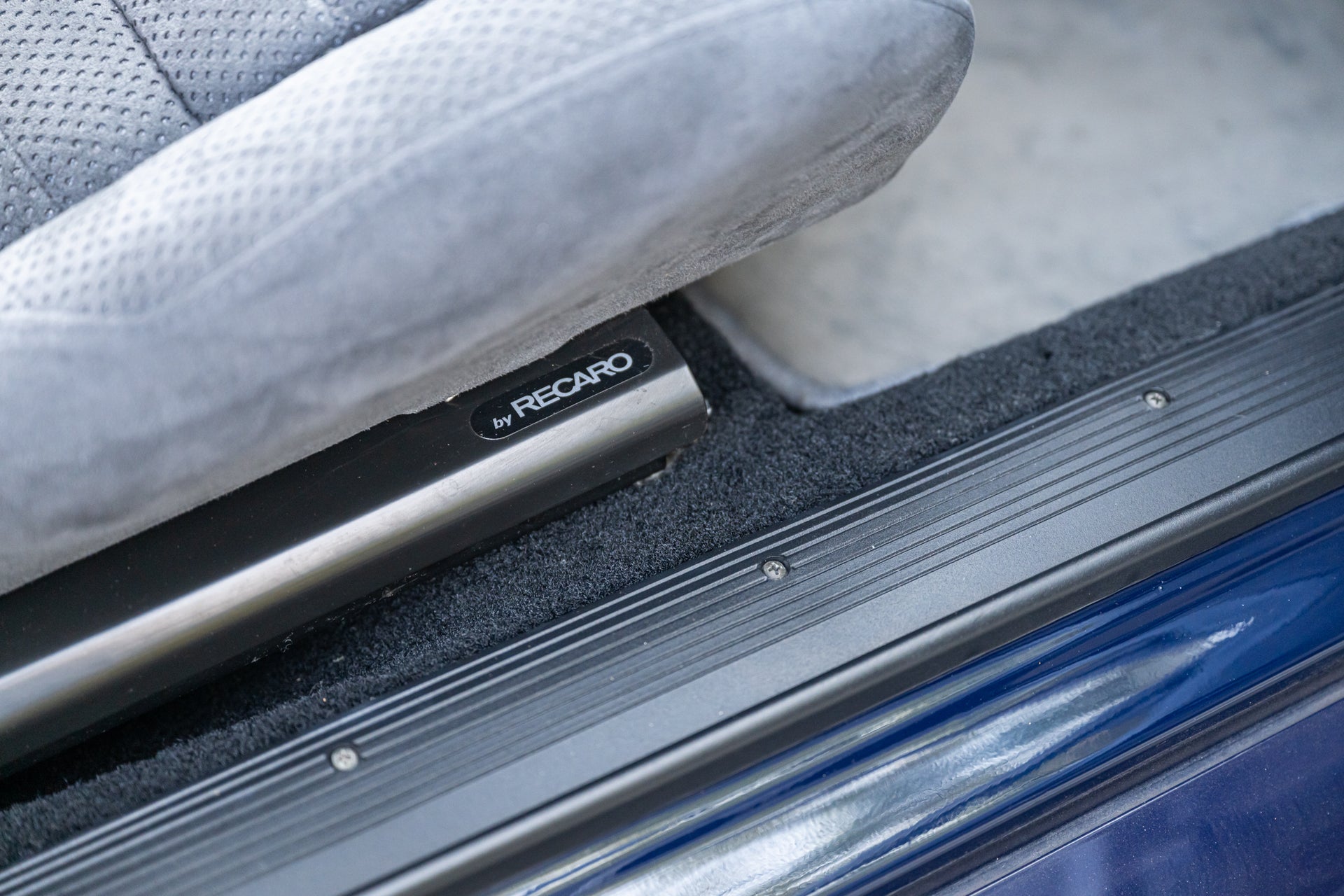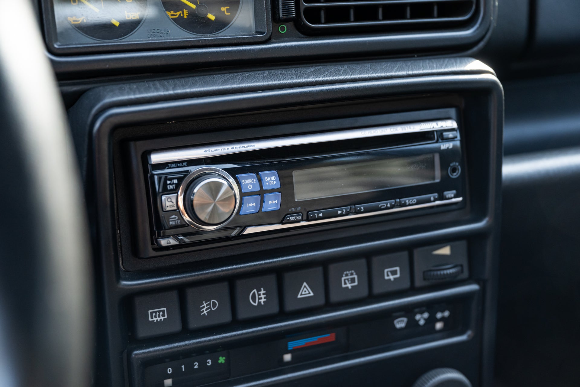 The impressive dashboard is in great shape with a full complement of instruments. There is the original Evo1 three-spoked, leather-wrapped steering wheel fitted to the steering column. A Japanese market Alpine audio head unit with CD player has been installed.