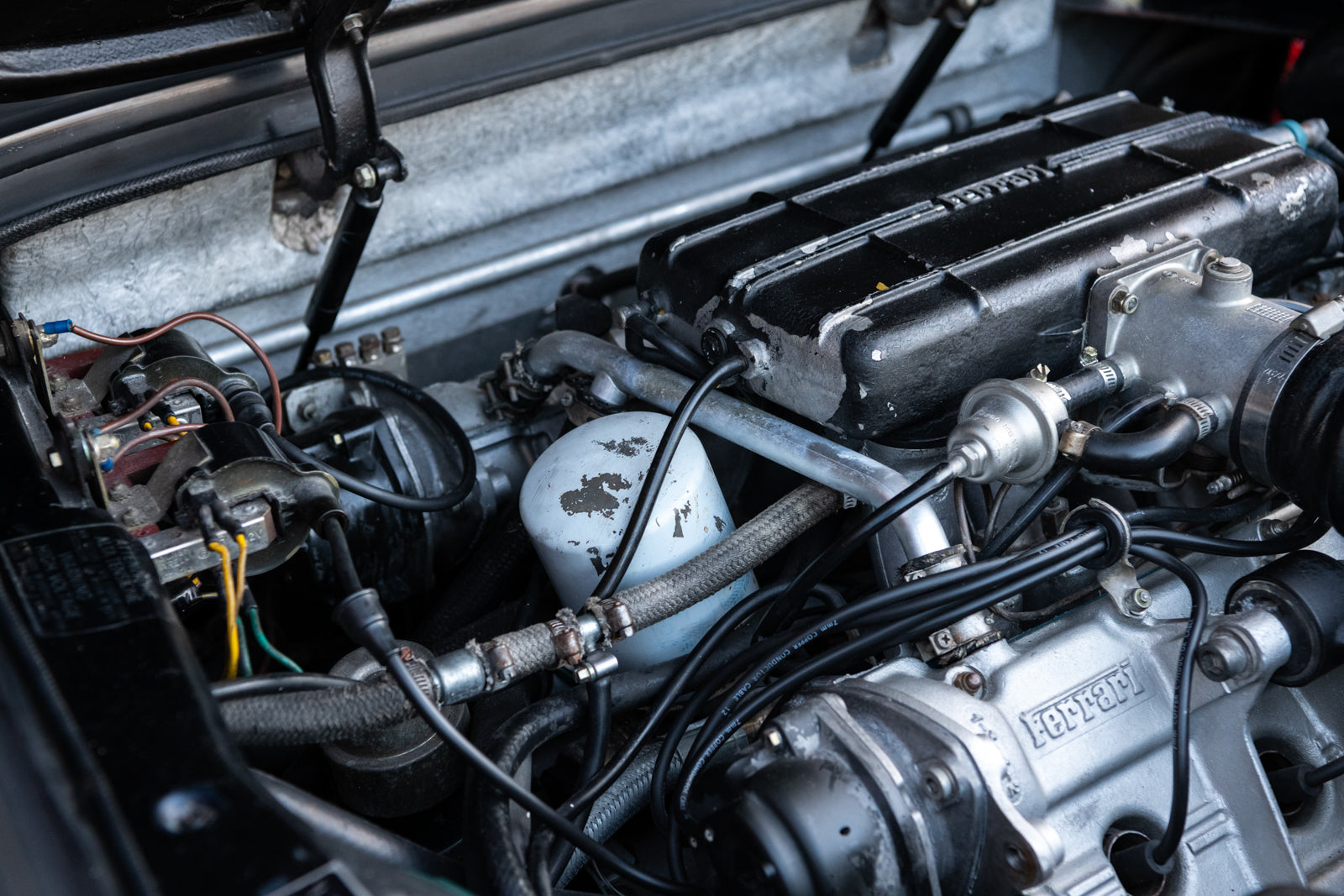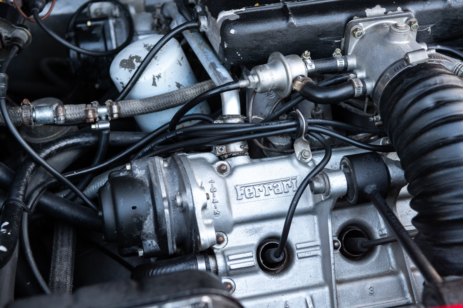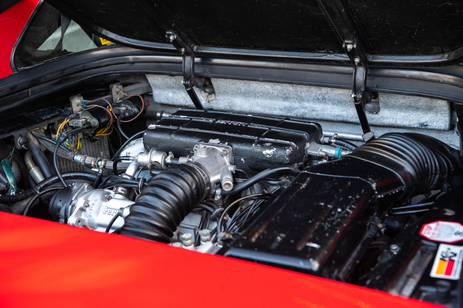 The 2.9 L DOHC V8 was a development of the unit used in the 308 series and offered Bosch K-Jetronic fuel injection delivering 214 HP and 181 lb ft of torque. Service access is very good for a mid-engined exotic and the Mondial is credited with having reasonable maintenance costs (for a Ferrari). The chassis design was also a first for Ferrari incorporating a detachable rear subframe for the engine/gearbox/rear suspension considerably simplifying engine out repairs.