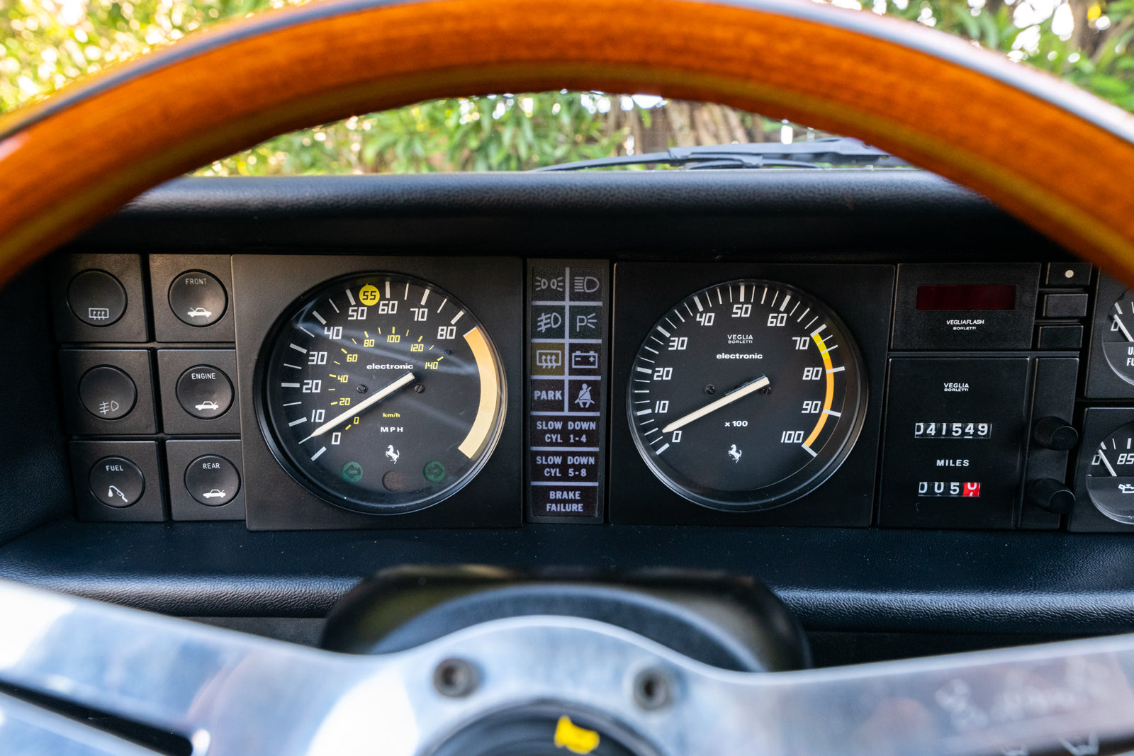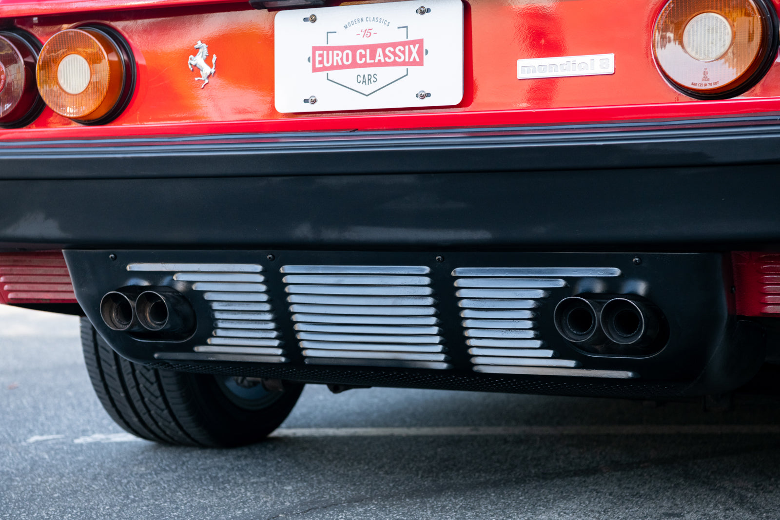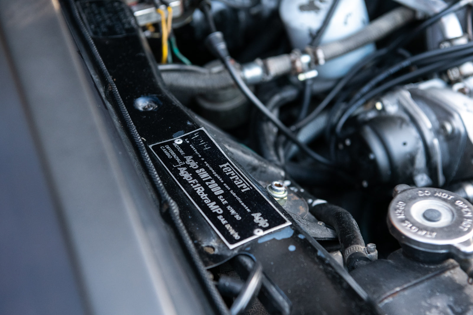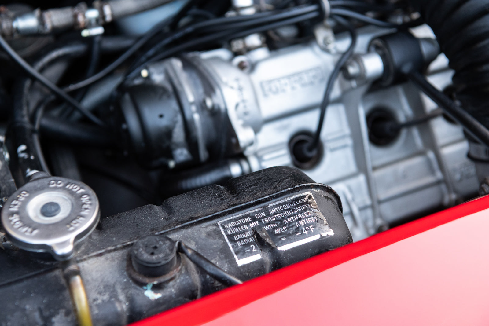 The 2.9 L DOHC V8 was a development of the unit used in the 308 series and offered Bosch K-Jetronic fuel injection delivering 214 HP and 181 lb ft of torque. Service access is very good for a mid-engined exotic and the Mondial is credited with having reasonable maintenance costs (for a Ferrari). The chassis design was also a first for Ferrari incorporating a detachable rear subframe for the engine/gearbox/rear suspension considerably simplifying engine out repairs.